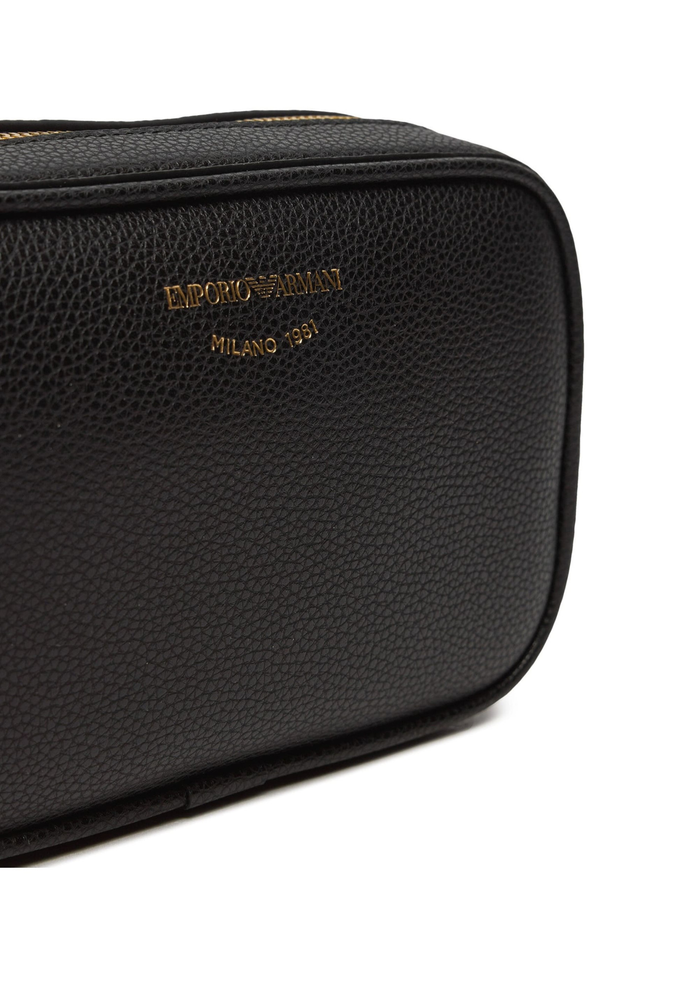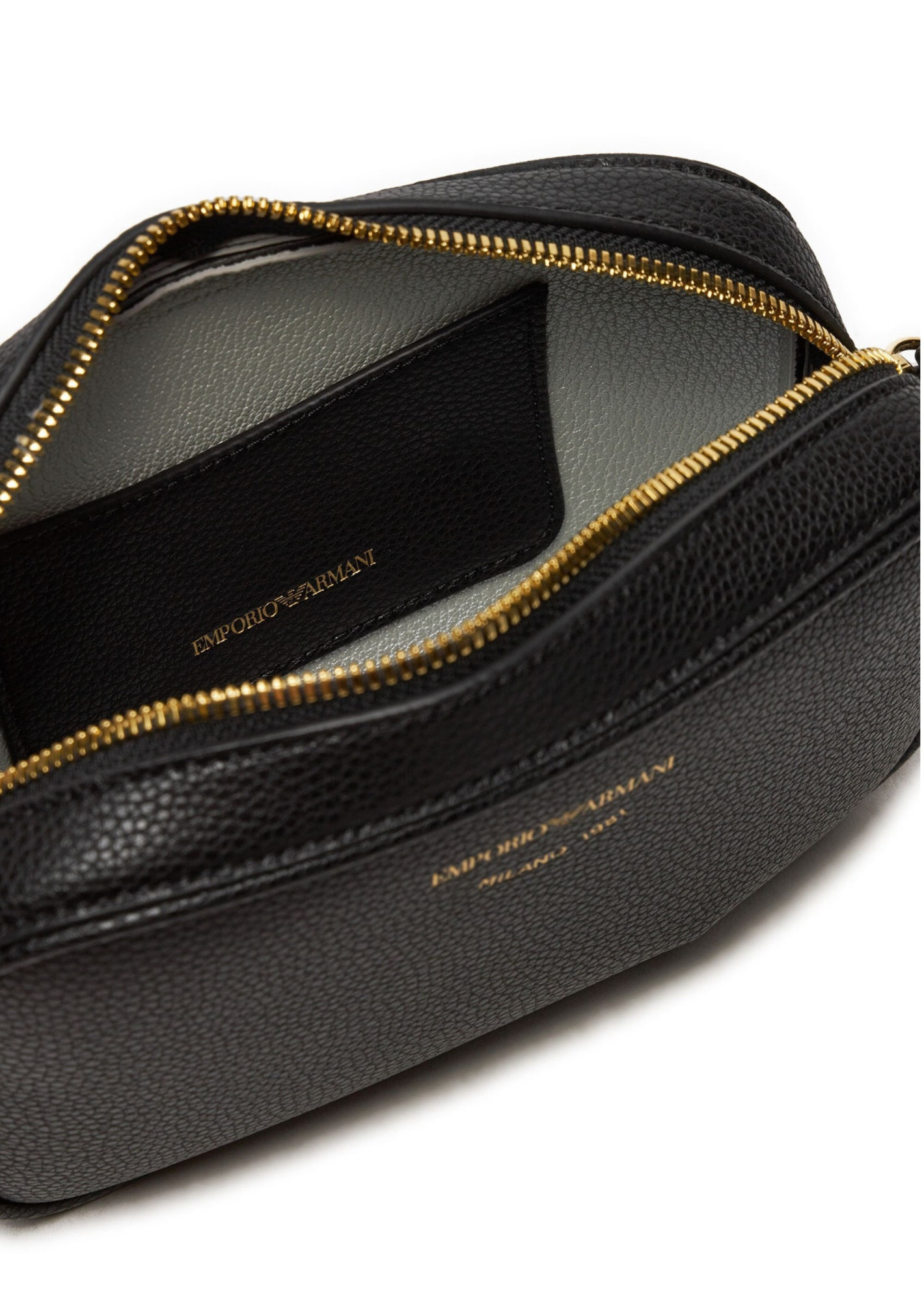 Чорна сумка Emporio Armani виготовлена із поєднання високоякісних матеріалів, що надає виробу чітких ліній та сучасного вигляду. Короткий чорний колір з сріблястими елементами фурнітури підкреслює мінімалістичну естетику бренду. Компактний формат 19×12×6 см ідеально підходить для повсякденного використання, зберігаючи при цьому функціональність. Основне відділення закривається на надійну блискавку, усередині передбачено простір для необхідних дрібниць. Регульований ремінь дозволяє носити сумку через плече або плече, забезпечуючи комфорт протягом дня. Відмінно поєднується із повсякденними образами, строгими жакетами та елегантними сукнями, доповнюючи як денний, так і вечірній стиль. Ця сумка стане чудовим доповненням до гардеробу, пропонуючи поєднання комфорту та фірмового стилю Emporio Armani.
