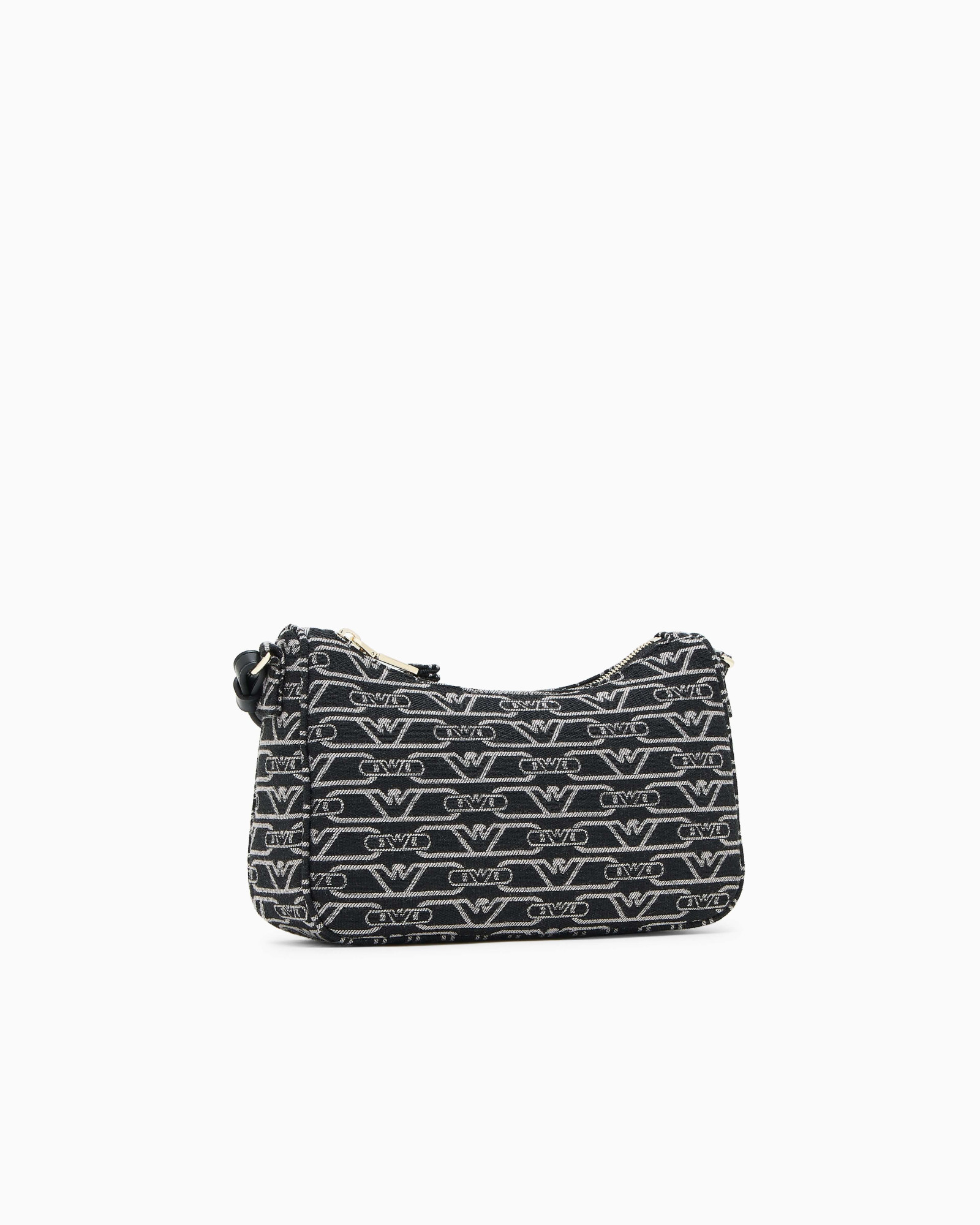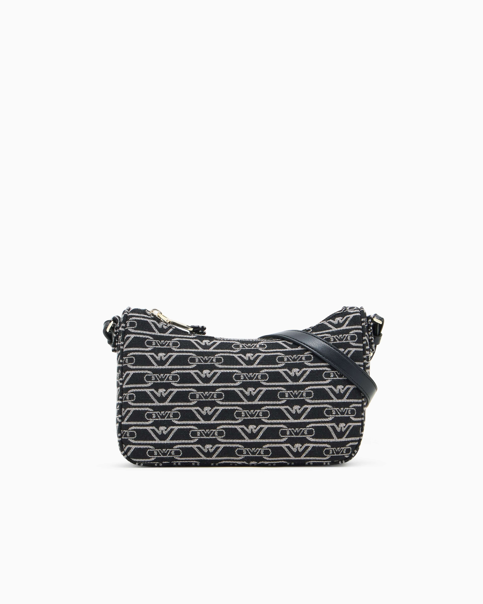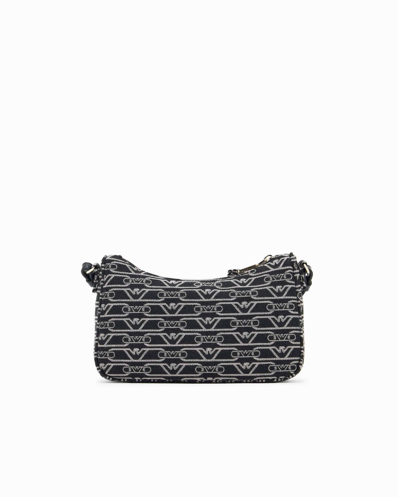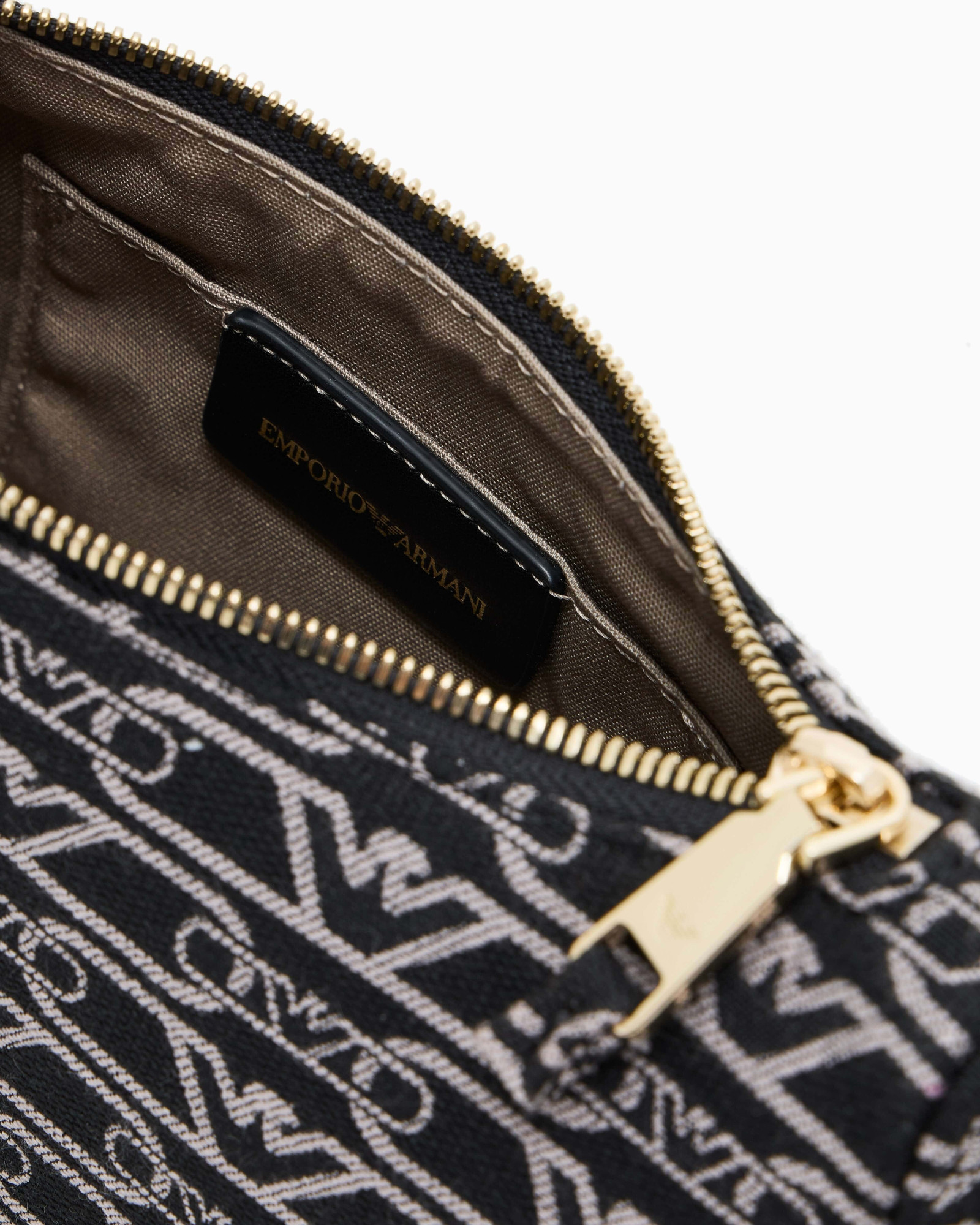 Чорна сумка Armani виготовлена з міцного матеріалу з бавовни та поліестеру з поліуретановим покриттям, що забезпечує захист та довговічність. Виріб прикрашено впізнаваним паттерном, який підкреслює фірмовий стиль. Внутрішня підкладка з суміші поліестеру та бавовни додає комфорту та міцності. Компактний дизайн та функціональні деталі роблять сумку зручним аксесуаром для повсякденного використання. Універсальне рішення Emporio Armani для сучасних образів, де стиль поєднується з практичністю.