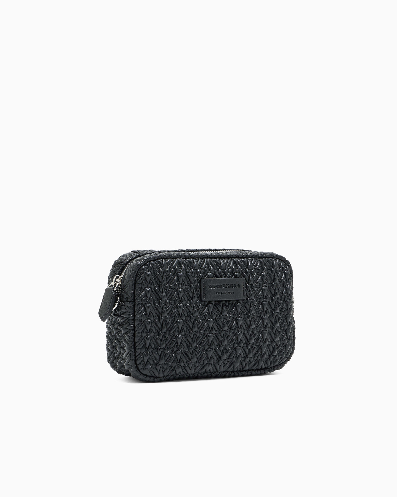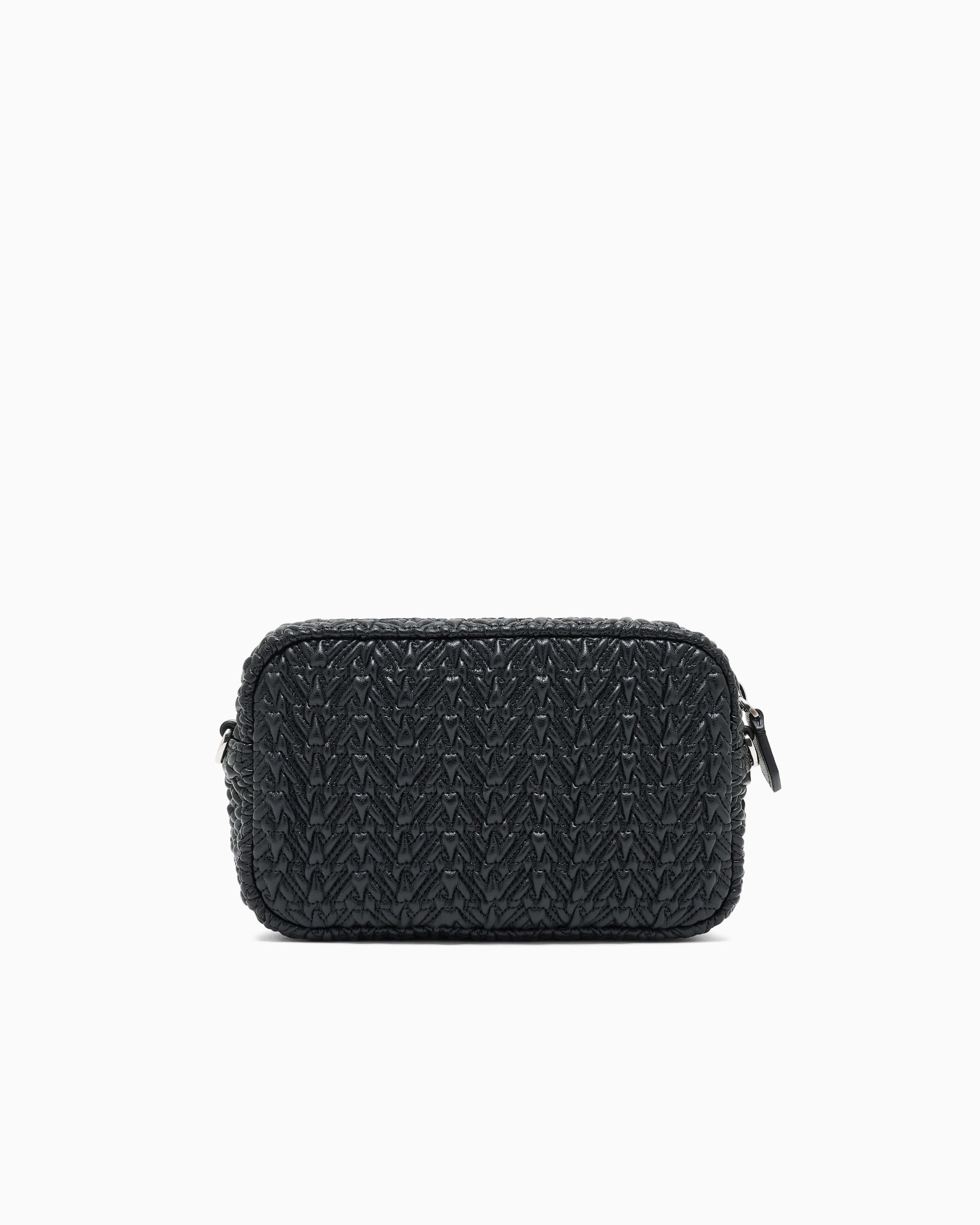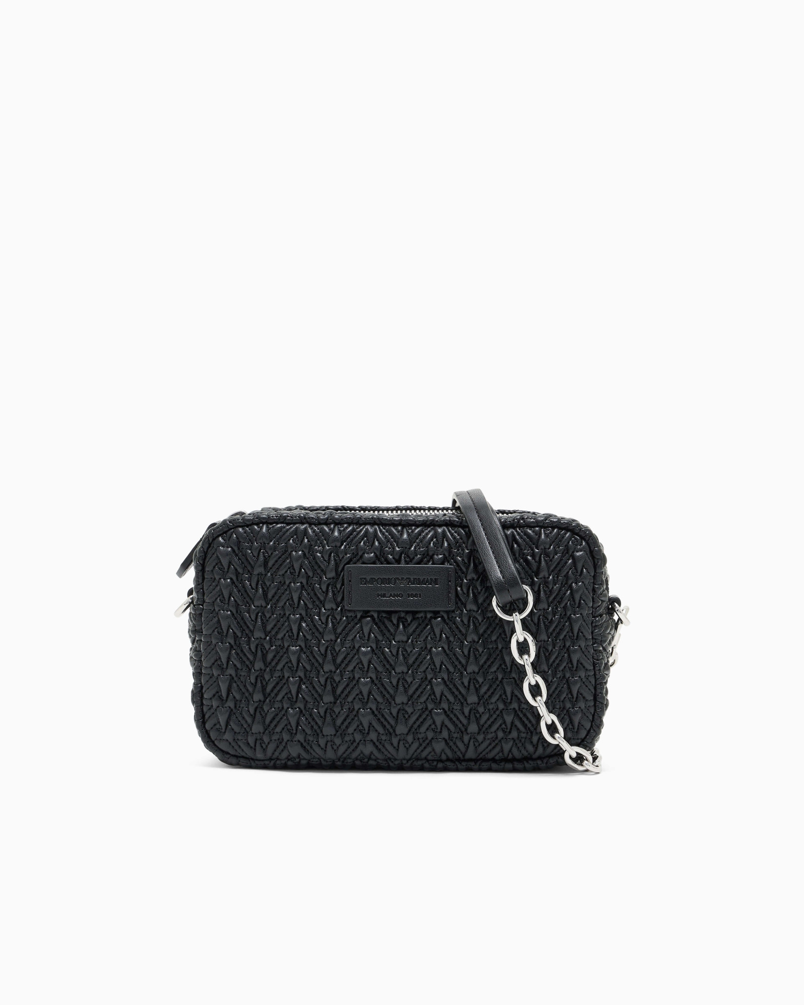 Сумка через плече Emporio Armani виготовлена з тисненої тканини з поліуретановим покриттям, що надає виробу структуру та зносостійкість. Чорний відтінок і тривимірний дизайн підкреслюють сучасний стиль аксесуара. Знімний ремінець-ланцюжок і тональна нашивка з логотипом додають елегантності та фірмового акценту. Компактні розміри та внутрішня кишеня забезпечують зручність зберігання необхідних речей. Універсальне рішення для повсякденного образу, де лаконічність поєднується з виразним фірмовим акцентом Emporio Armani.