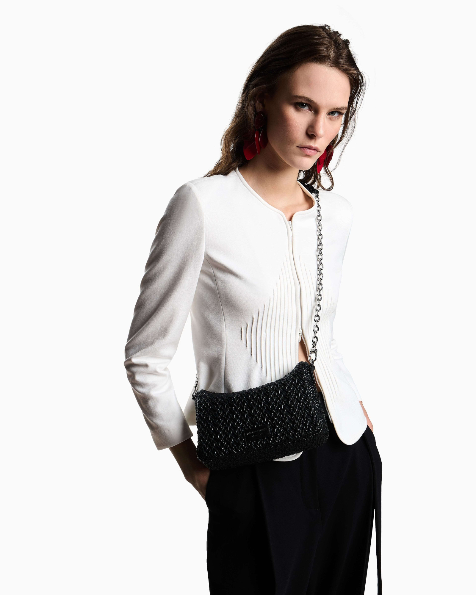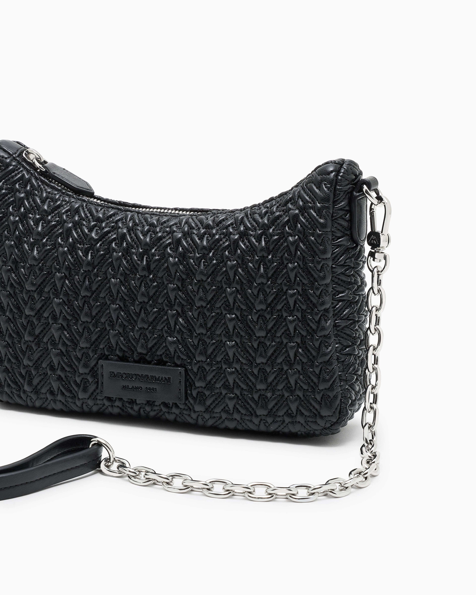 Сумка Emporio Armani виготовлена з ембосованого матеріалу з гладким покриттям та доповнена знімним металевим ремінцем-ланцюжком. Лаконічний силует прикрашений тисненим логотипом у тон, що створює елегантний об’ємний акцент. Компактна форма продумана до дрібниць. Модель ідеально доповнює як вечірні, так і повсякденні образи, надаючи їм сучасного звучання.