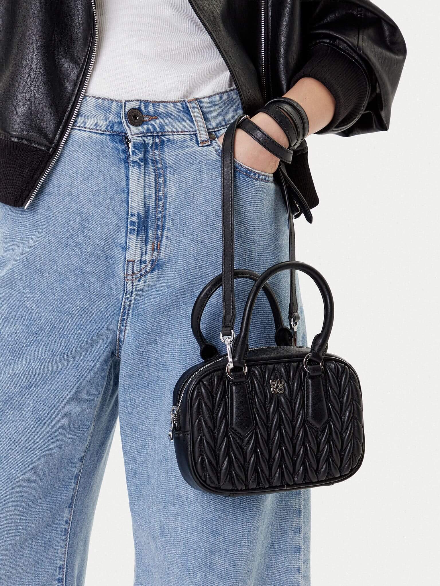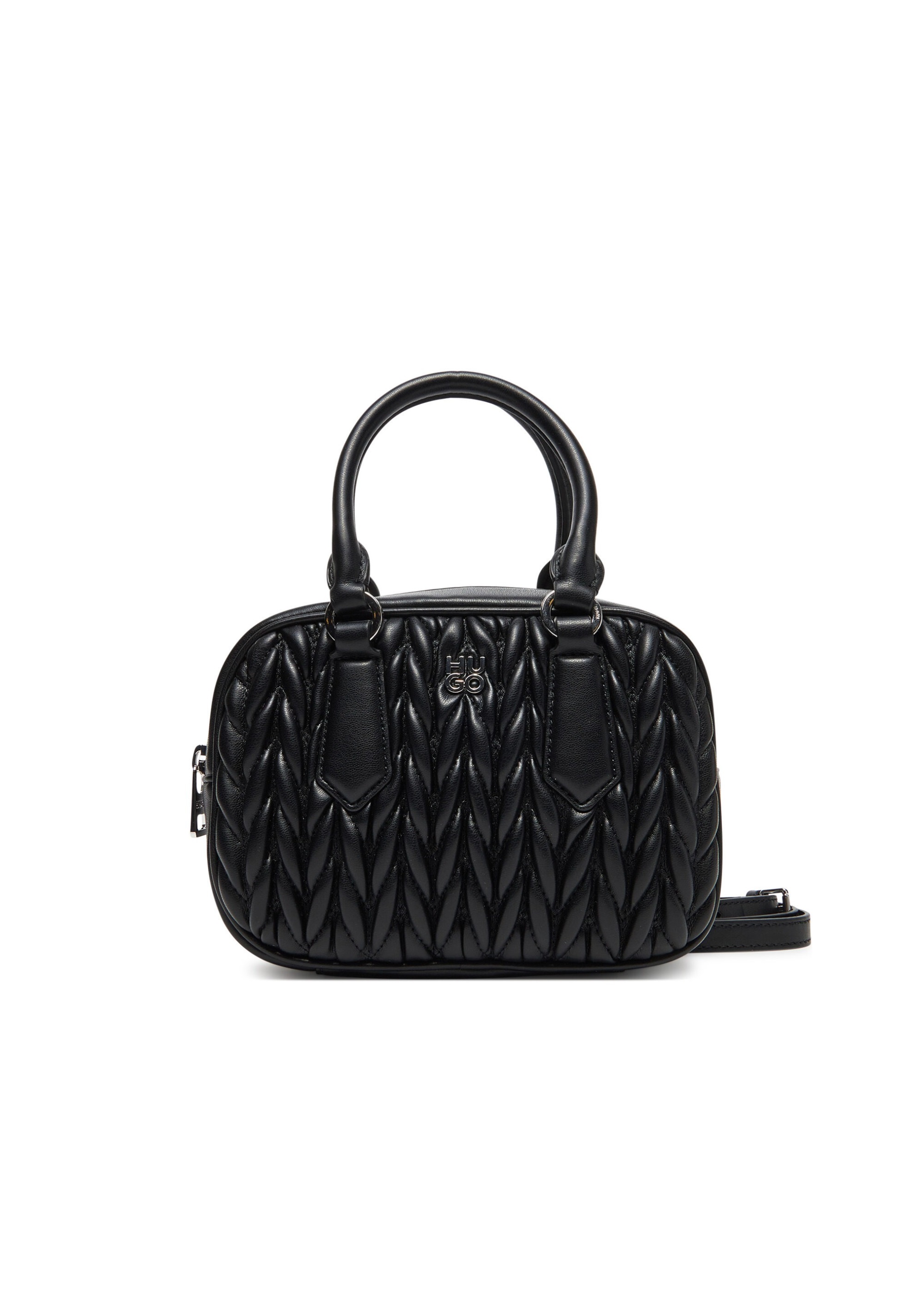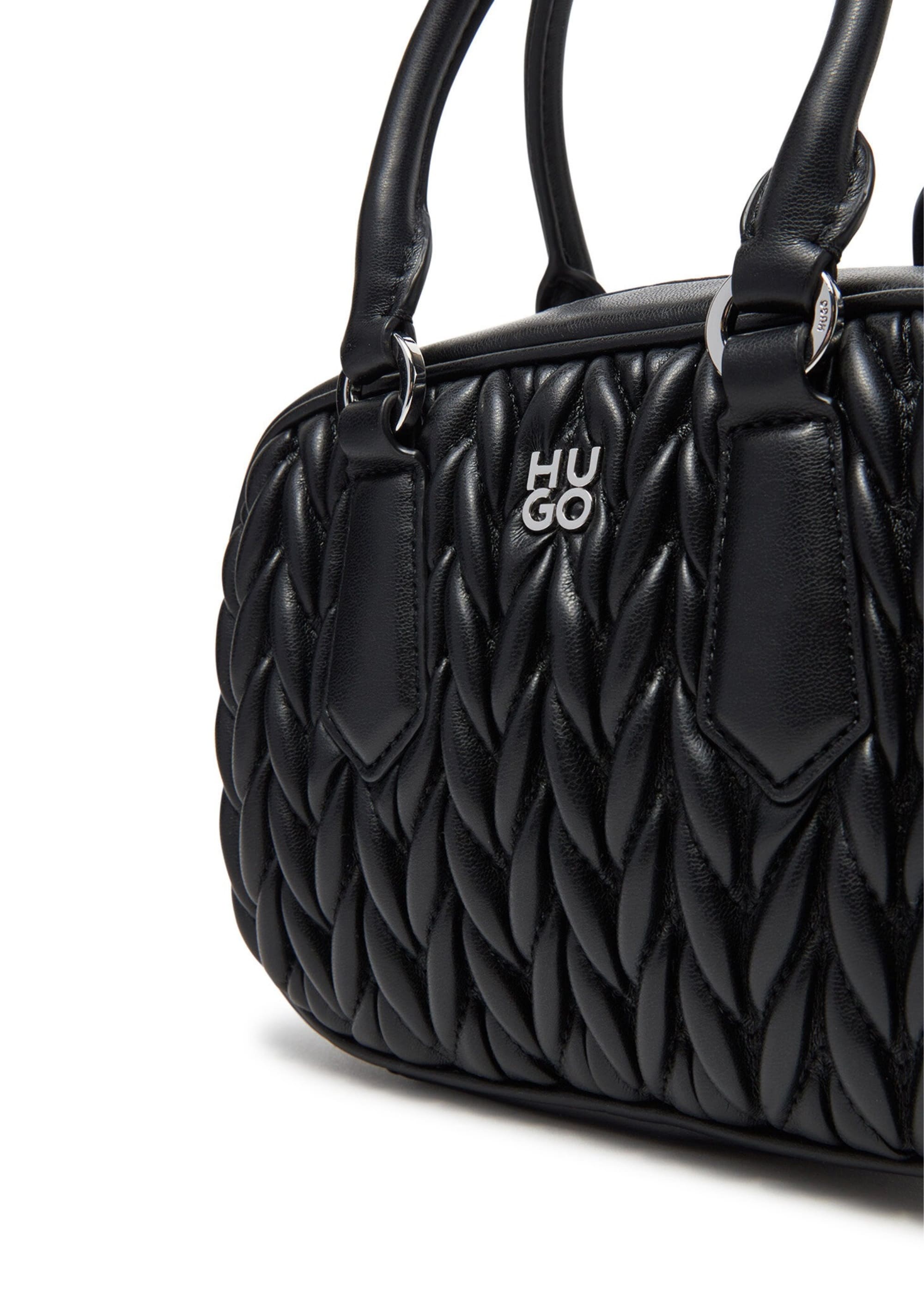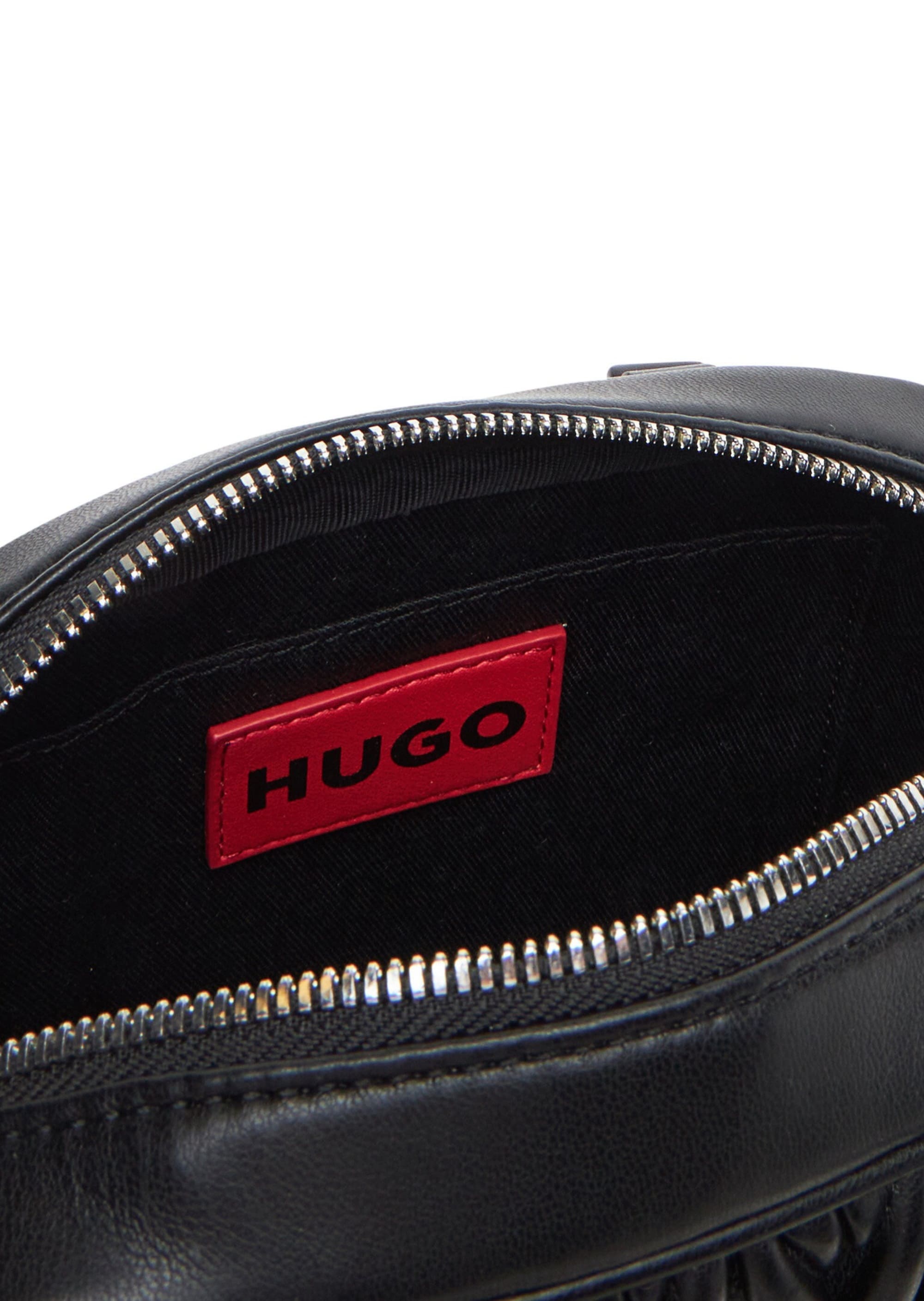 Сумка HUGO чорного кольору виконана з благородного штучного матеріалу з матовою фактурою, створюючи вишукано лаконічну основу. Мінімалістична застібка‑блискавка та логотип, інтегрований у фурнітуру, підкреслюють фірмову стилістику без надмірного декору. Коротка ручка та регульований знімний ремінь забезпечують легку й гнучку посадку на плечі або через плече. Компактні габарити та внутрішня кишеня роблять сумку практичною, дозволяючи акуратно розмістити необхідні дрібниці. Сумка HUGO стає естетичною та функціональною деталлю urban‑образу, поєднуючи мінімалізм і продуманий стиль.