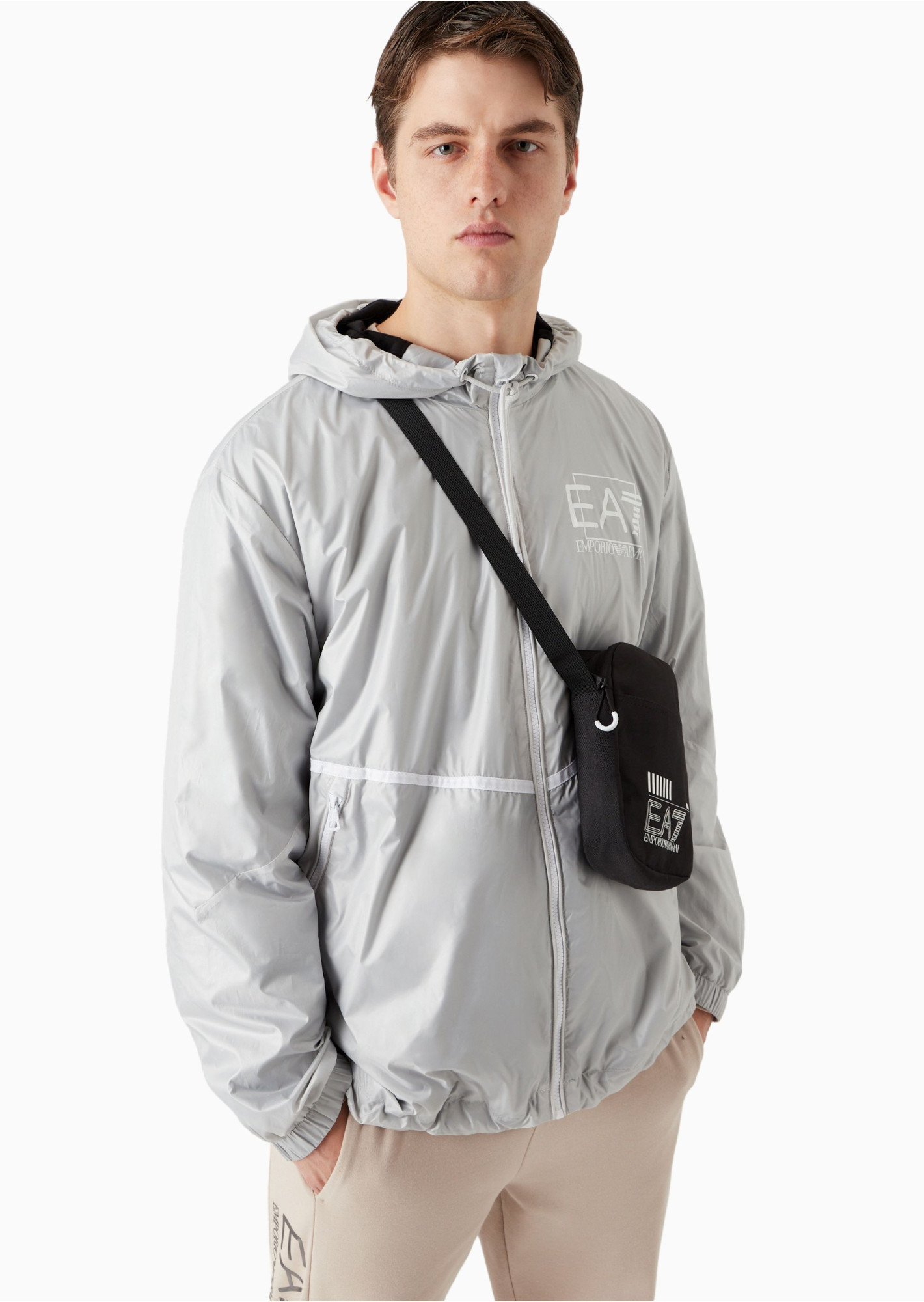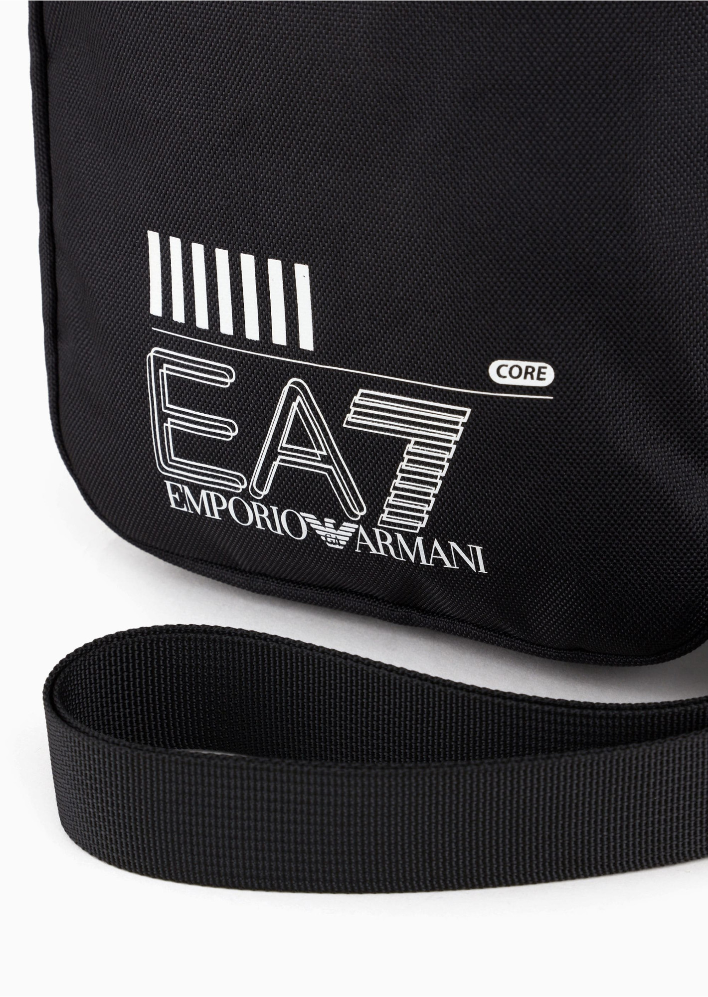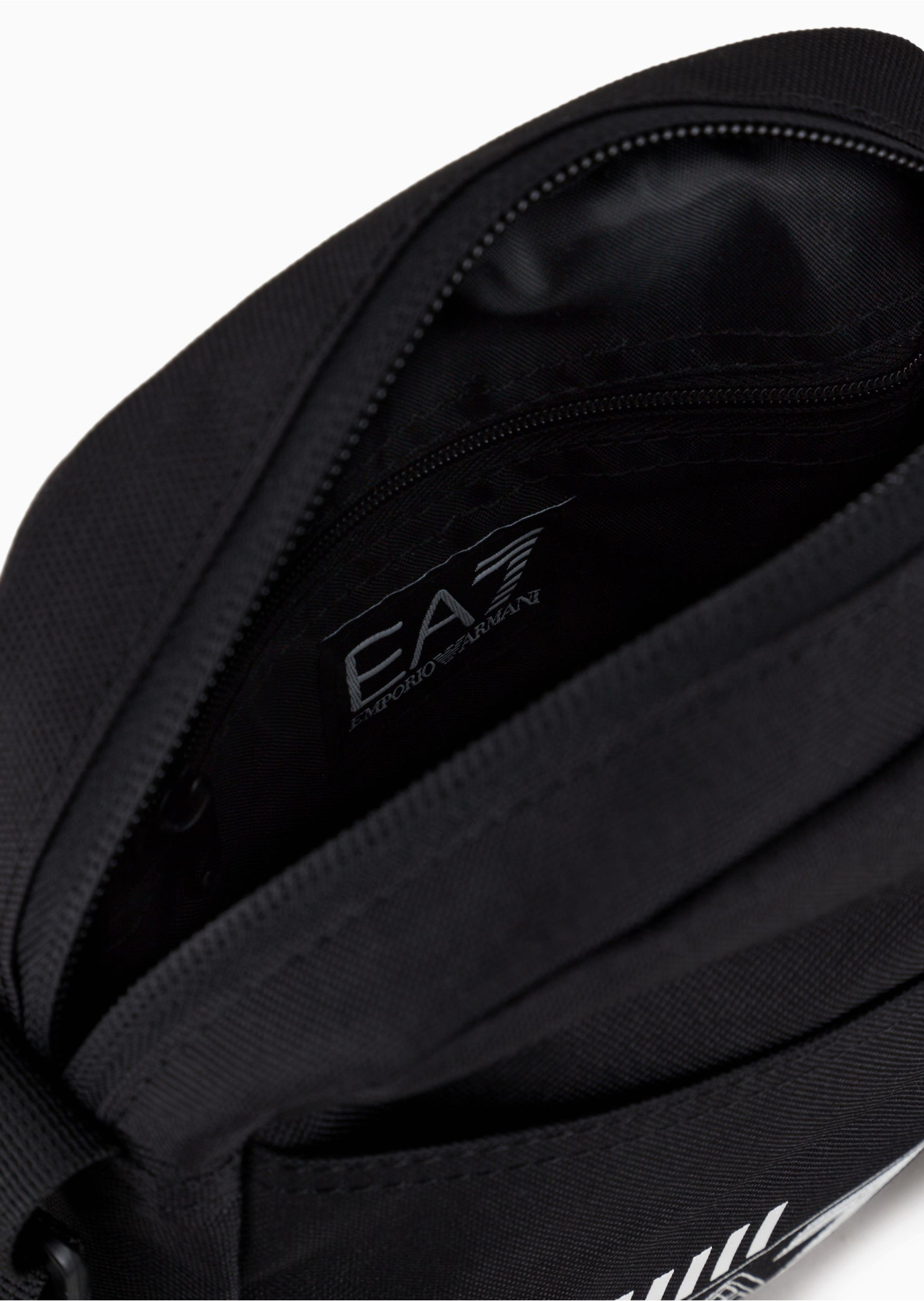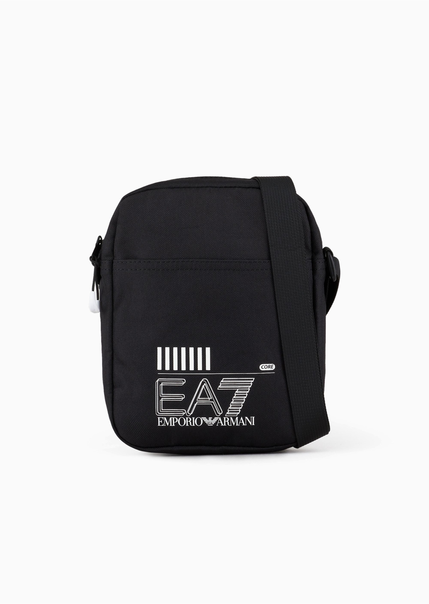Маленька сумка через плече. Оснащена регульованим плечовим ременем, прикрашена контрастним великим логотипом EA7 і просторою передньою кишенею на блискавці.