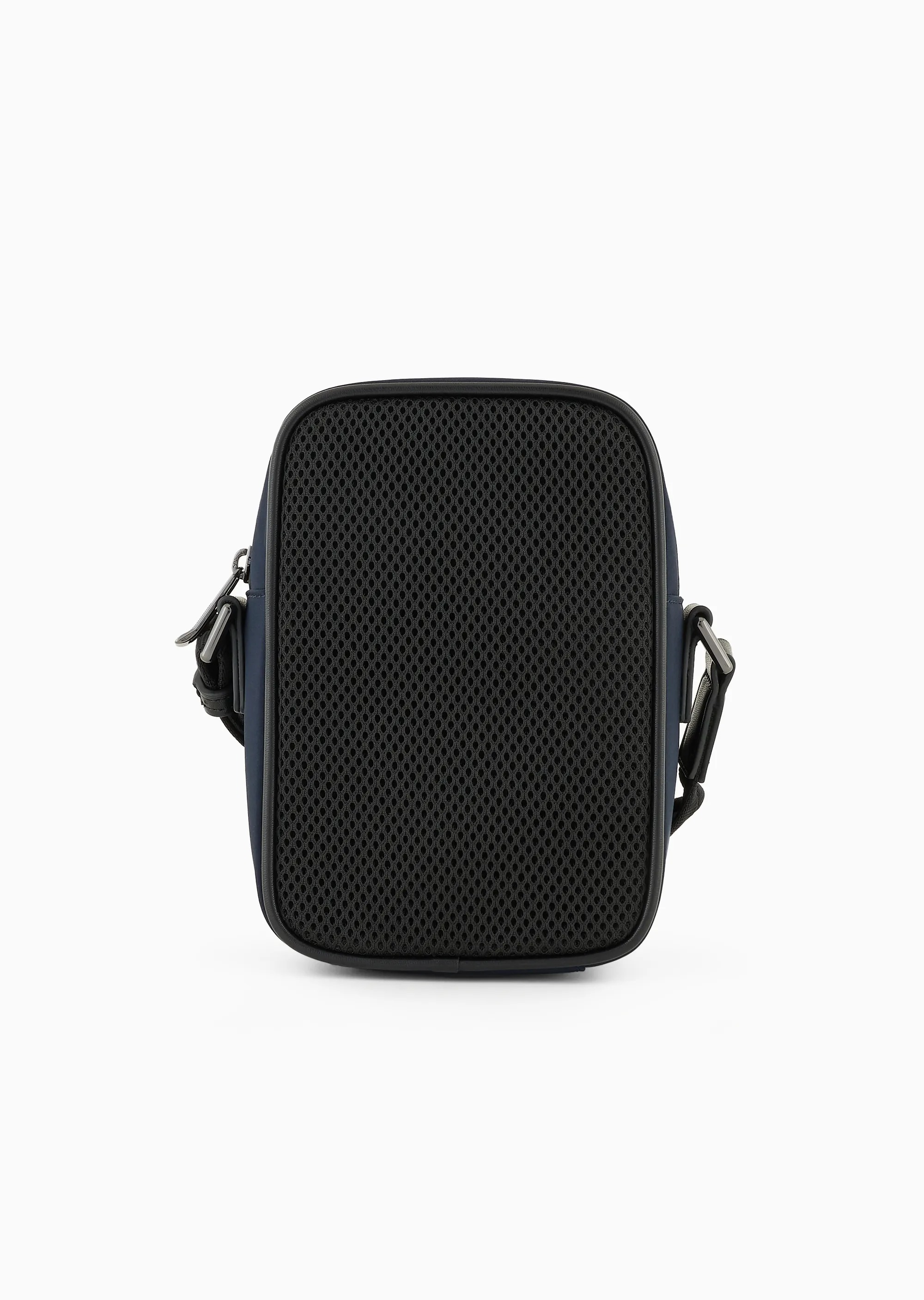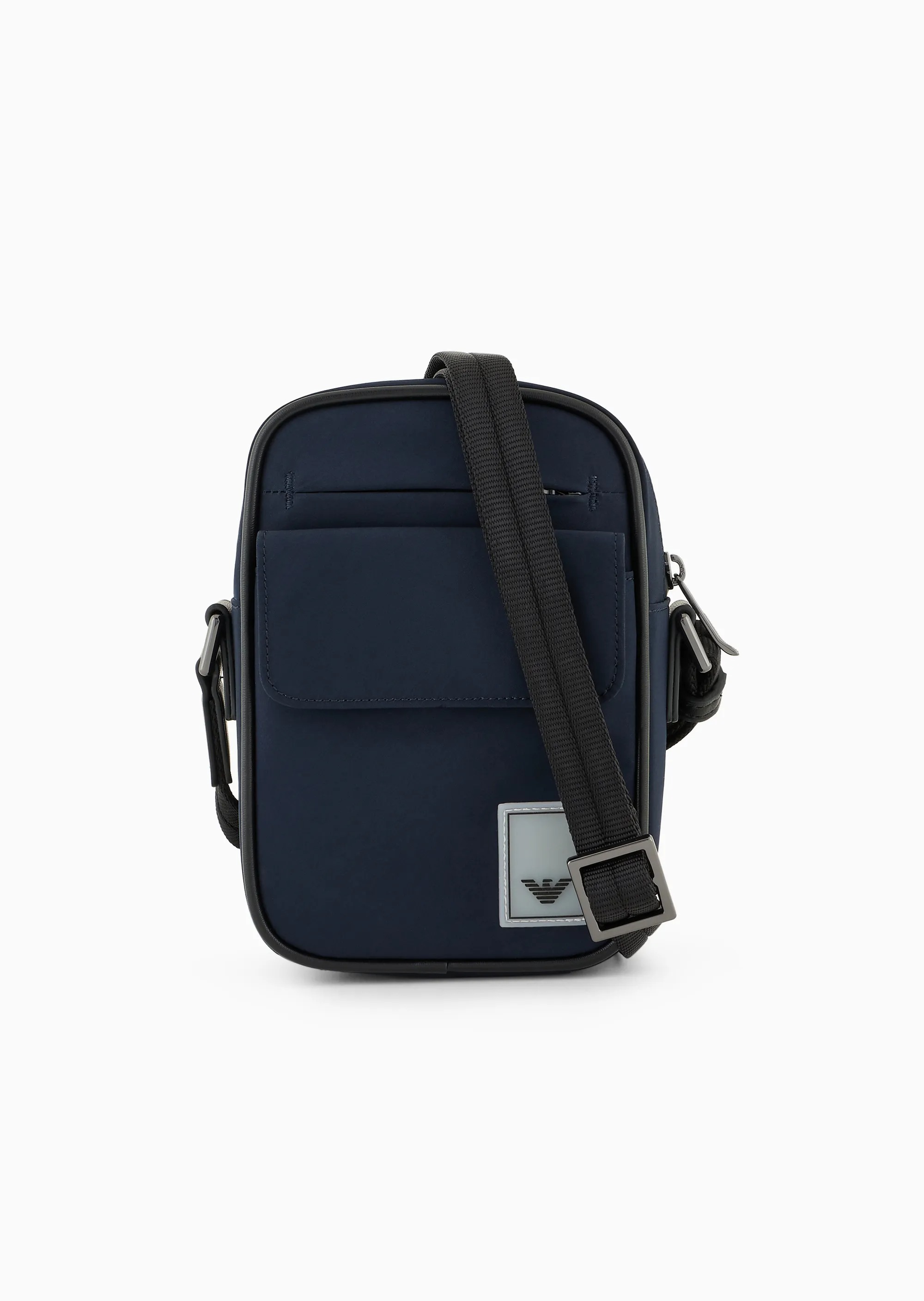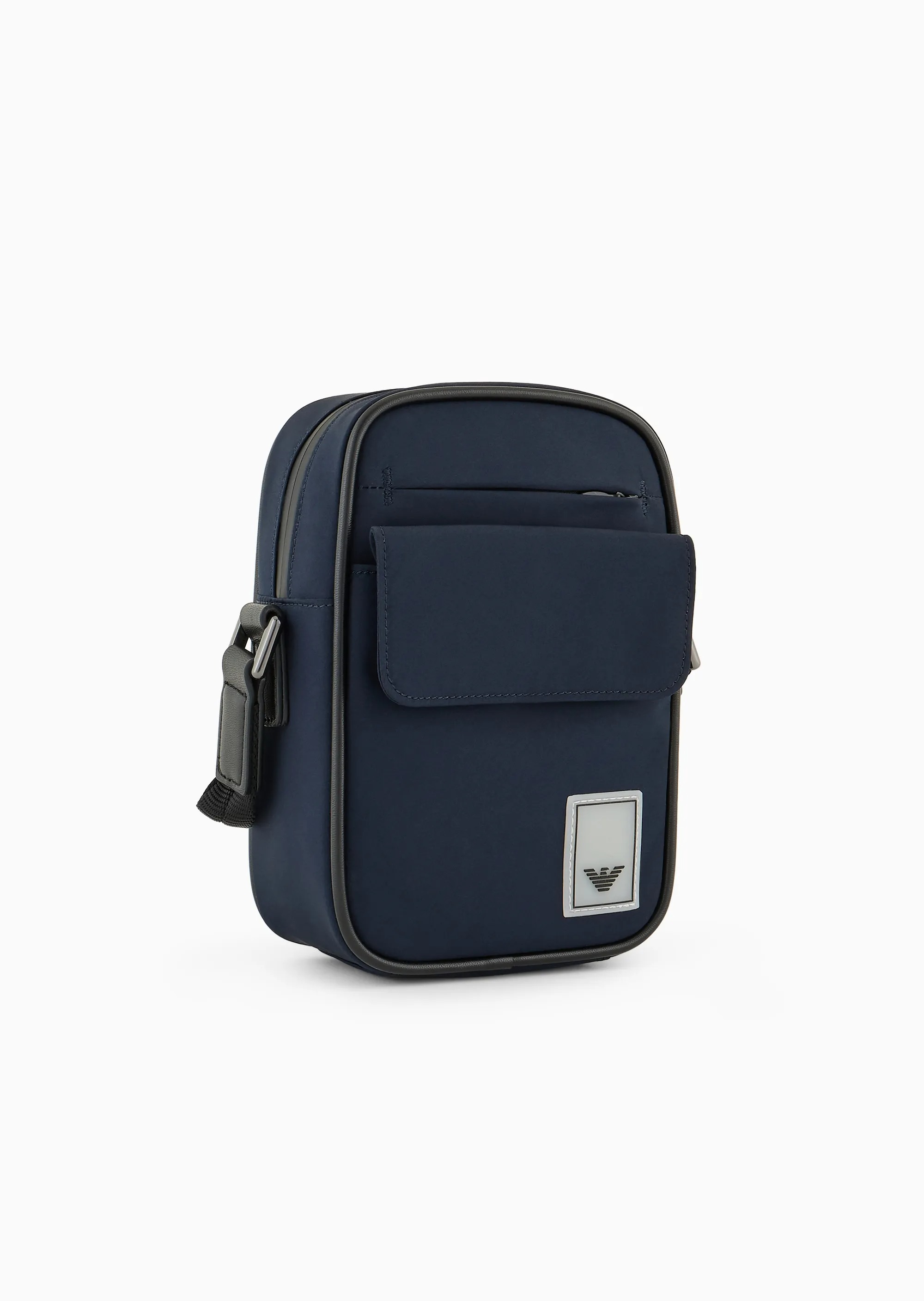 Маленька сумка через плече. Оснащена регульованим плечовим ременем, прикрашена великим логотипом EA і просторою передньою кишенею.