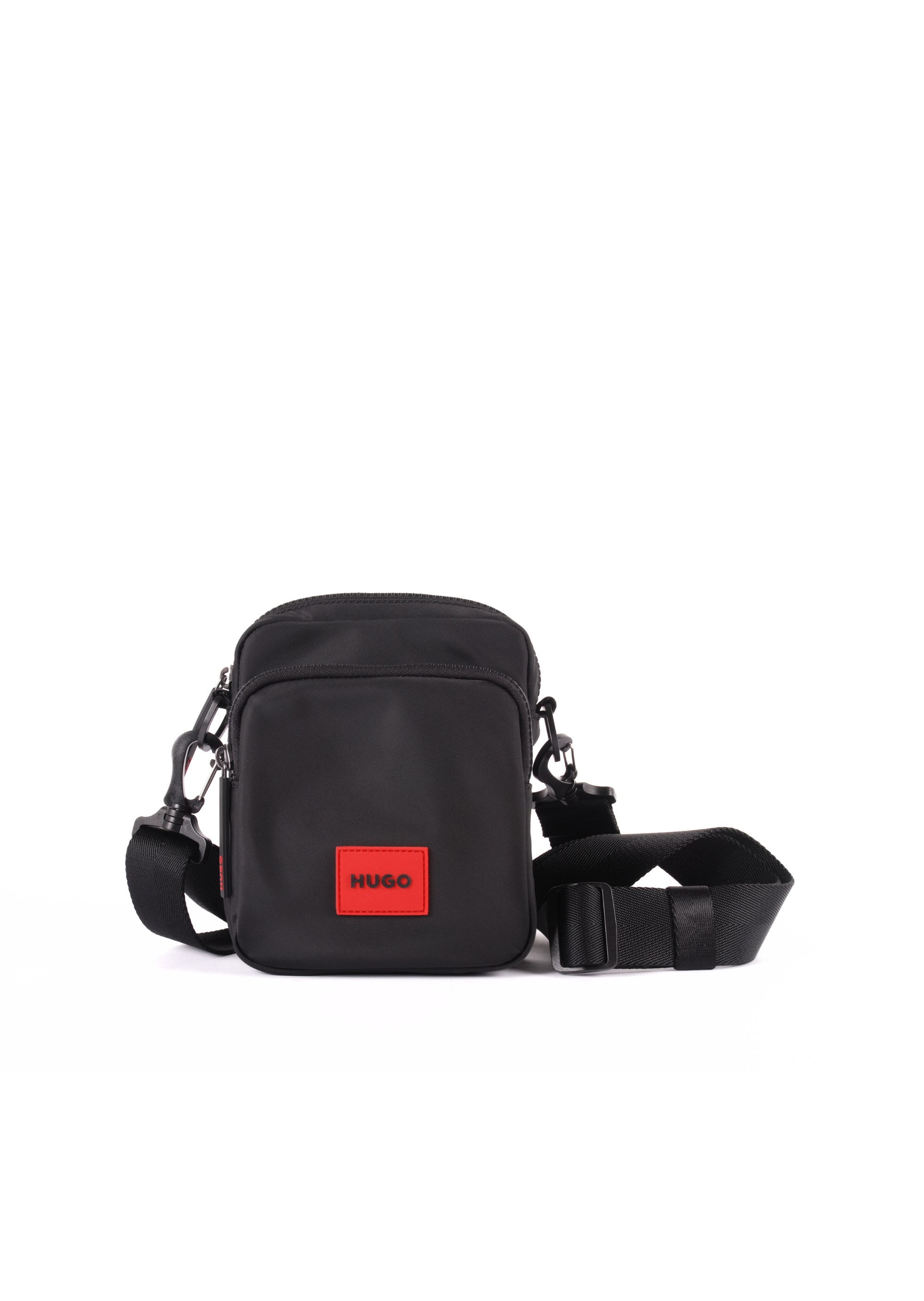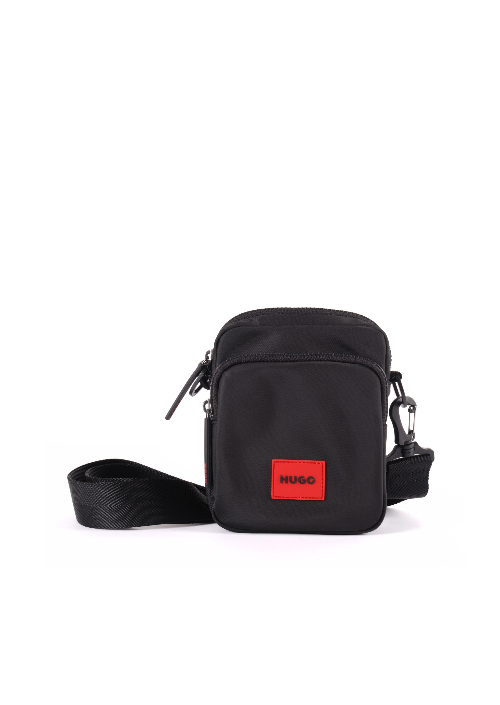 Лаконічна сумка HUGO у стриманому чорному кольорі. Прямокутна форма з чіткими лініями доповнена знімним плечовим ременем для зручного носіння. Фірмовий логотип на передній панелі додає завершеності образу. Матеріал стійкий до зношування і добре тримає форму. Мінімалістичний дизайн робить її універсальним елементом гардеробу. Преміальна якість виконання та практичність відображають фірмову естетику HUGO.