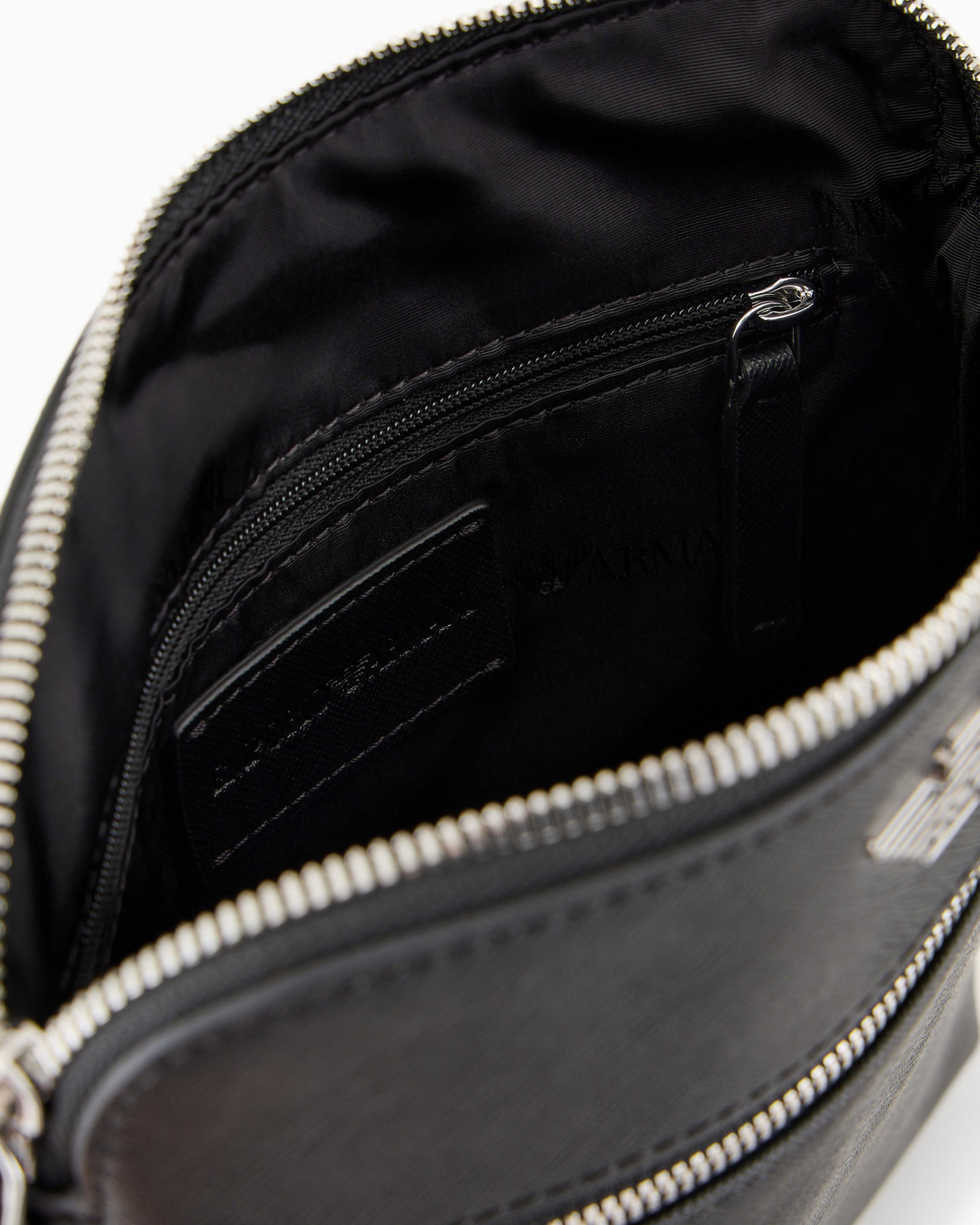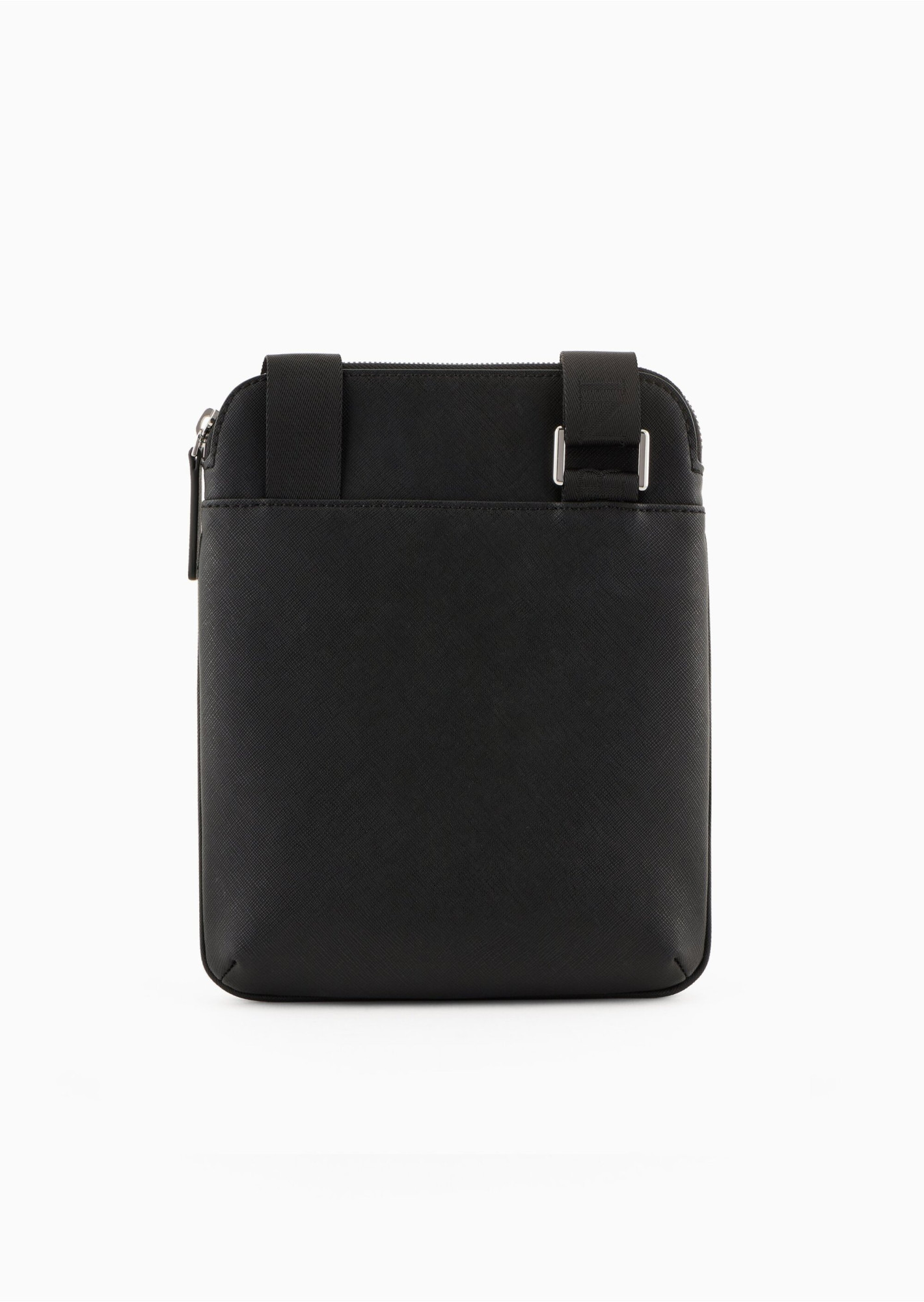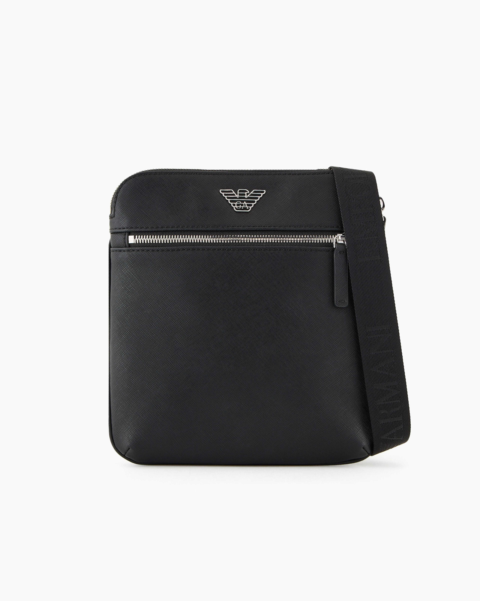 Плоска сумка через плече з регенерованої шкіри, виготовлена із переробленого сертифікованого матеріалу. Модель із застібкою-блискавкою та зовнішньою кишенею ідеально підходить для повсякденного життя. Сумка має привабливий дизайн, відрізняється обробкою Saffiano та фігурним перфорованим металевим логотипом у вигляді орла.