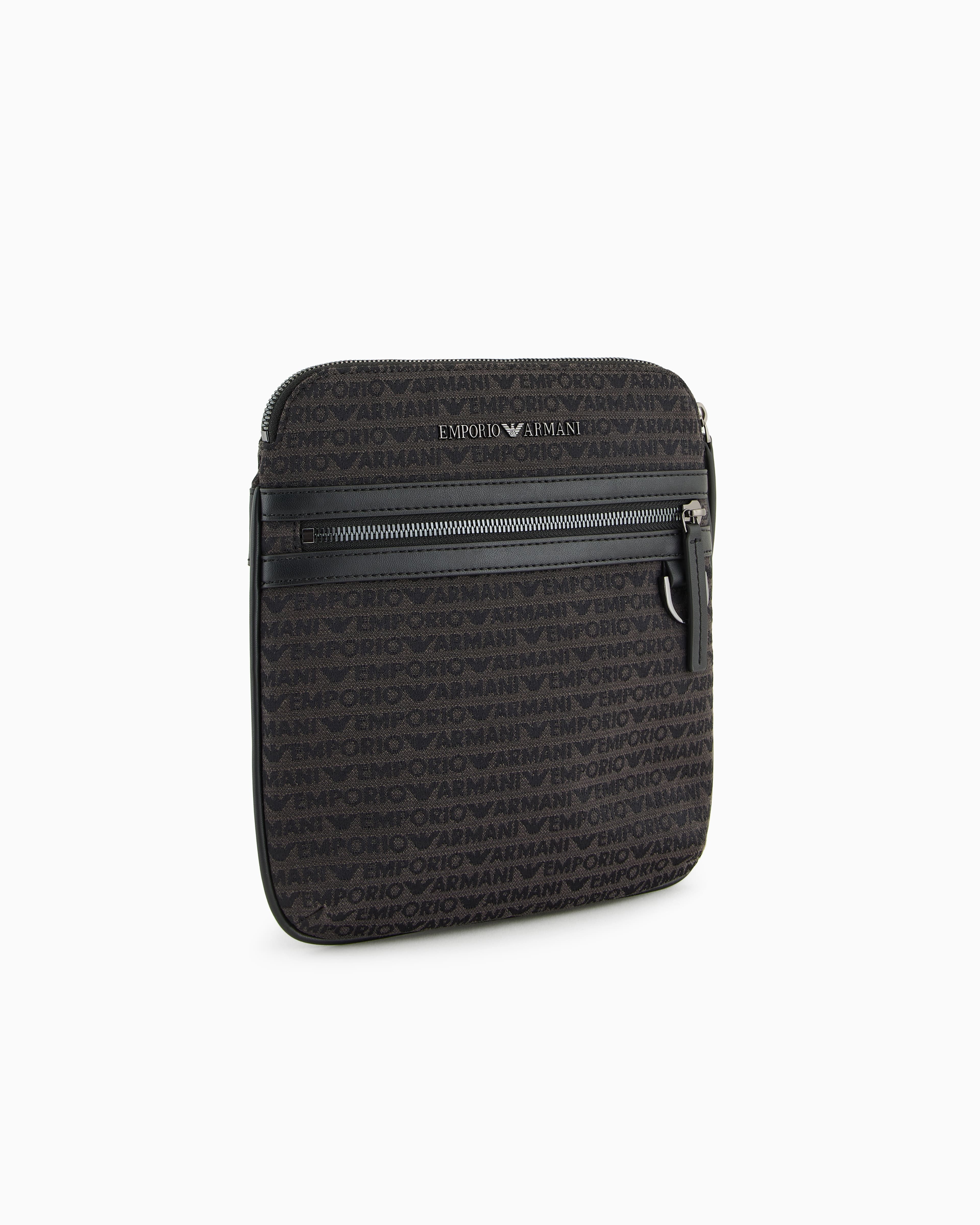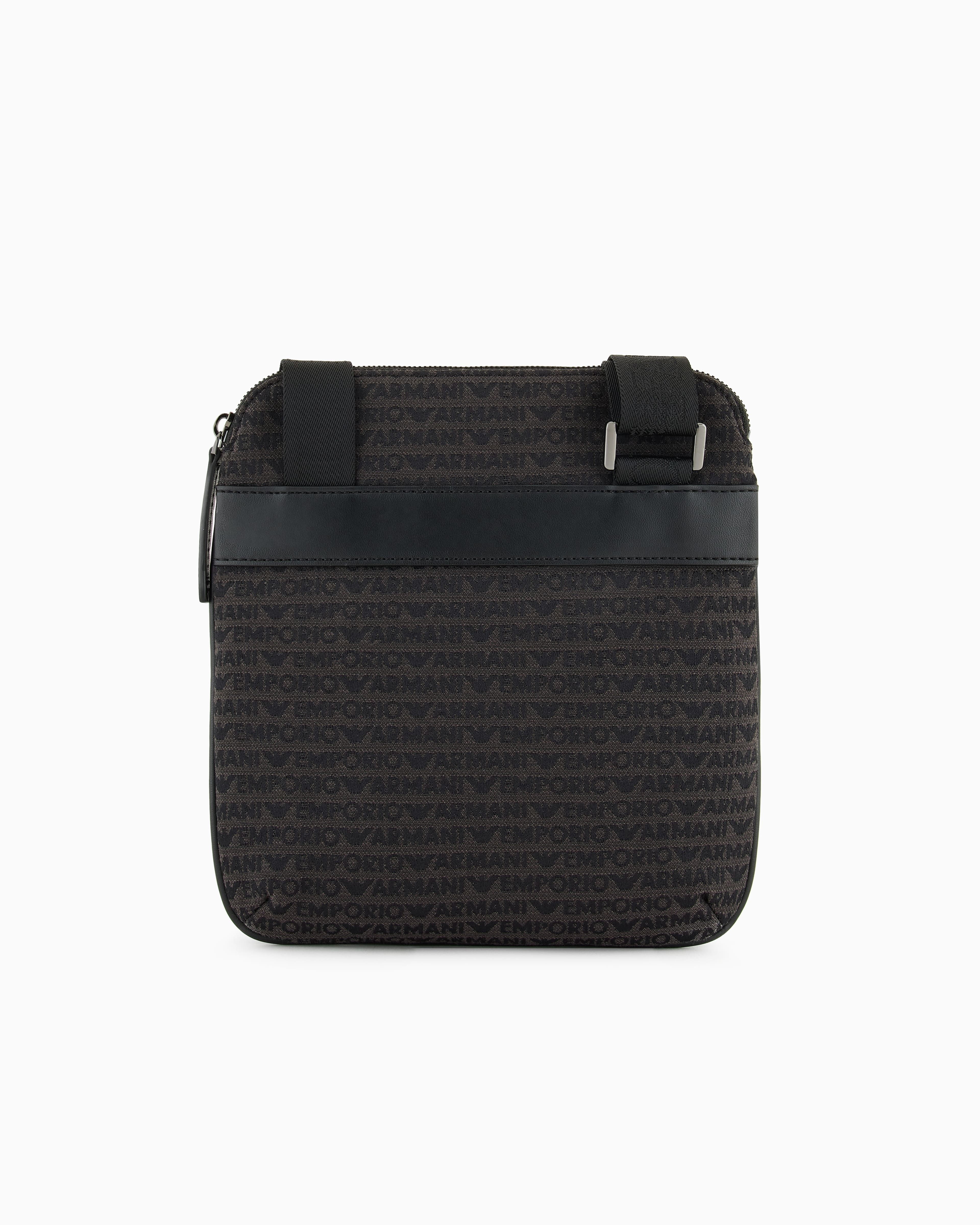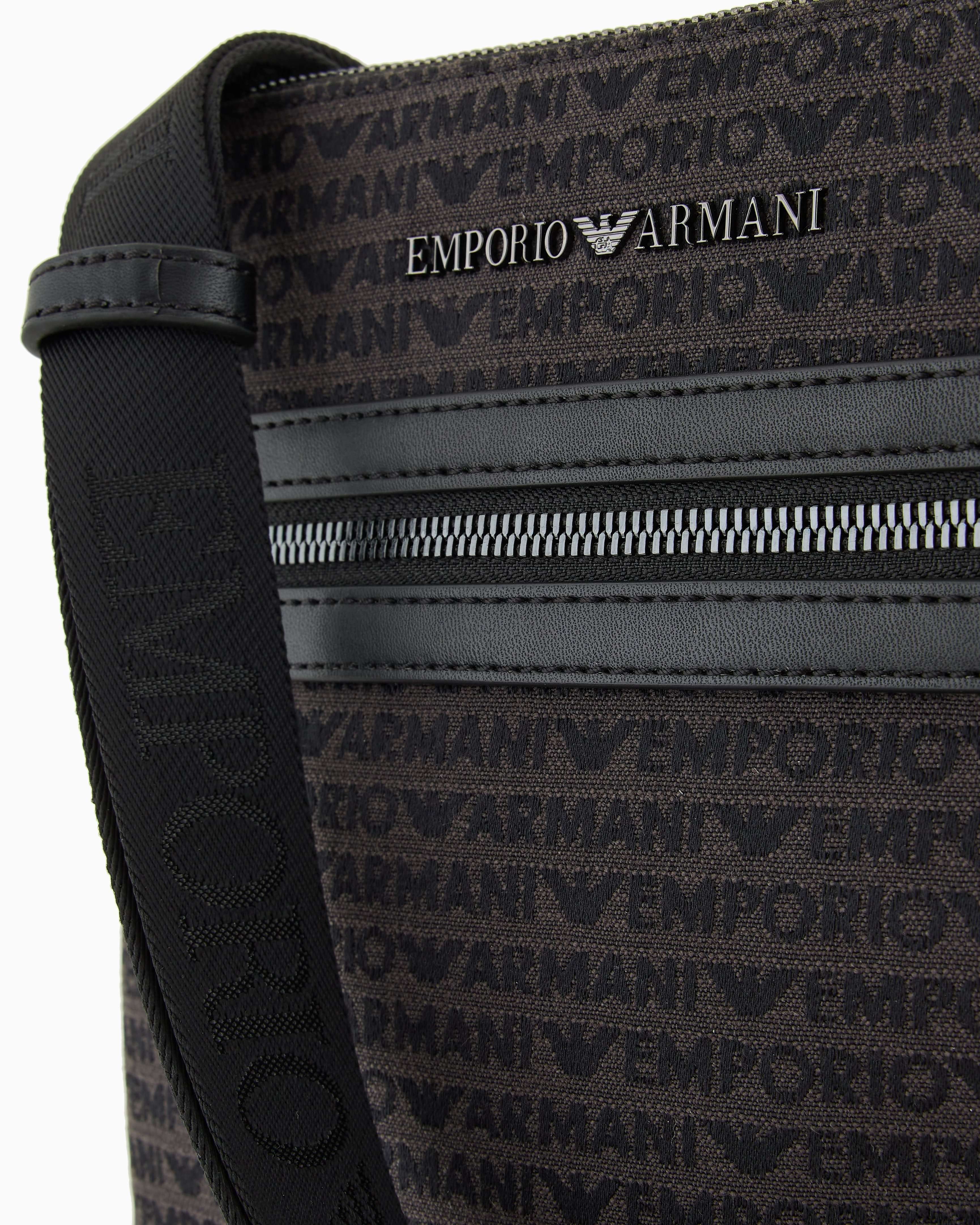 Чоловіча сумка через плече виготовлена з бавовни. Стильна модель з фірмовим жаккардовим написом логотипу з монограмою, додатково прикрашена металевою пластиною з логотипом.