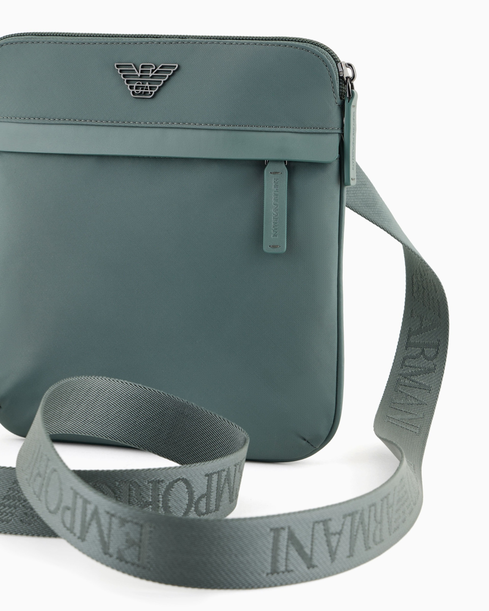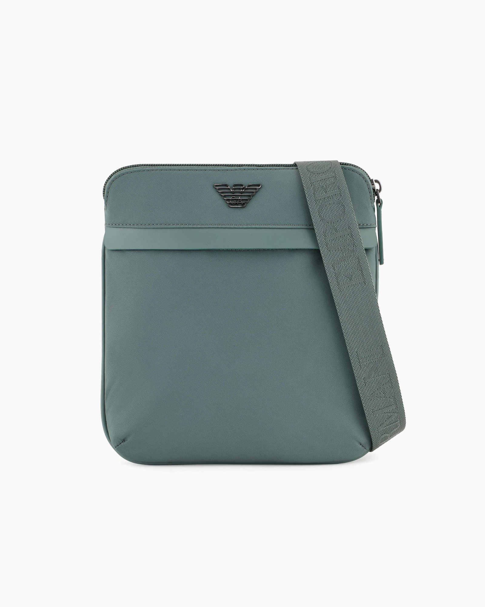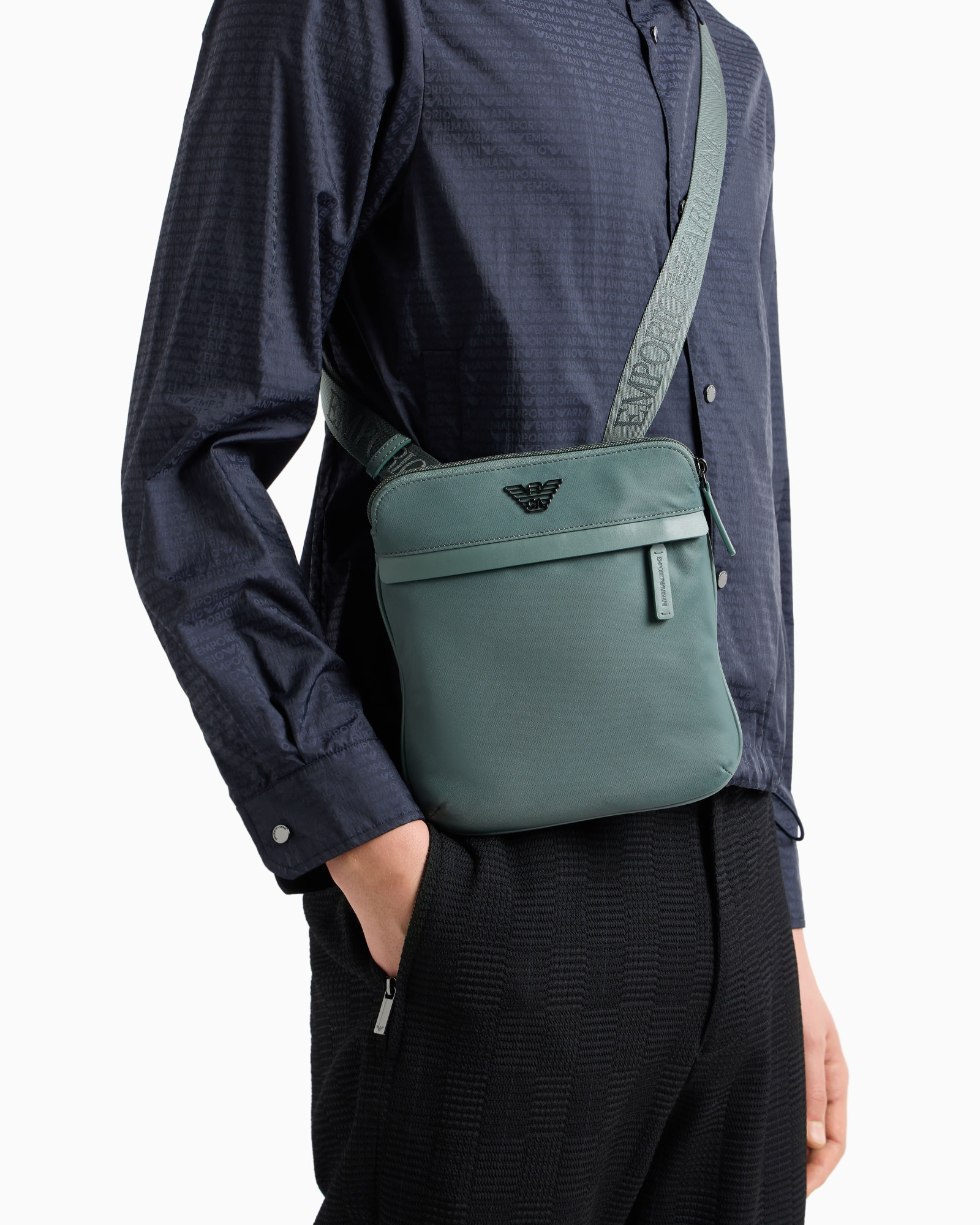 Чоловіча сумка через плече з переробленого нейлону із застібкою на блискавку, зовнішнім відділенням на блискавці та регульованим плечовим ременем із логотипом.