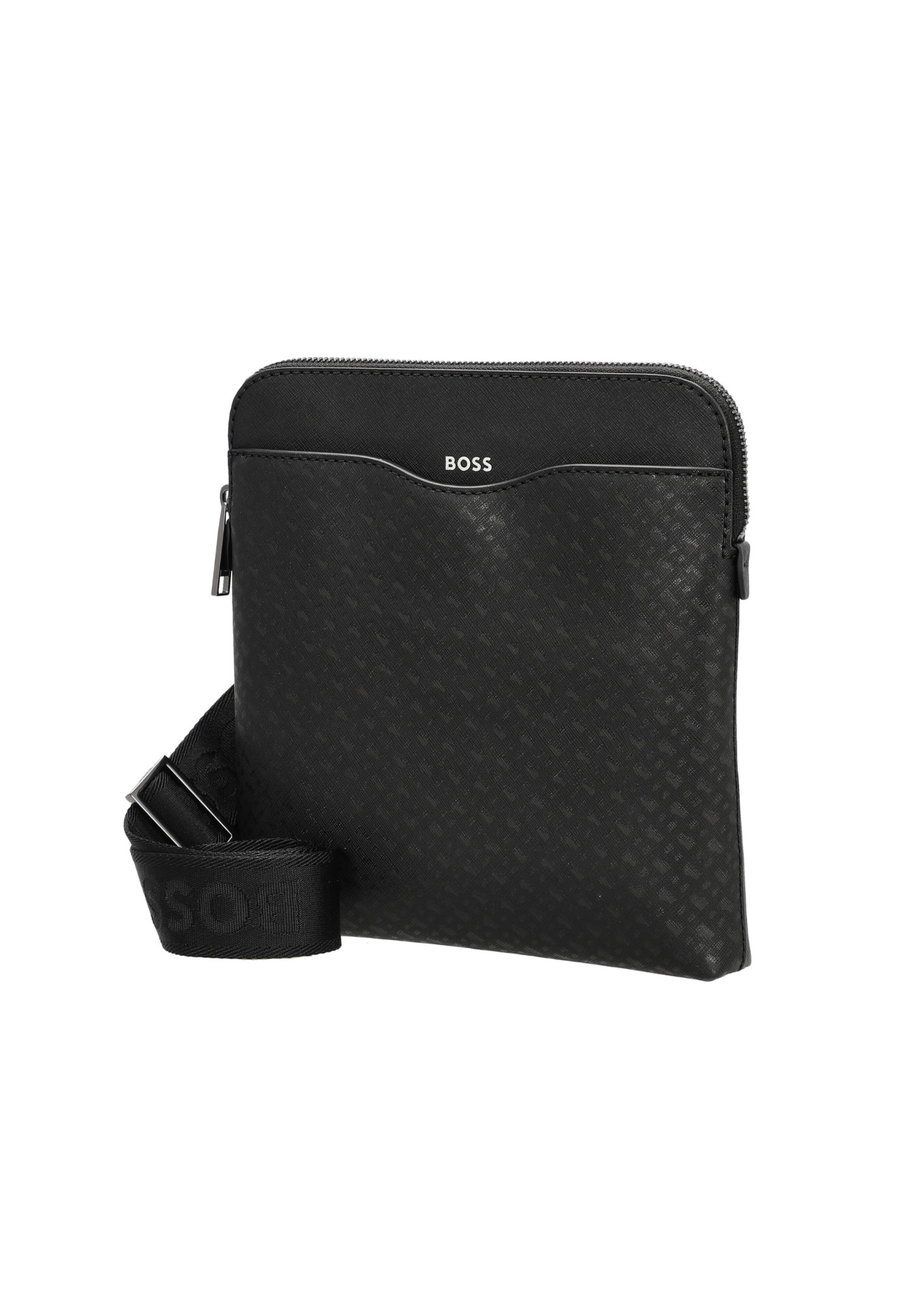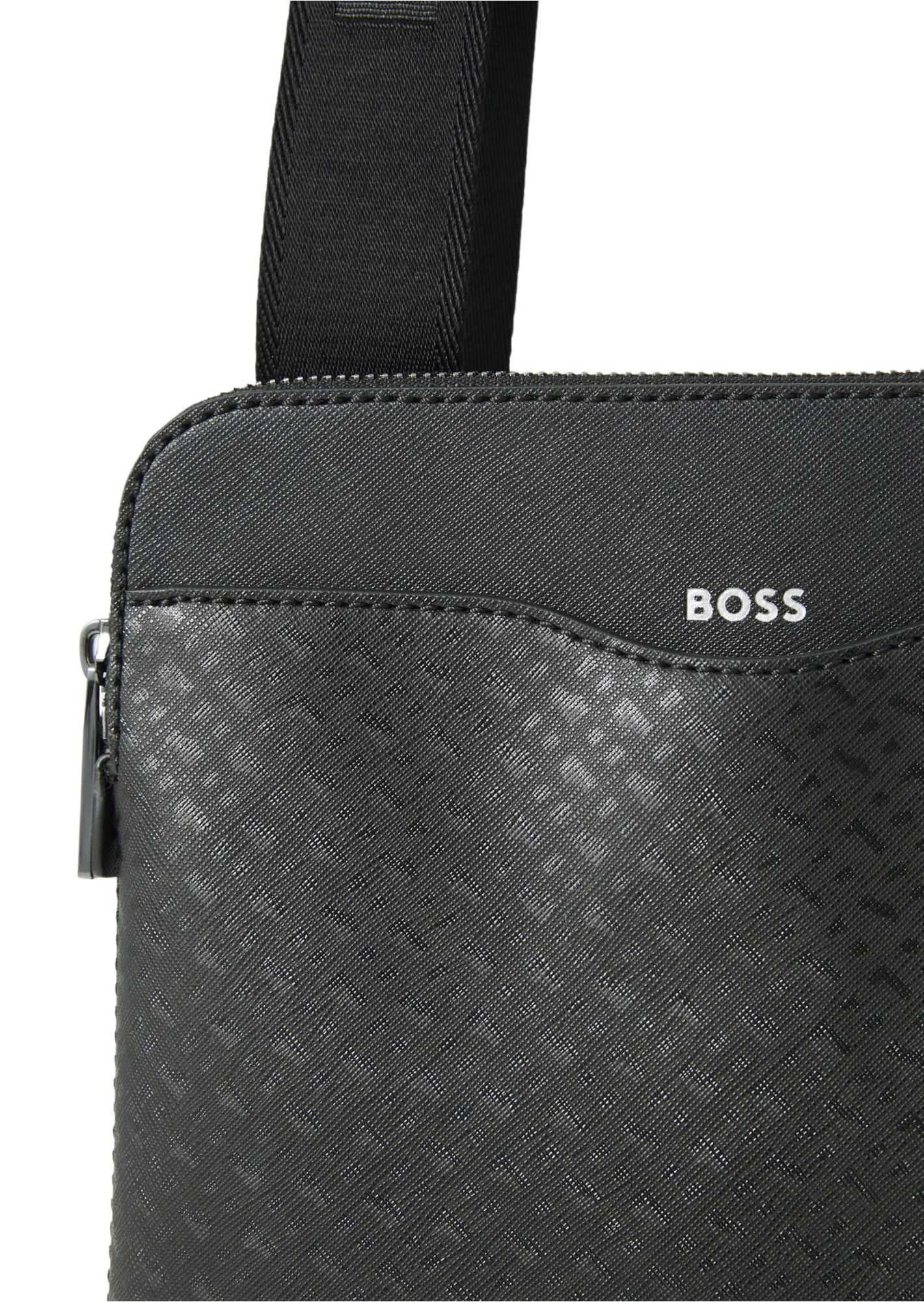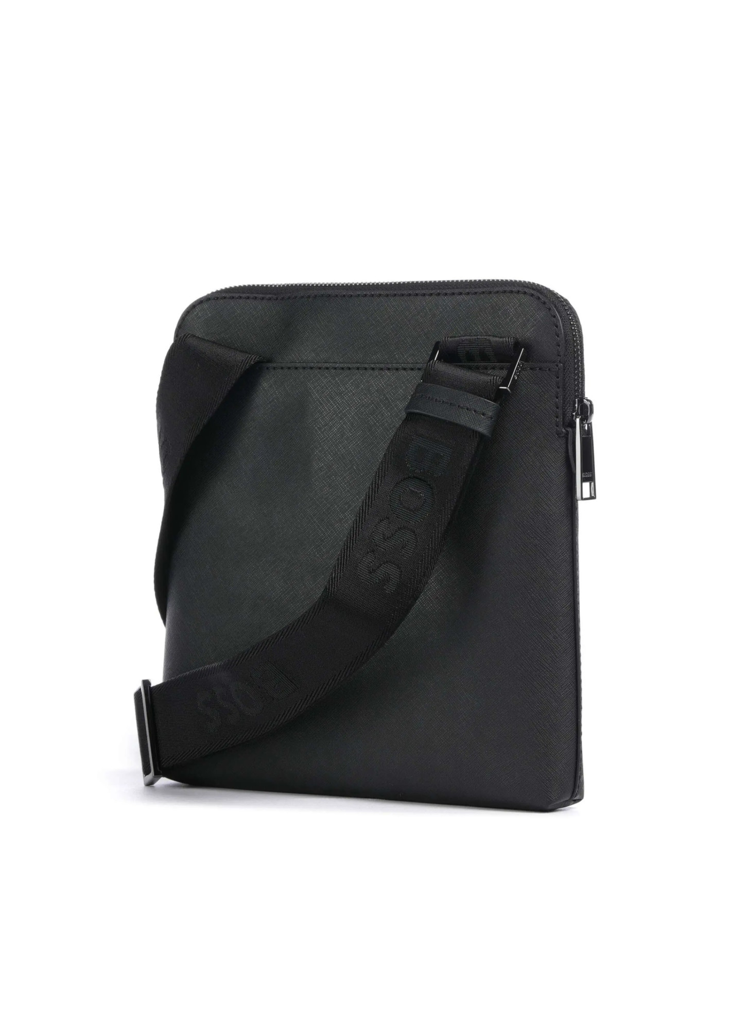 Чоловіча сумка через плече BOSS виготовлена з високоякісної еко-шкіри чорного кольору. Має основне відділення на блискавці та передню кишеню для дрібниць. Регульований ремінь забезпечує зручність носіння.