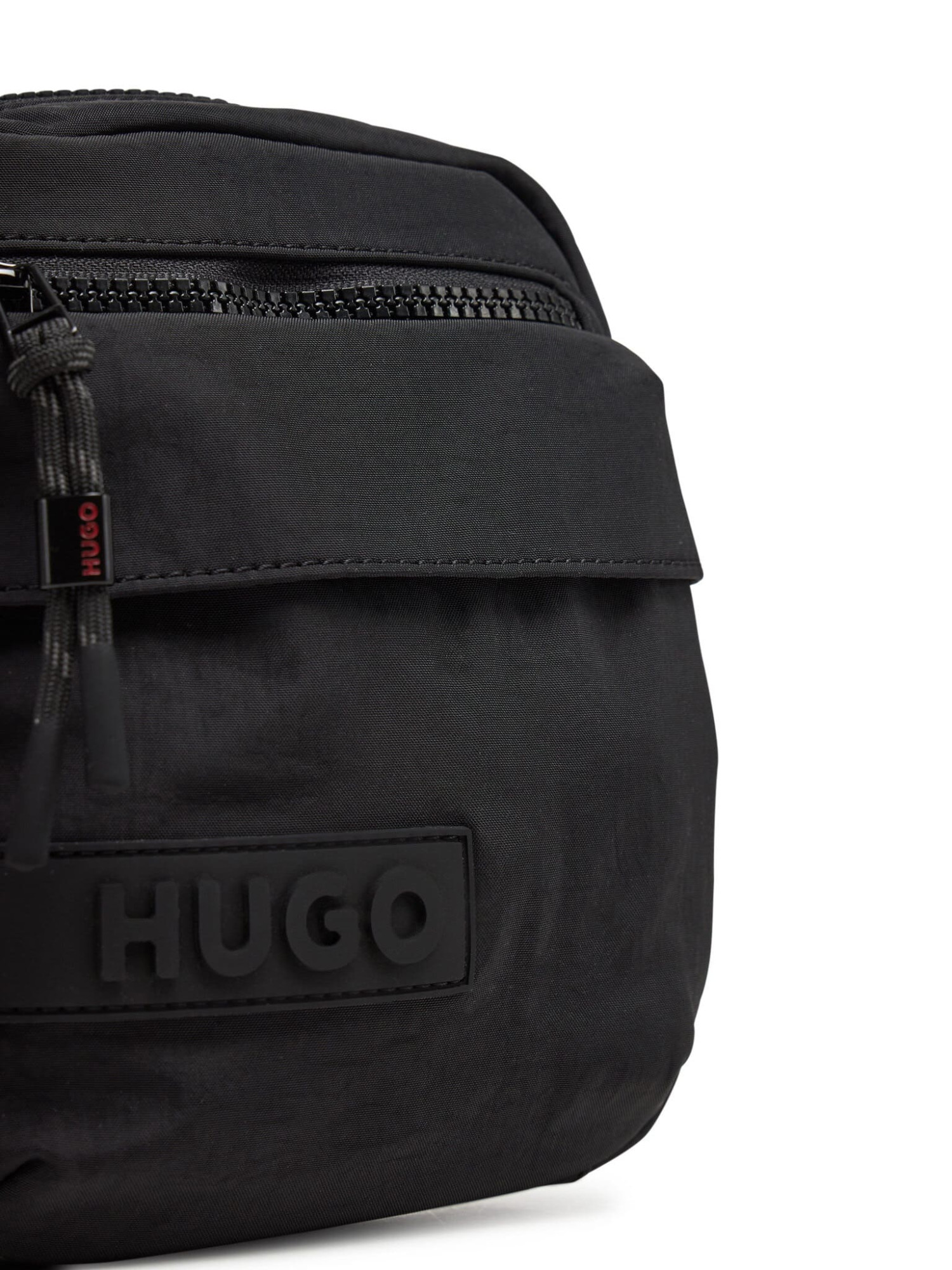 Чоловіча сумка через плече BOSS виготовлена з еко-шкіри чорного кольору. Має основне відділення на блискавці, передню кишеню та регульований ремінь. Логотип бренду прикрашає передню панель.