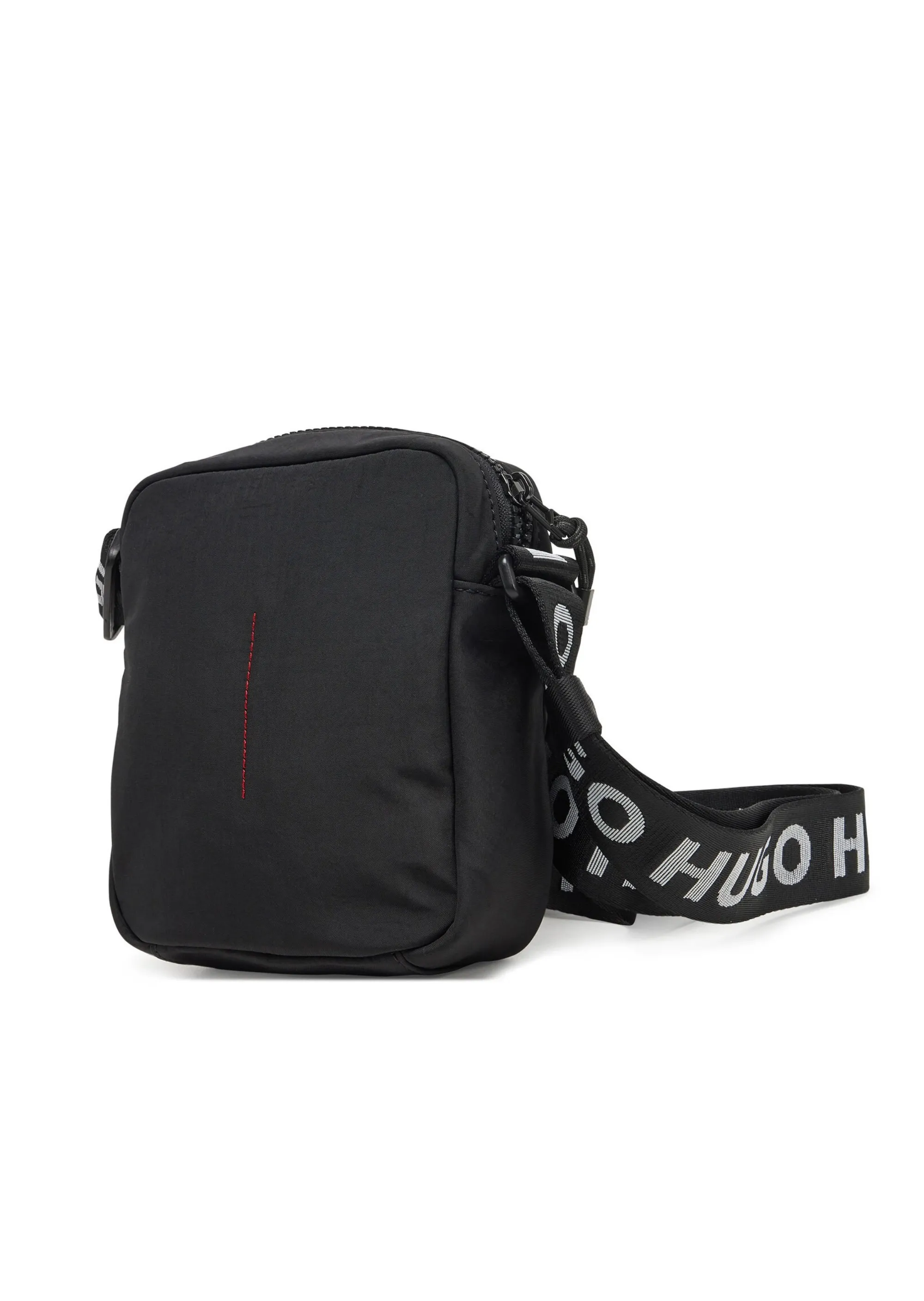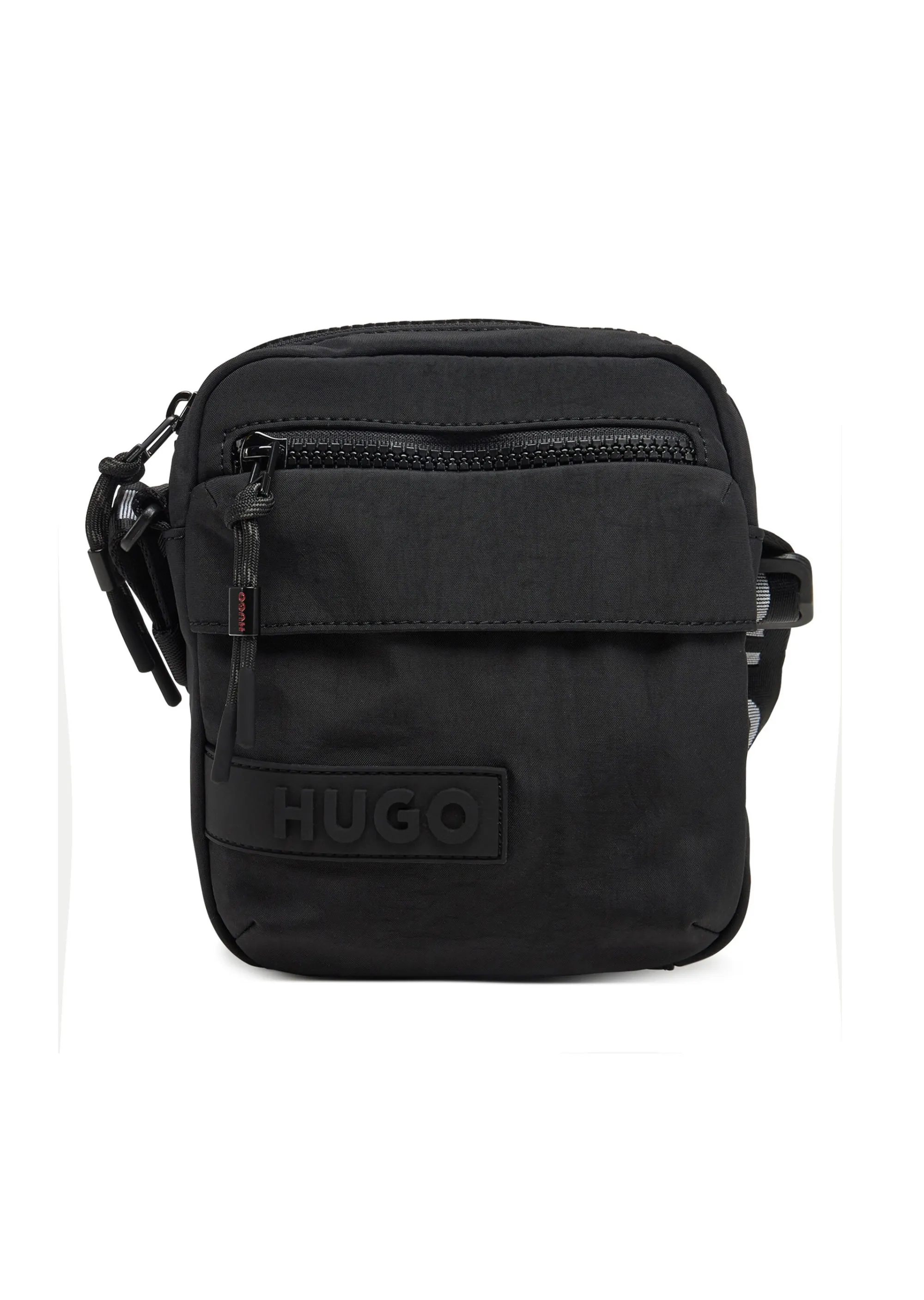 Чоловіча сумка через плече BOSS виготовлена з еко-шкіри чорного кольору. Має основне відділення на блискавці, передню кишеню та регульований ремінь. Логотип бренду прикрашає передню панель.