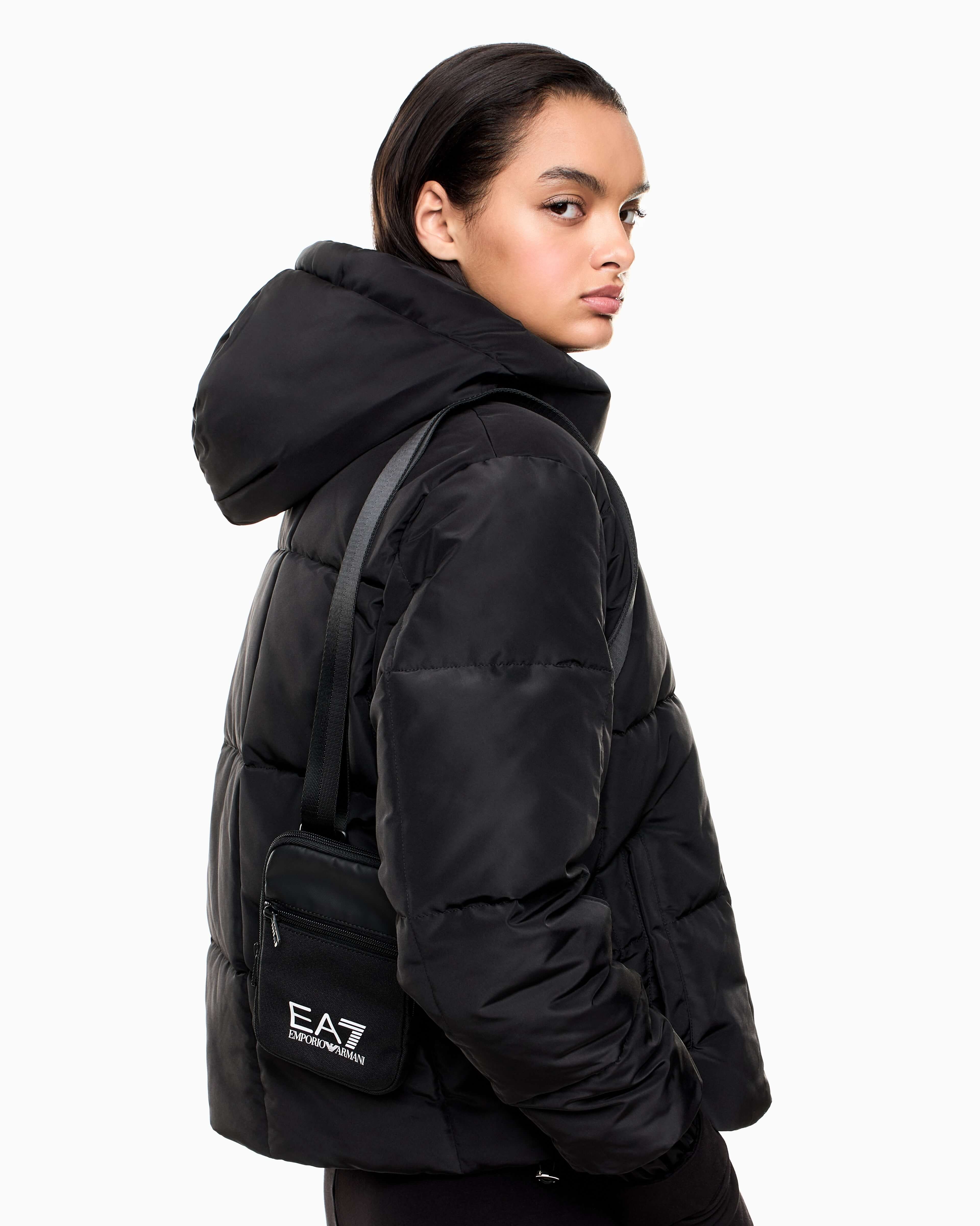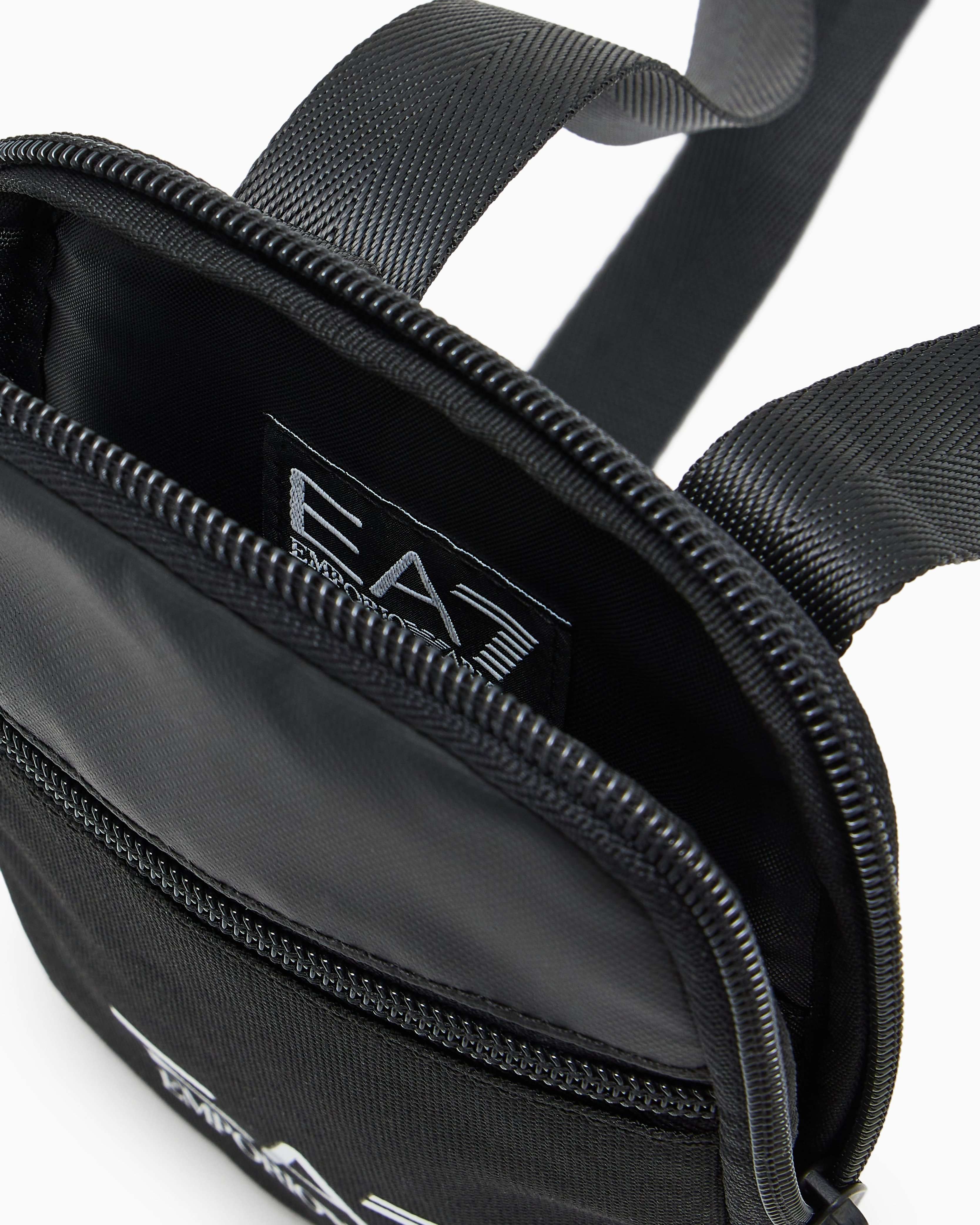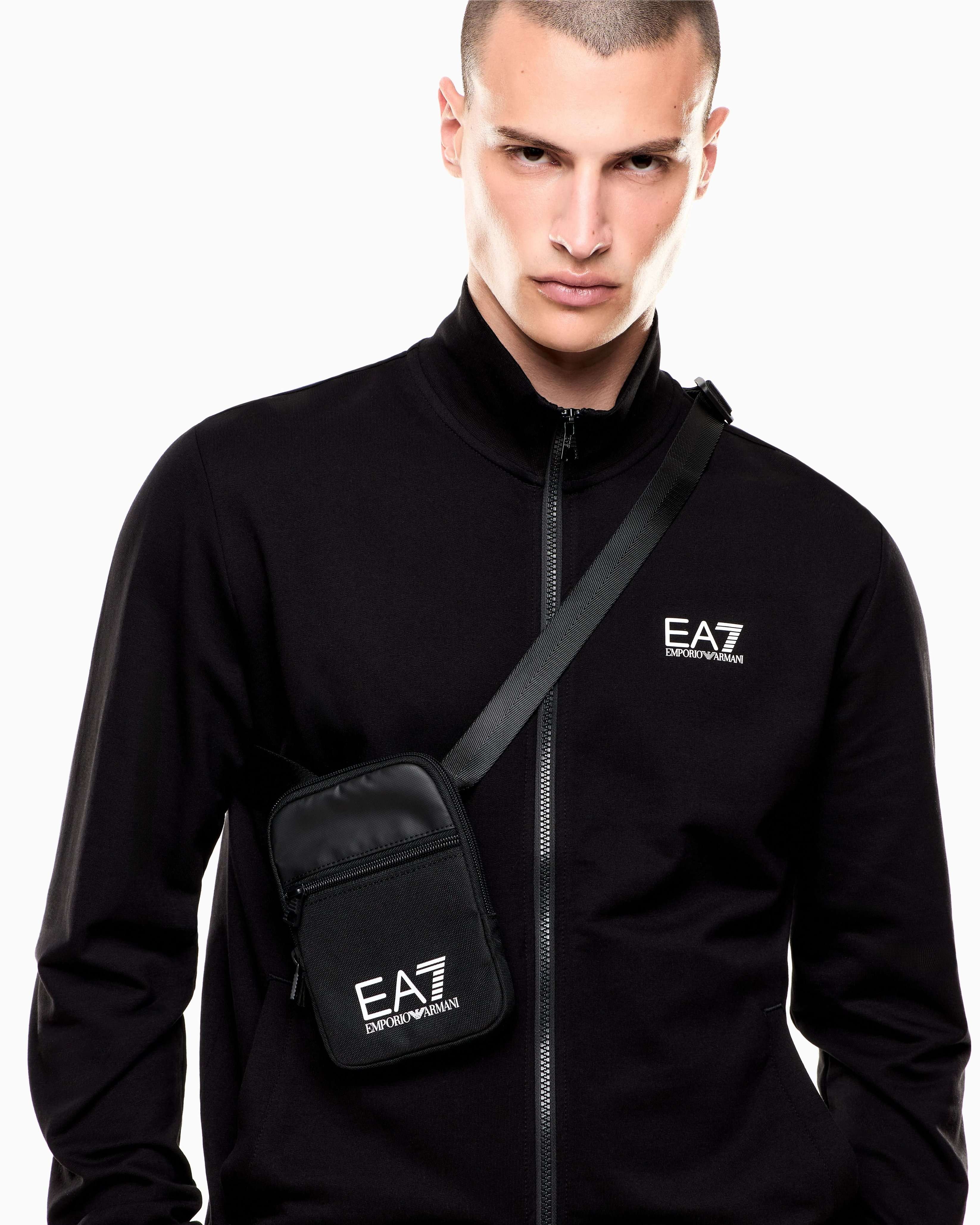 Компактна сумка через плече EA7 Emporio Armani із переробленого текстилю поєднує функціональність і сучасний спортивний стиль. Міцний матеріал із поліуретановим покриттям захищає від вологи та зношування. Основне відділення на блискавці доповнене місткою фронтальною кишенею, а регульований плечовий ремінь забезпечує комфорт під час носіння. Контрастний збільшений логотип надає виразного акценту. Поєднується зі спортивними куртками, вітрівками або кежуал-комплектами, створюючи компактний і динамічний міський образ.