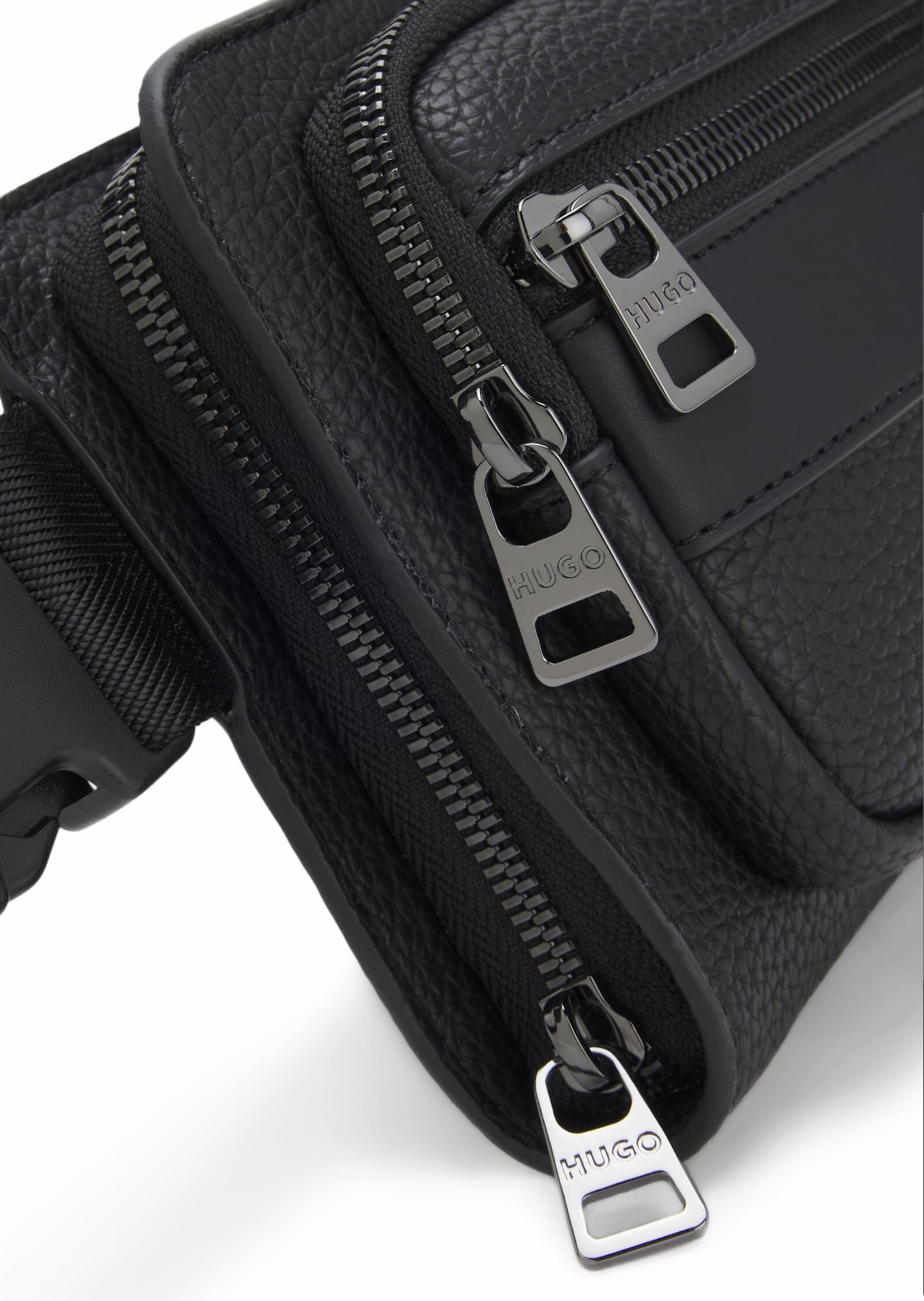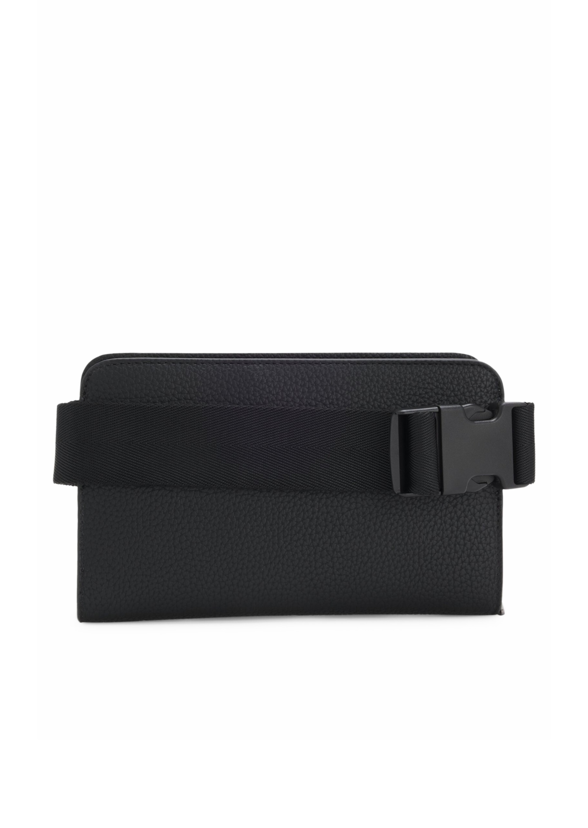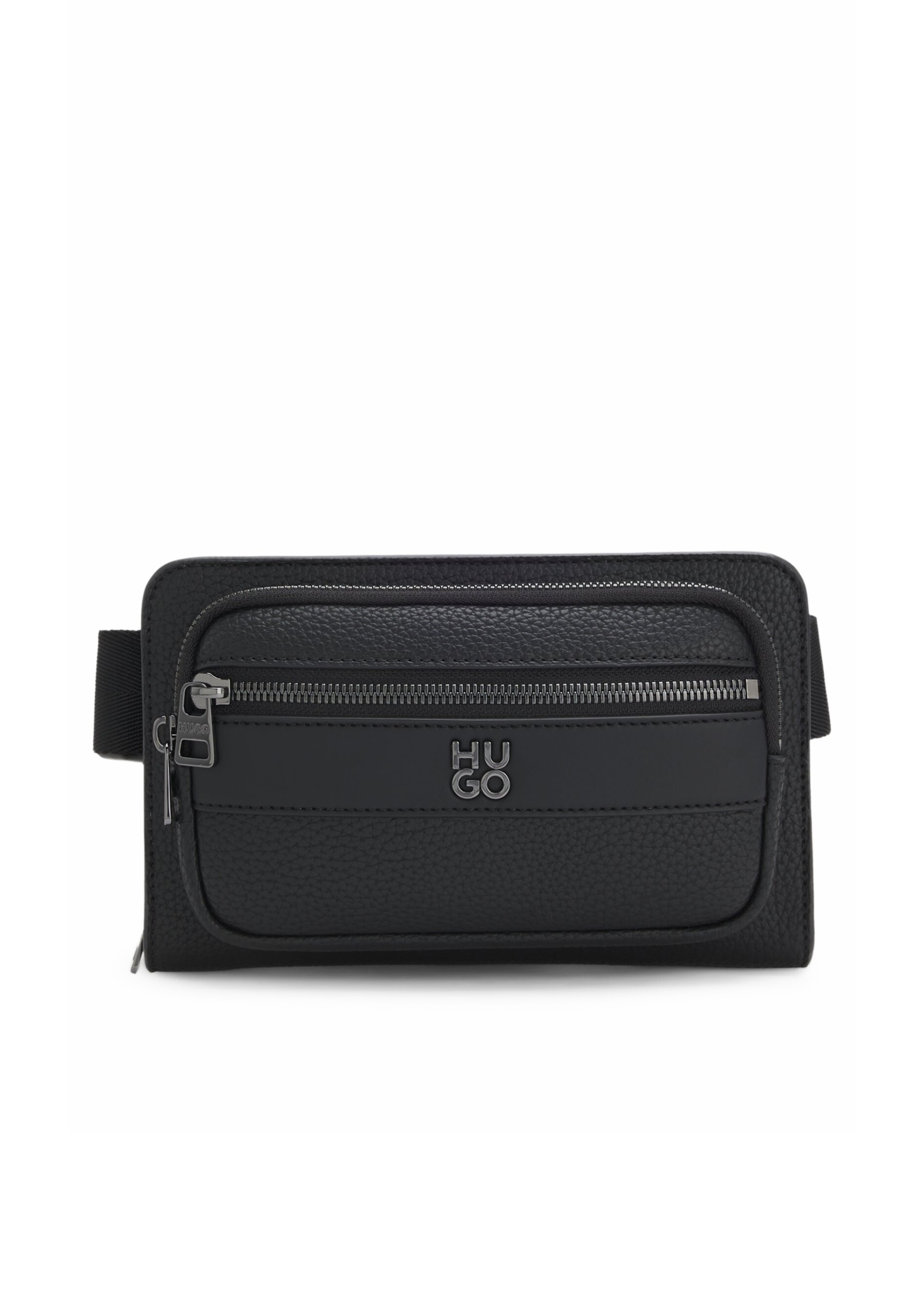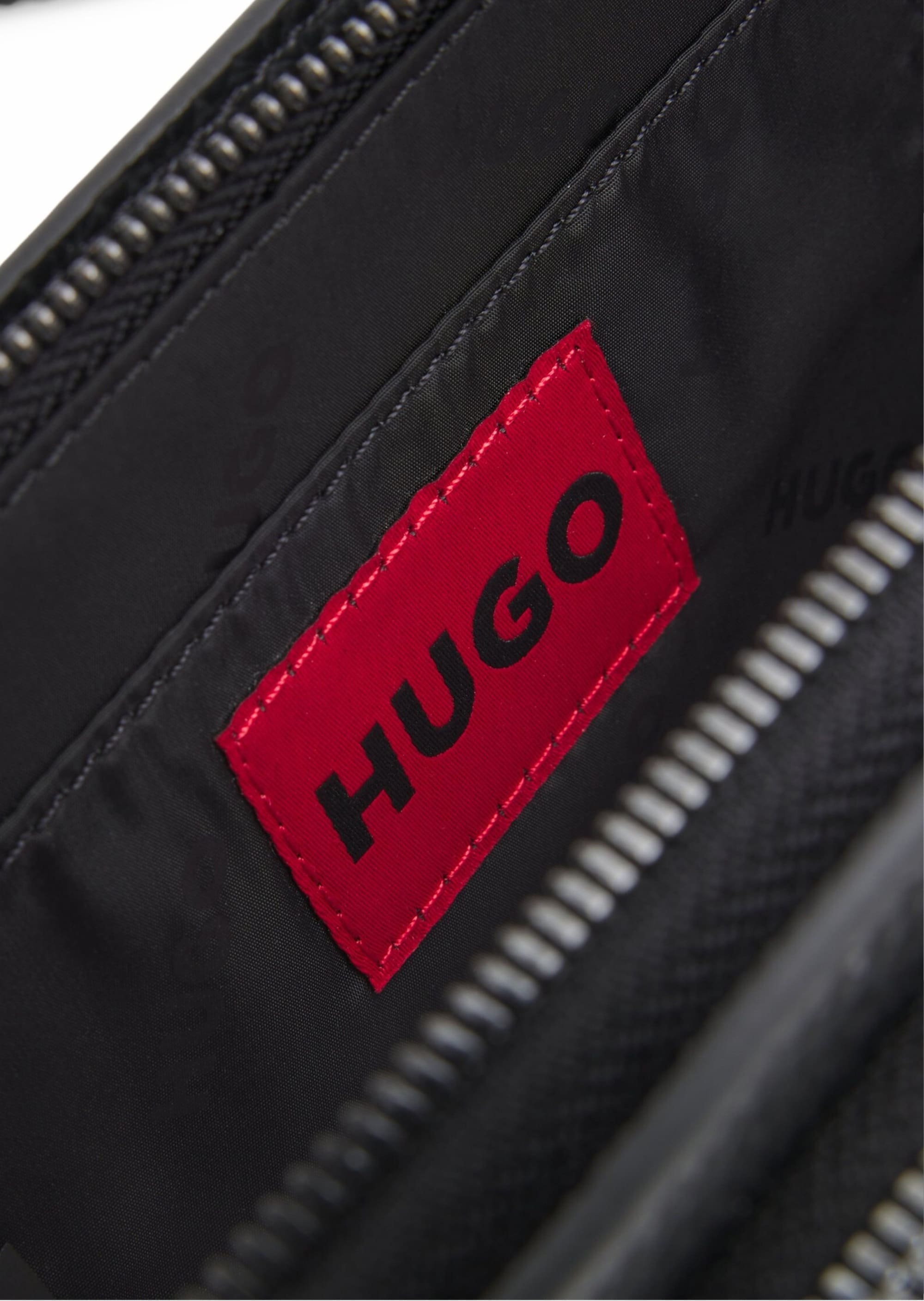 Поясна сумка HUGO чорного кольору виготовлена з міцного матеріалу synth‑coated з фактурою під шкіру, створюючи структурний і практичний аксесуар. Мінімалістична табличка‑логотип у тон підсилює фірмовий акцент без надмірного декору. Надійна блискавка забезпечує безпеку вмісту. Компактні габарити роблять її ідеальною для ключів, гаманця та телефону. Сумка HUGO стає стильним і функціональним елементом urban-образу, де лаконічність гармонійно поєднується з сучасним акцентом.