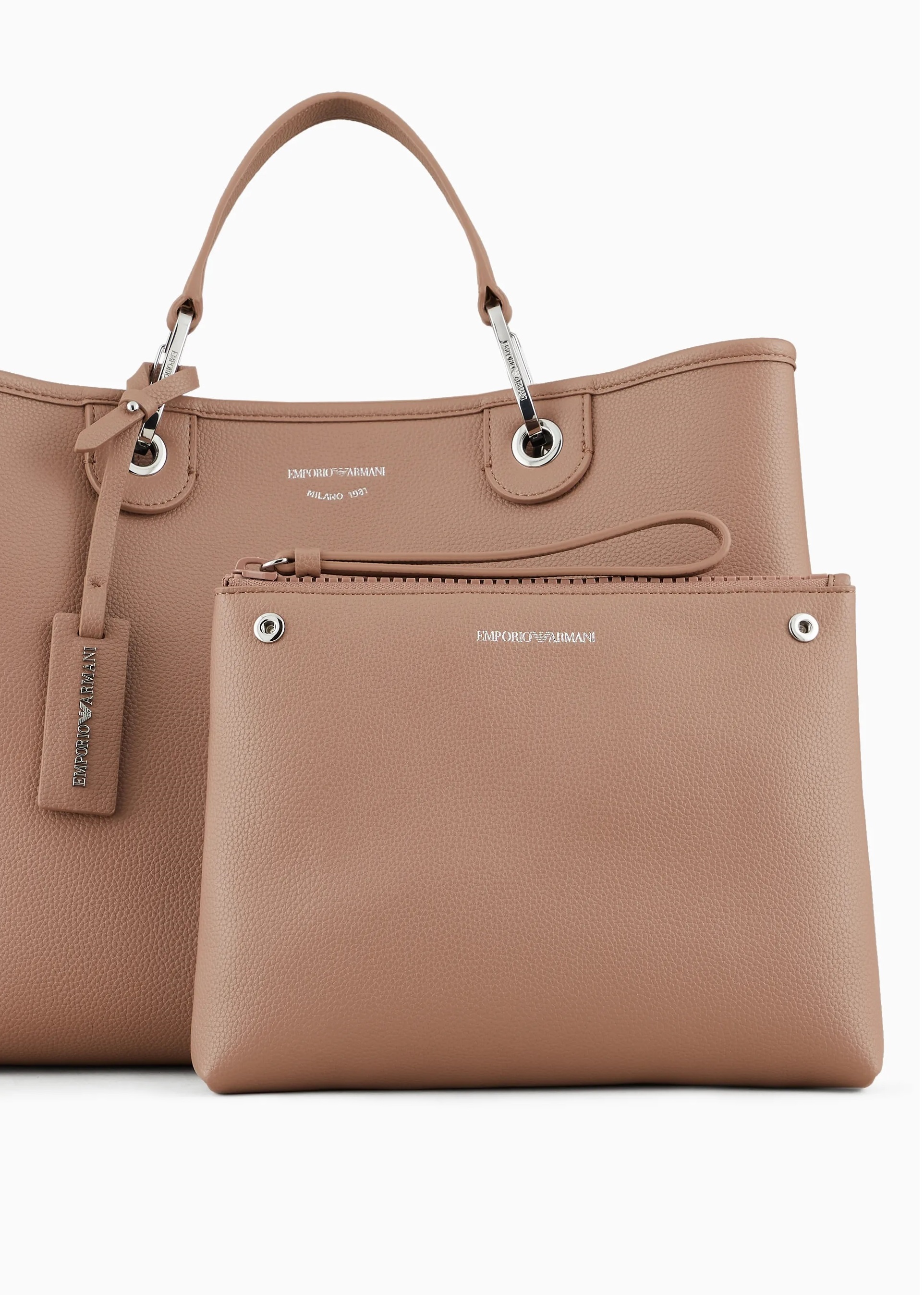 Колекція Essentials демонструє незмінний стиль: елегантний і практичний, він працює в численних комбінаціях у різноманітних випадках. Середня сумочка з принтом оленів, магнітною застібкою та трафаретним логотипом. Предмет прикрашений знімними золотистими затискачами-карабінами та бірками з тисненим логотипом, які пасують сумці. Відповідна внутрішня сумка на блискавці. Зі знімним ремінцем із логотипом і темно-коричневою внутрішньою частиною.