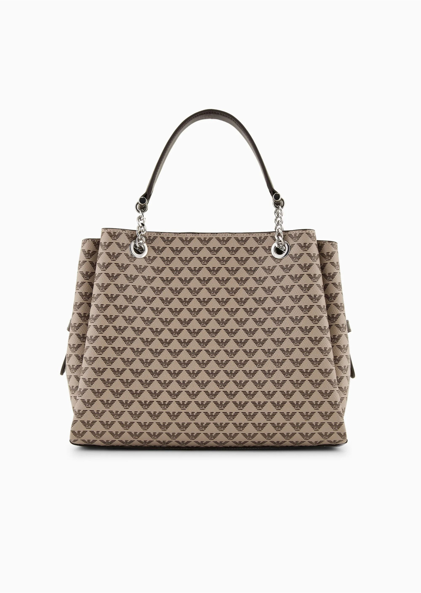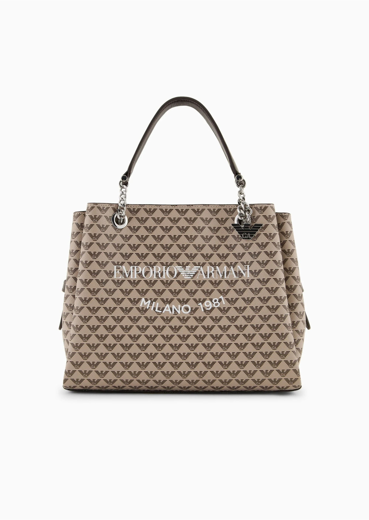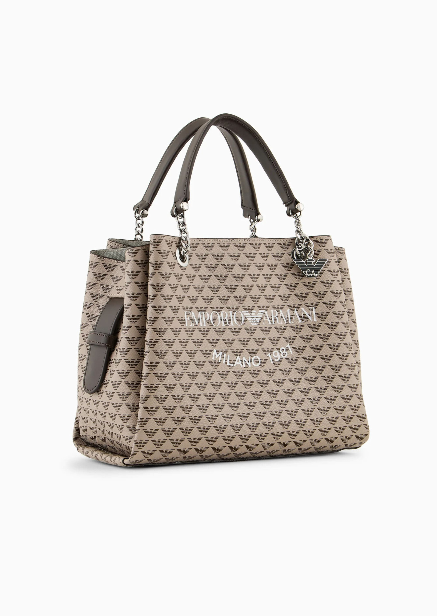 Ця сумочка має подвійну ручку, практичний регульований і знімний плечовий ремінь, фігурний шарм і відомий орел, принтований повсюди. Зручна внутрішня нейлонова сумка на блискавці, яку можна застібати або від’єднувати від сумки за бажанням. І повсякденна, і практична, ця жіноча сумка підходить для щоденного використання, зберігаючи свій виразний стиль завдяки монограмі з культовим орлом по всій поверхні.