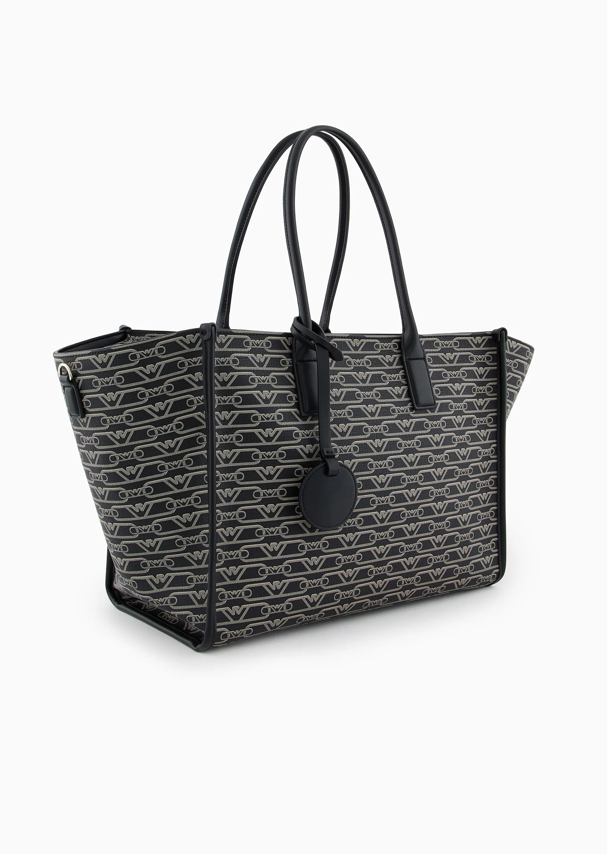 Сумка-шоппер з подвійною ручкою, практичним плечовим ременем з логотипом і підвіскою-логотипом. Серія аксесуарів із щільним монограмним принтом по всій поверхні доступна у функціональних стилях, розроблених для жінки Emporio Armani, яка завжди в русі.