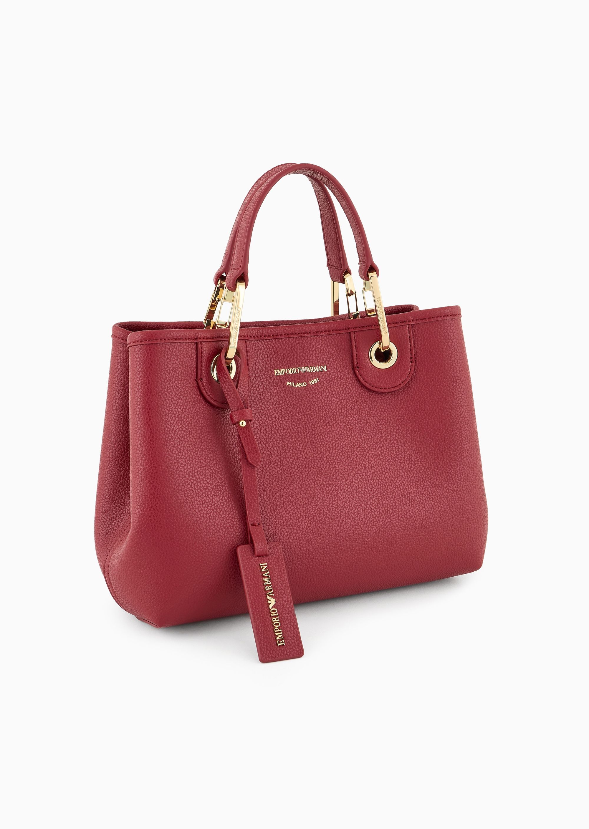 Маленька сумка-шоппер із магнітною застібкою та логотипом Emporio Armani, нанесеним шовкографією. Виріб прикрашений знімними золотистими карабінами та бирками з тисненим логотипом, які відповідають сумці. Має відповідну внутрішню кишеню на блискавці та знімний плечовий ремінь із логотипом Emporio Armani. Належить до лінійки MyEA, добірки культових та ексклюзивних сумок Emporio Armani, які найбільше характеризують цей лейбл. Виберіть виріб і доповніть його аксесуарами з лінійки, які відповідають вашому стилю.