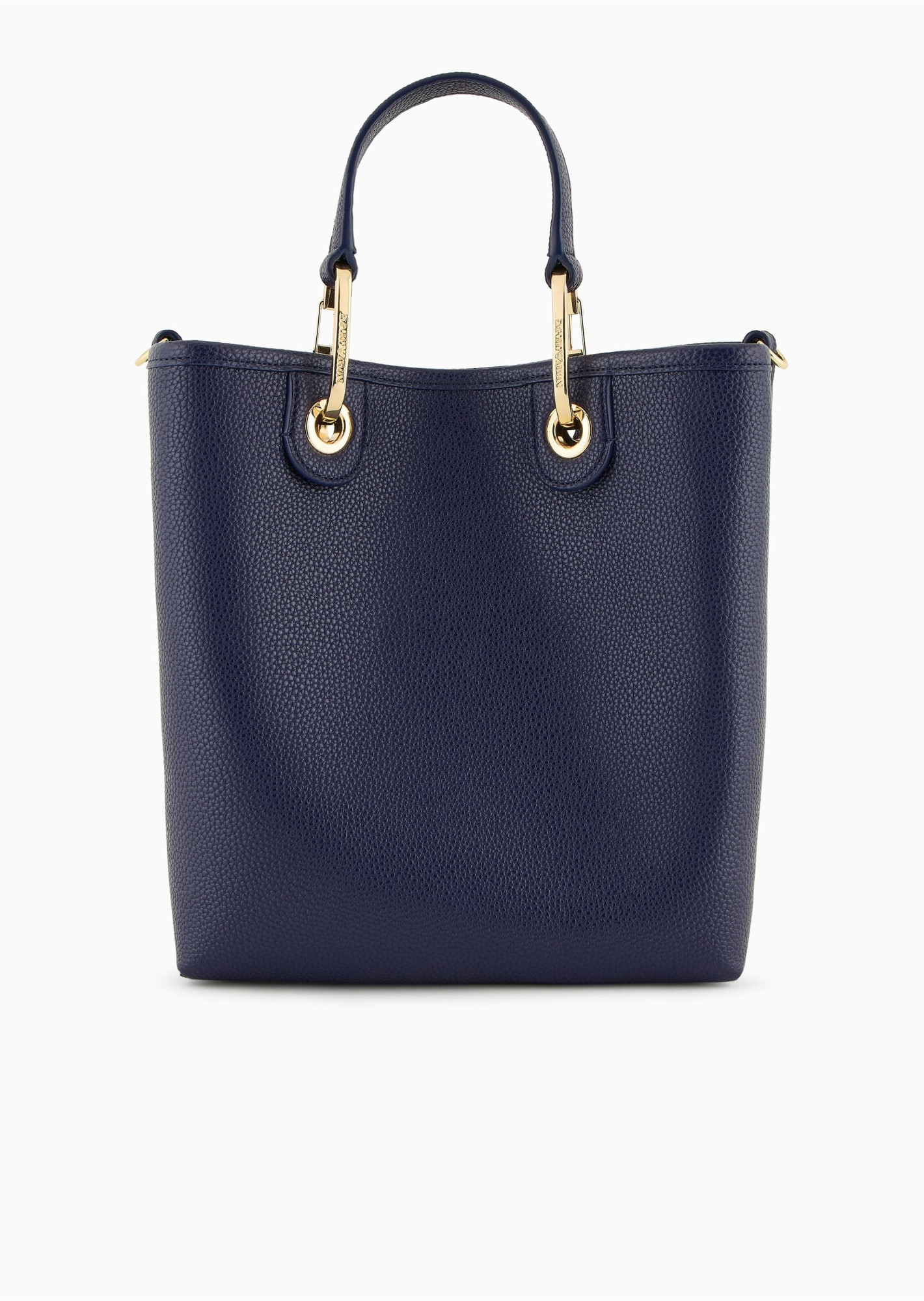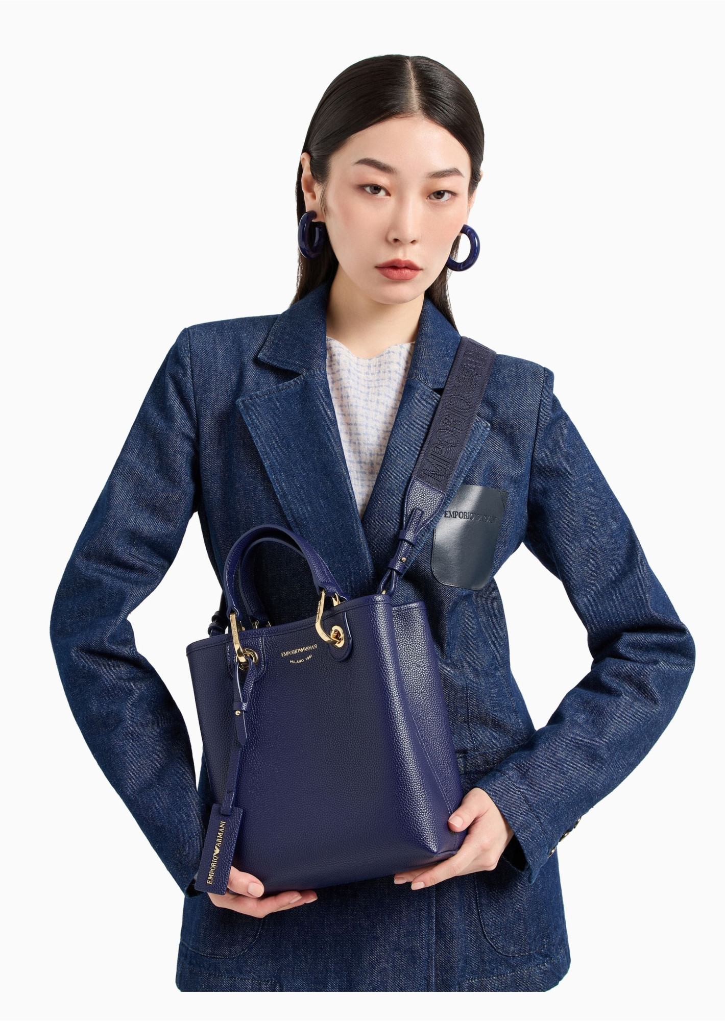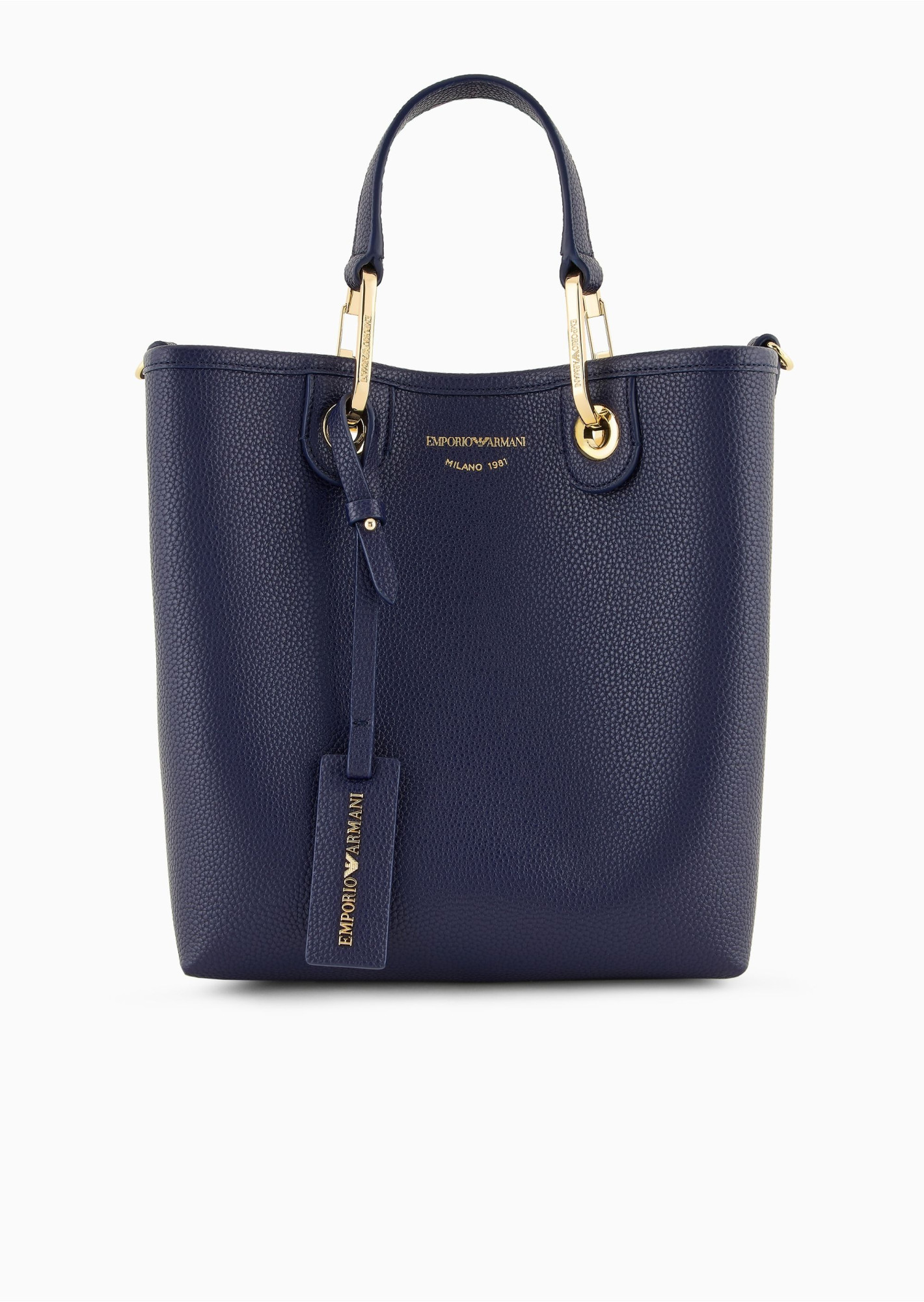 Сумка-шоппер середнього розміру, з магнітною застібкою та логотипом Emporio Armani, нанесеним шовкографією. Виріб прикрашений знімними карабінами золотистого тону та бирками з тисненим логотипом, які відповідають сумці. Має відповідну внутрішню кишеню на блискавці та знімний плечовий ремінь із логотипом Emporio Armani. Належить до лінійки MyEA, добірки культових та ексклюзивних сумок Emporio Armani, які найбільше характеризують цей лейбл. Виберіть виріб і доповніть його аксесуарами з лінійки, які відповідають вашому стилю.