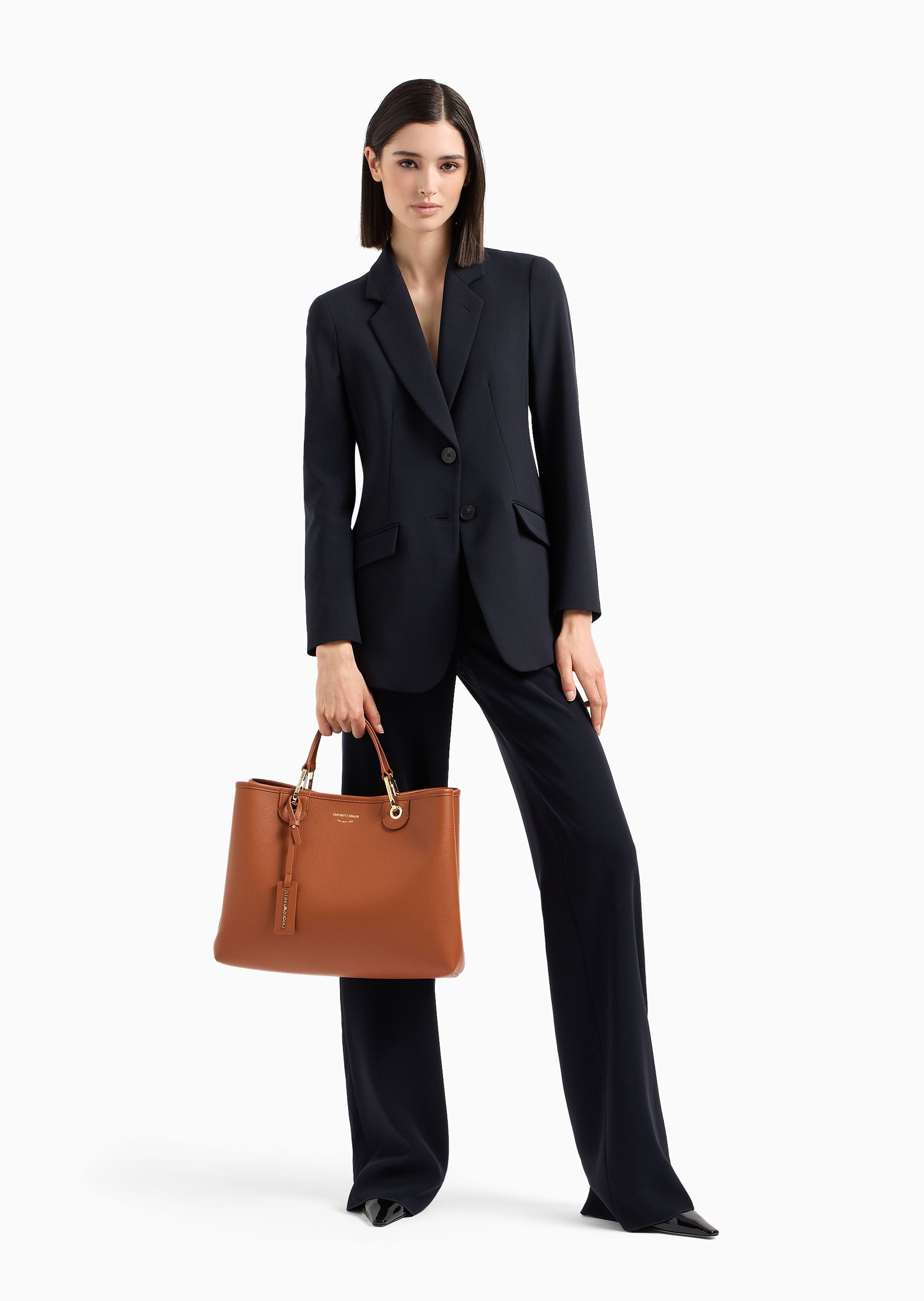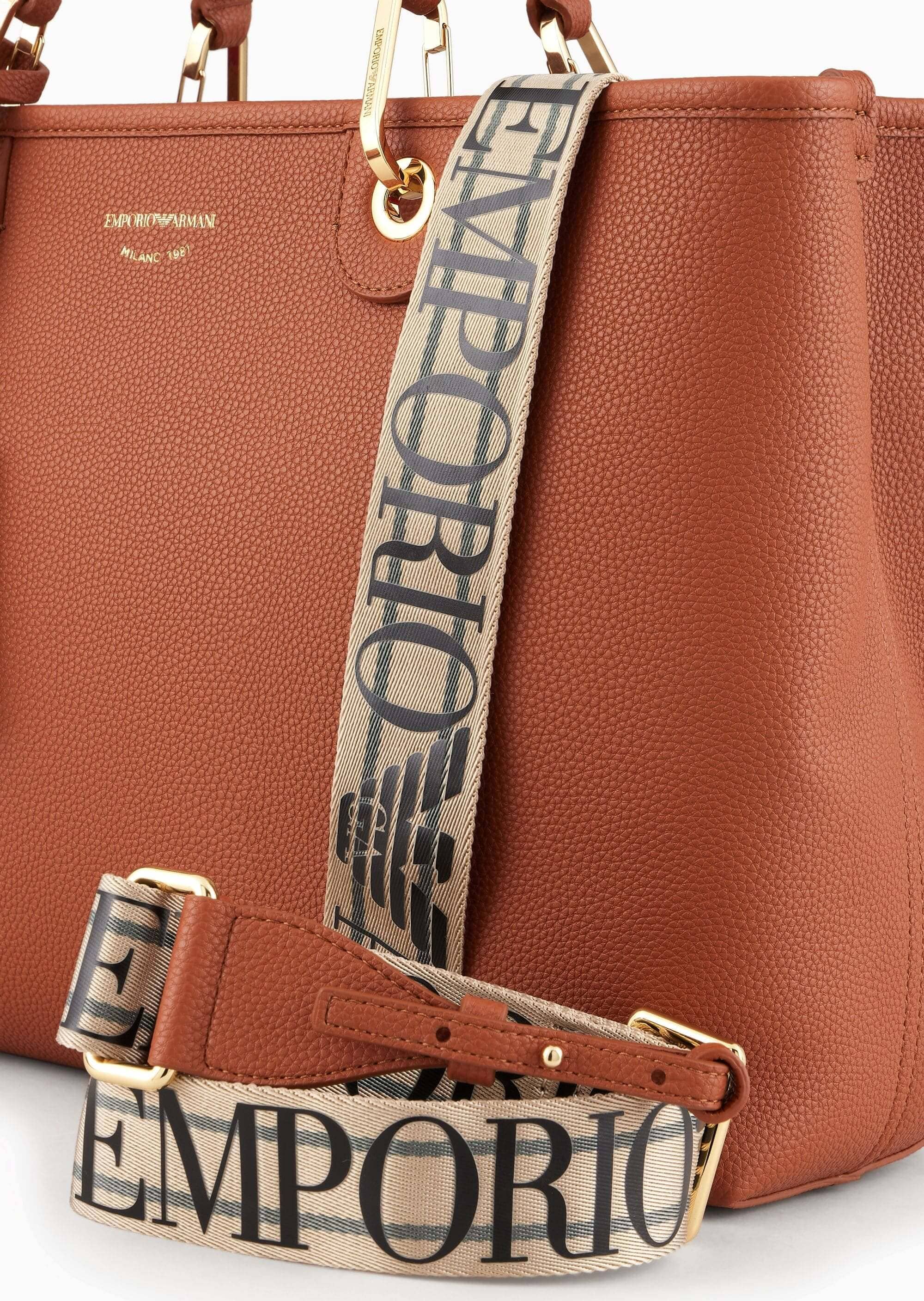Колекція Essentials -елегантна та практична. MyEA Bag – це культова сумка Emporio Armani: виберіть свій стиль та прикрасьте її аксесуарами, які відображають вашу індивідуальність. Сумка середнього розміру, з магнітною застібкою, зі знімним ремінцем та логотипом Emporio Armani, надрукованим методом шовкографії. Виріб прикрашений знімними золотистими карабінами та бирками з тисненим логотипом Emporio Armani.