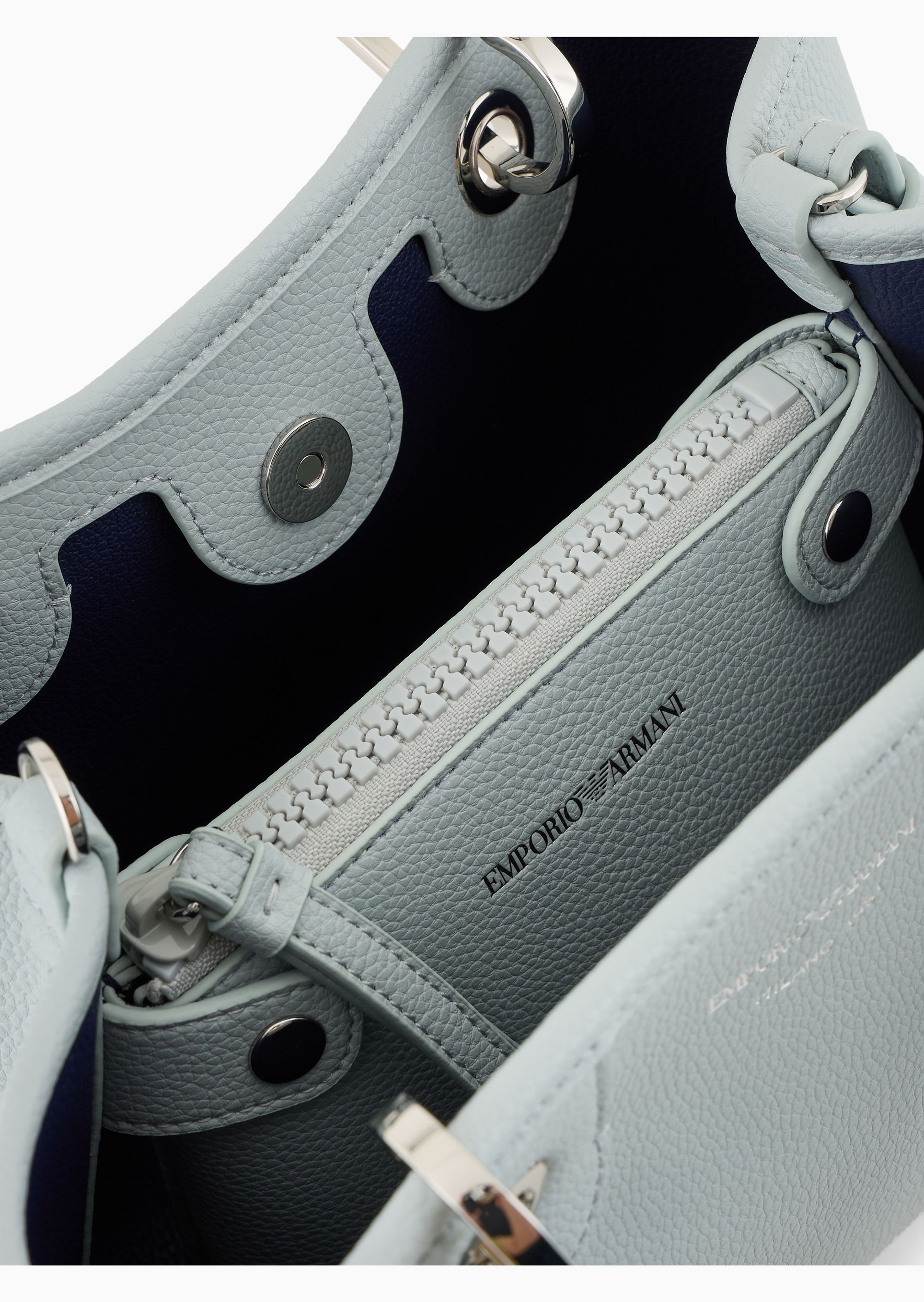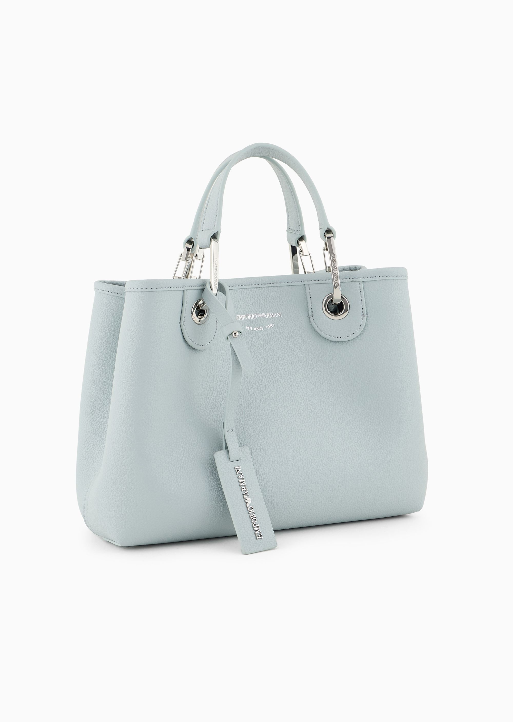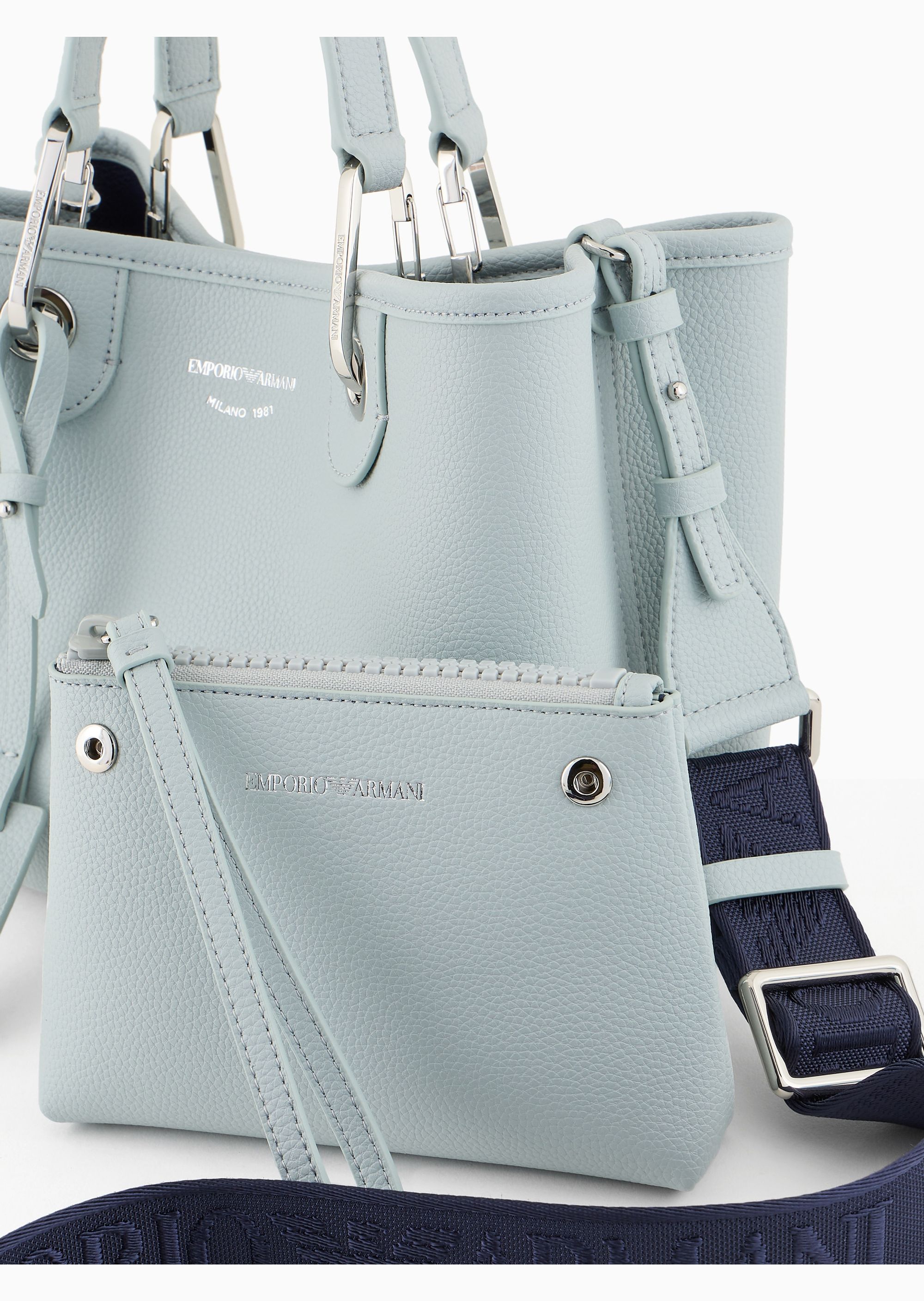 Маленька сумка-шоппер із магнітною застібкою та логотипом Emporio Armani, нанесеним шовкографією. Виріб прикрашений знімними золотистими карабінами та бирками з тисненим логотипом, які відповідають сумці. Має відповідну внутрішню кишеню на блискавці та знімний плечовий ремінь із логотипом Emporio Armani. Належить до лінійки MyEA, добірки культових та ексклюзивних сумок Emporio Armani, які найбільше характеризують цей лейбл. Виберіть виріб і доповніть його аксесуарами з лінійки, які відповідають вашому стилю.
