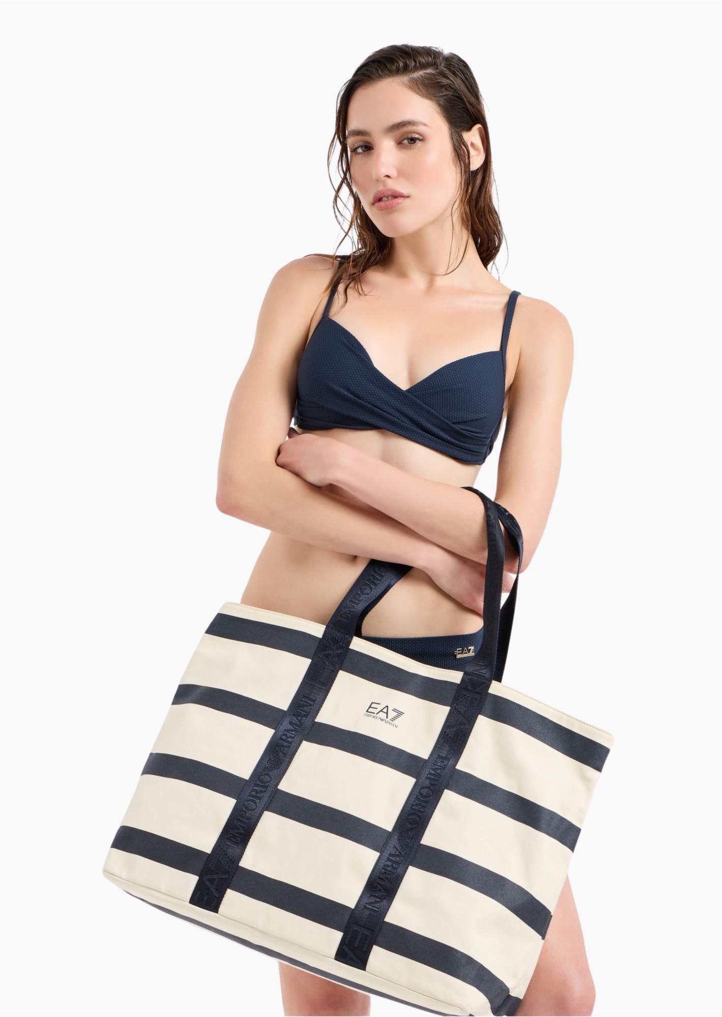 Базова, універсальна сумка-шопер середнього розміру з бежевої тканини. Містка модель з твердими ручками прикрашена логотипом EA7 спереду. Ідеальний аксесуар для завершення як повсякденних образів, так і для відпочинку.