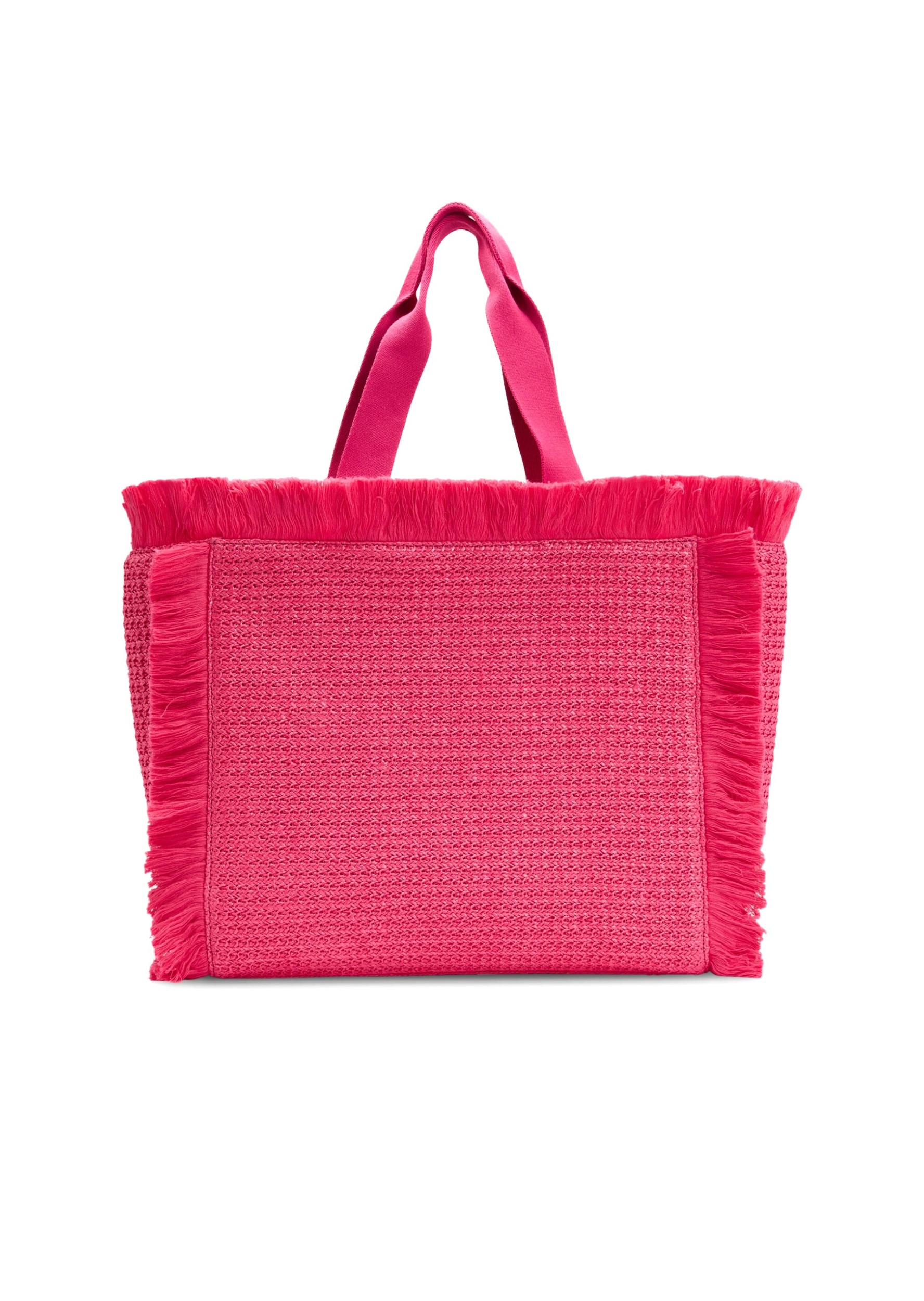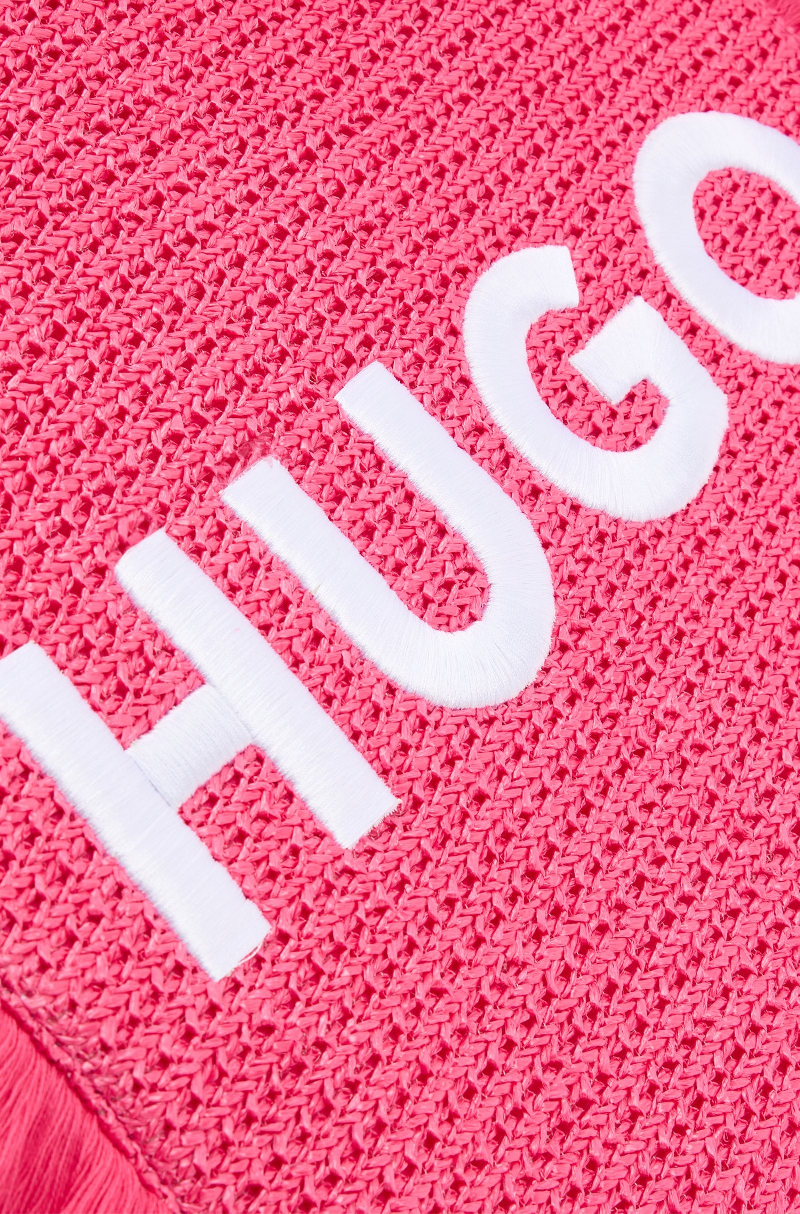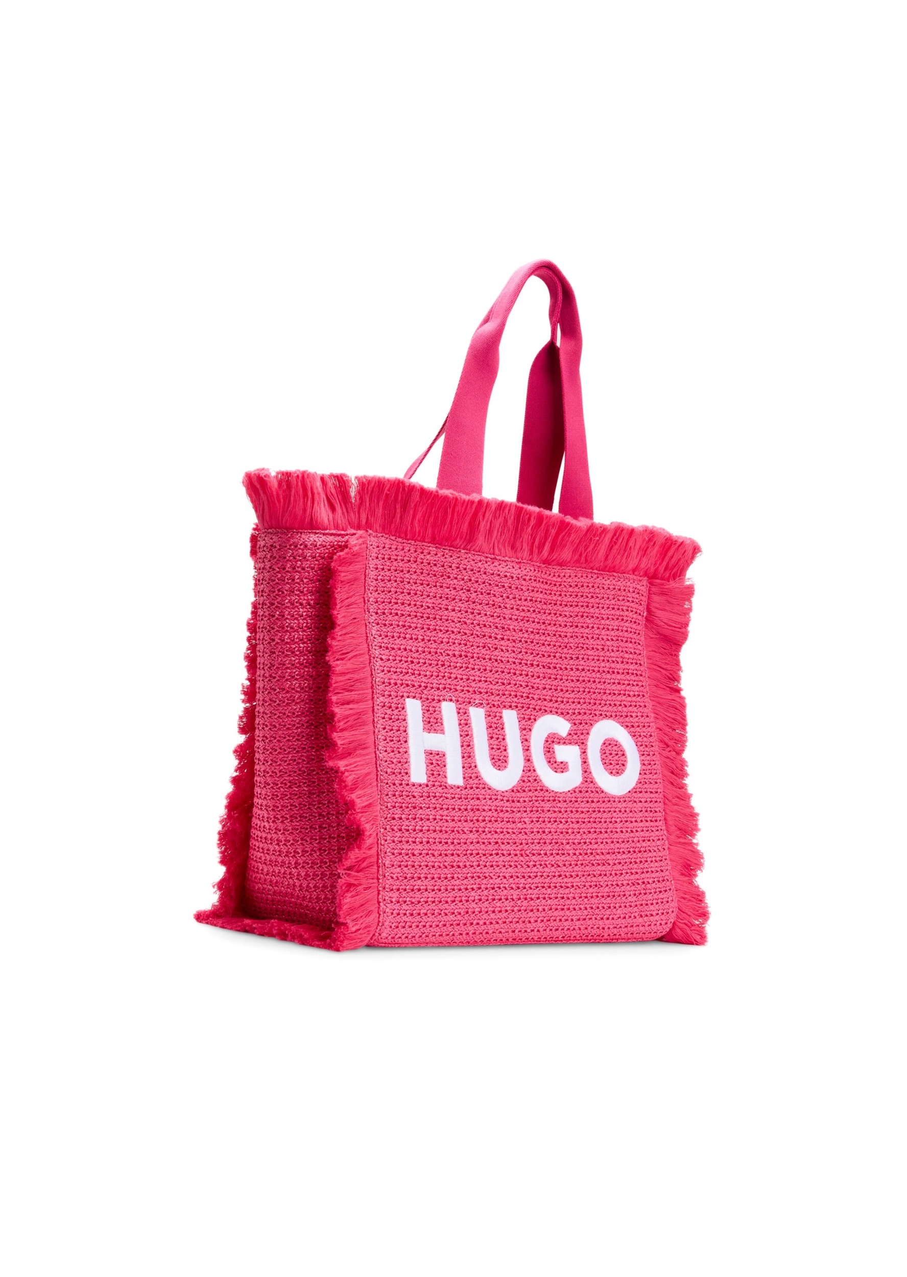 Жіноча сумка-тоут HUGO виконана з мякого та гнучкого матеріалу з ефектом рафії яскраво-рожевого кольору. Вона прикрашена великою контрастною вишивкою логотипу HUGO і доповнена тонкою бахромою по краях, що надає виробу літнього та стильного вигляду. Сумка має відкритий верх для зручного доступу до вмісту та оснащена двома ручками для носіння в руках чи плечі. Усередині передбачені кишеня на блискавці та відкрита кишеня для організації особистих речей. Розмір сумки: 37 x 32 x 19 Сумка ідеально доповнить літній гардероб.