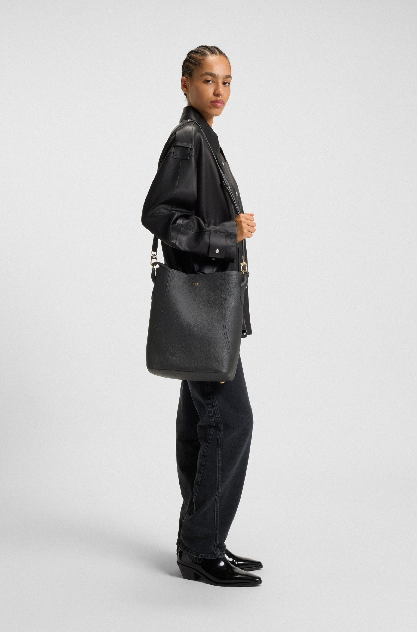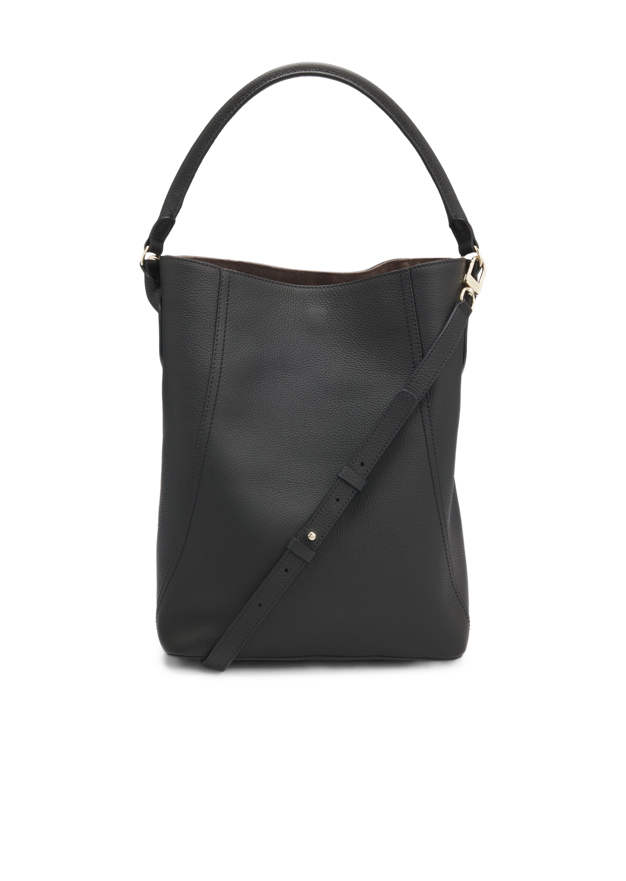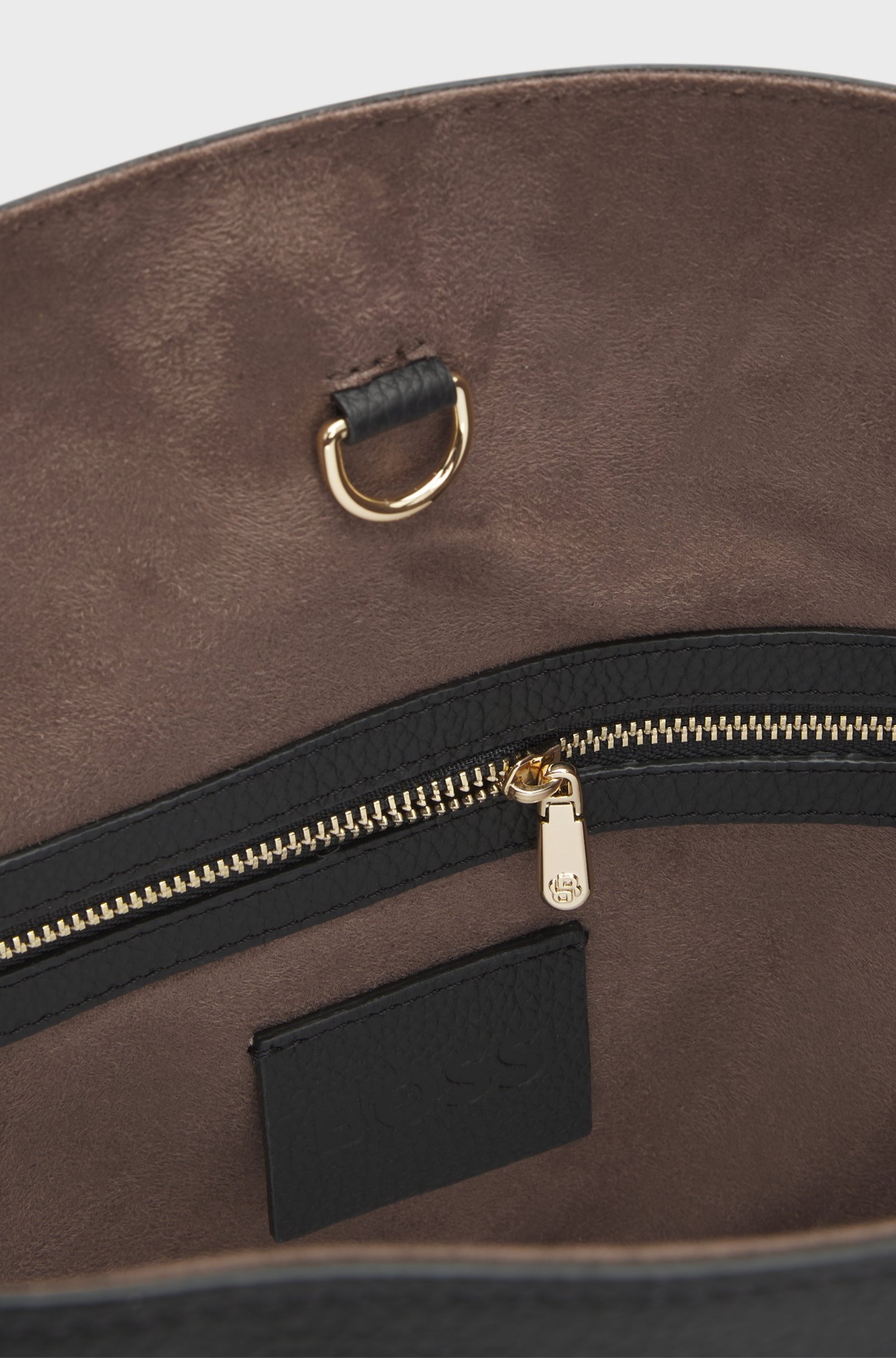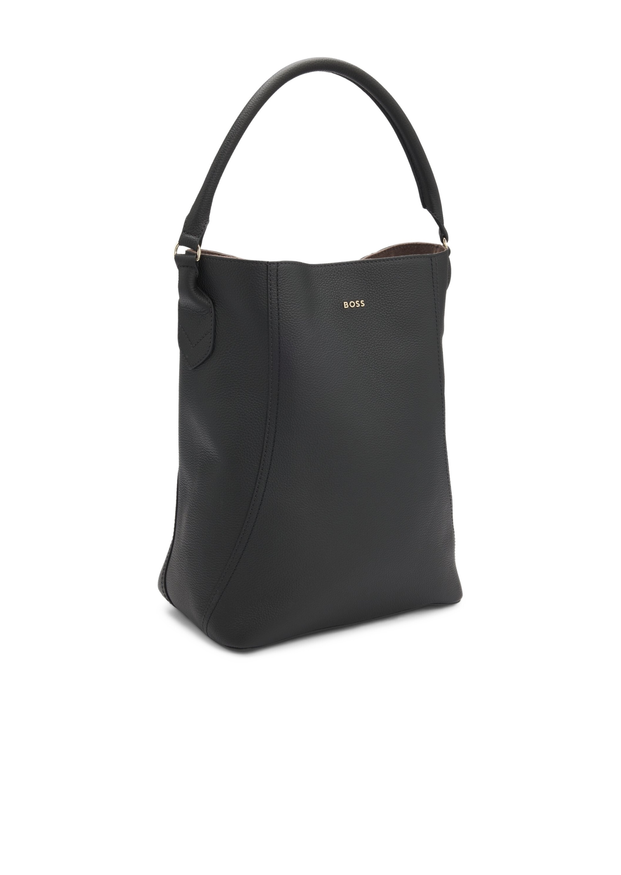 Жіноча сумка BOSS чорного кольору виготовлена з високоякісної шкіри з дрібною текстурою, що забезпечує елегантність і довговічність. Золотиста фурнітура підкреслює розкішний характер аксесуара, а сучасна форма додає образу сучасної витонченості. Відмінно поєднується з діловим і вечірнім гардеробом, акцентуючи індивідуальний стиль. Ідеальне рішення для тих, хто цінує поєднання класики і сучасності.