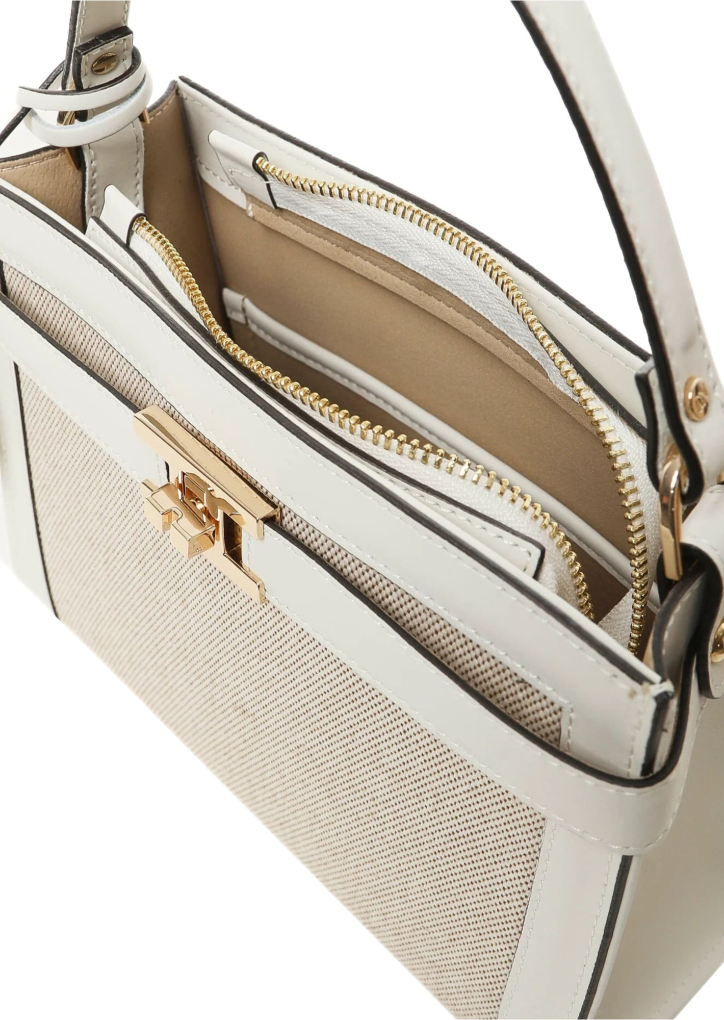 Вишукана та універсальна сумка Mini Giselle від Gianni Notaro — стильне рішення на будь-який випадок. Компактна, але напрочуд містка — її розміри (23×16×9 см) ідеально підходять як для щоденних справ, так і для особливих подій. Модель виготовлена з поєднання шкіри та міцного канвасу, доповнена підкладкою з екошкіри. Регульований і знімний ремінець дозволяє носити сумку на плечі або в руці. Золотиста фурнітура додає вишуканості, а італійське виробництво гарантує якість і надійність. Mini Giselle — вибір для тих, хто цінує стиль і практичність в одному аксесуарі.
