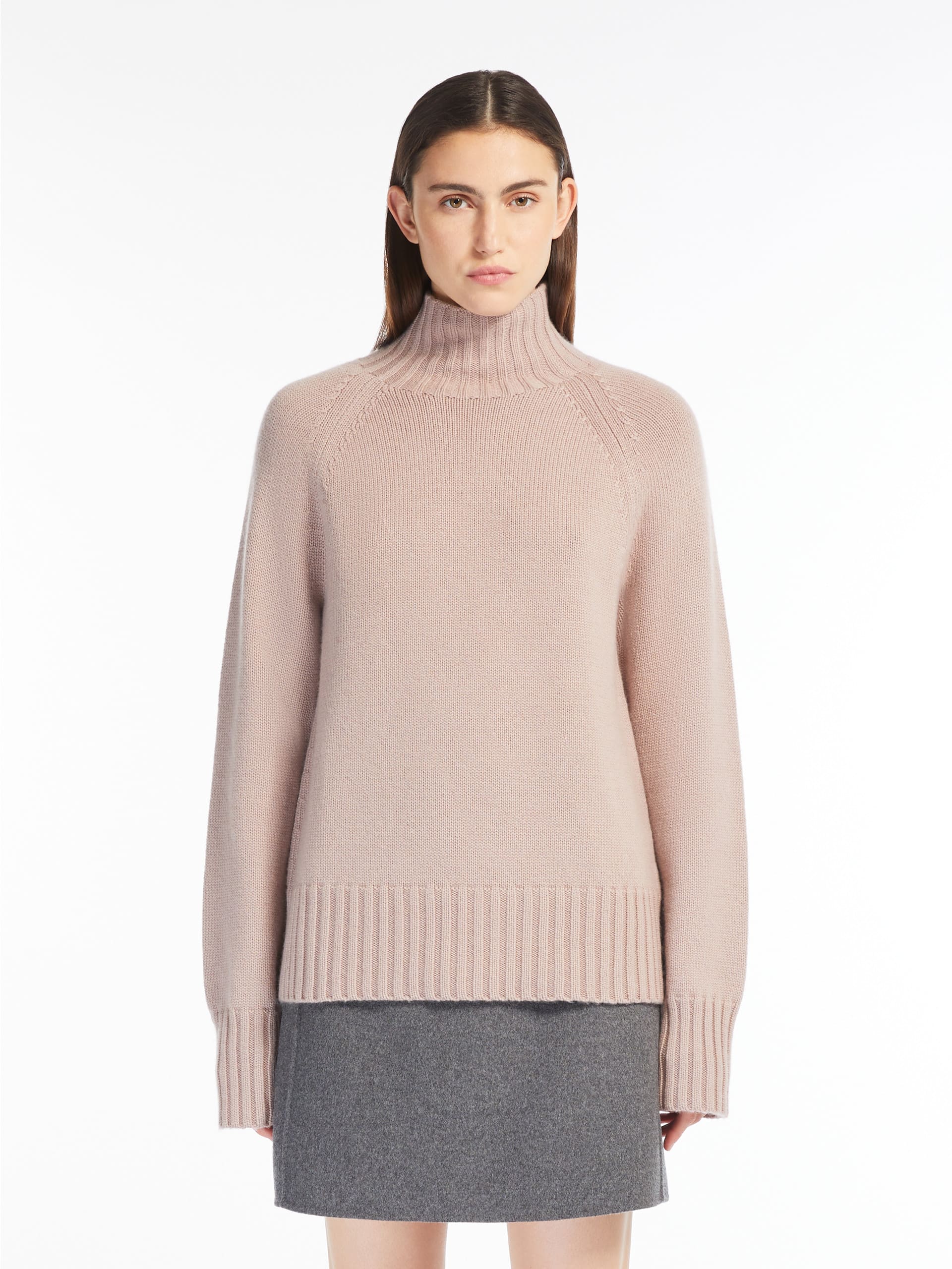 Водолазка з розкішної пряжі з вовни та кашеміру. Мінімалістський дизайн доповнений ребристими краями, коміром та манжетами з контрастною облямівкою, а також довгими рукавами реглан.
