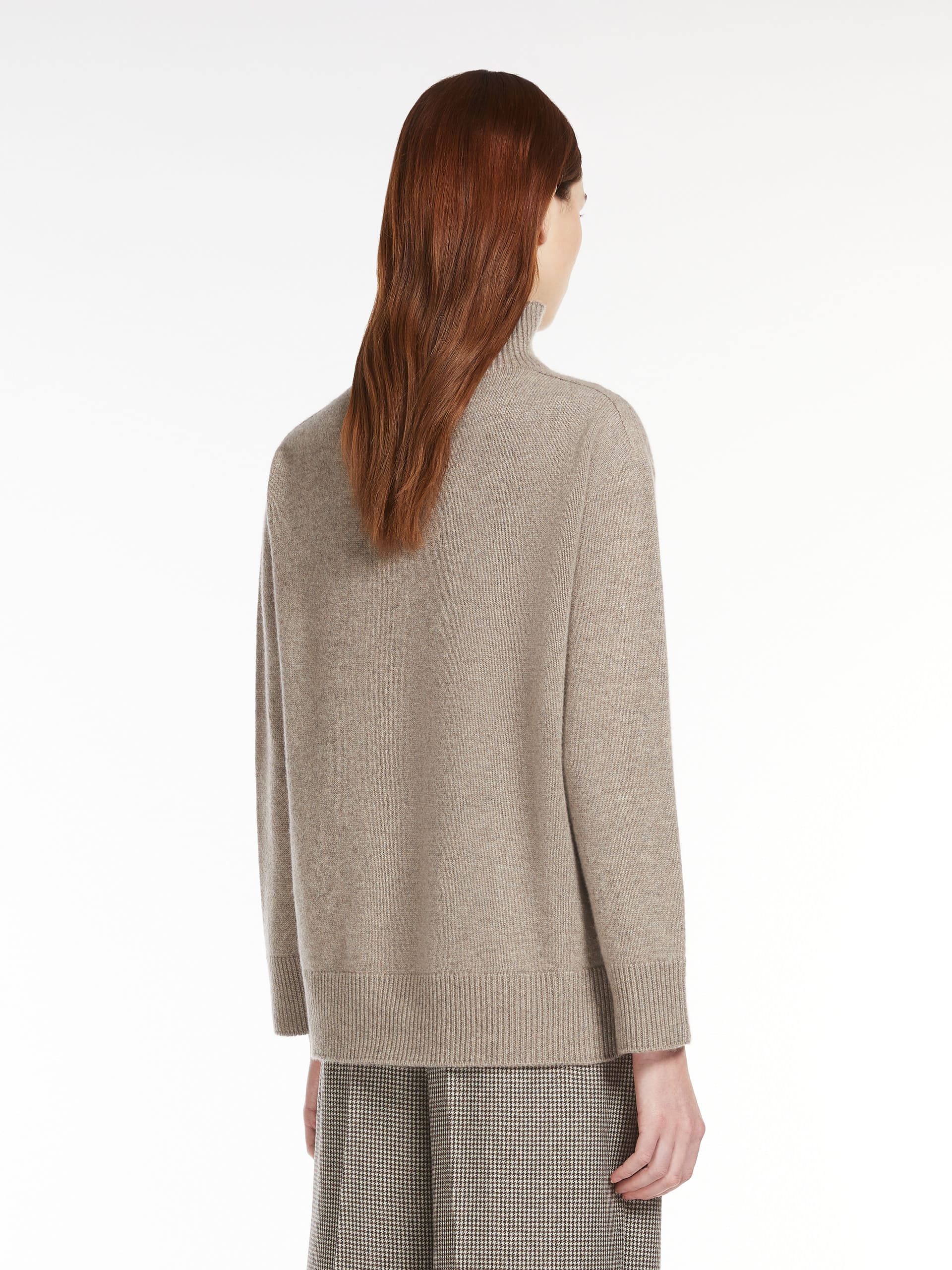 Водолазка з розкішної пряжі з вовни та кашеміру. Мінімалістський дизайн доповнений ребристими краями, коміром та манжетами з контрастною облямівкою, а також довгими рукавами реглан.