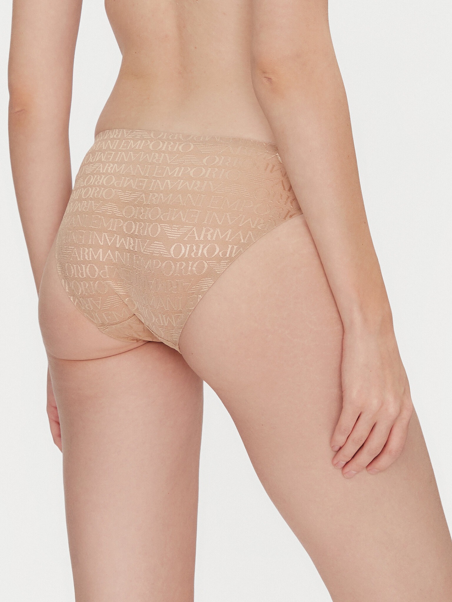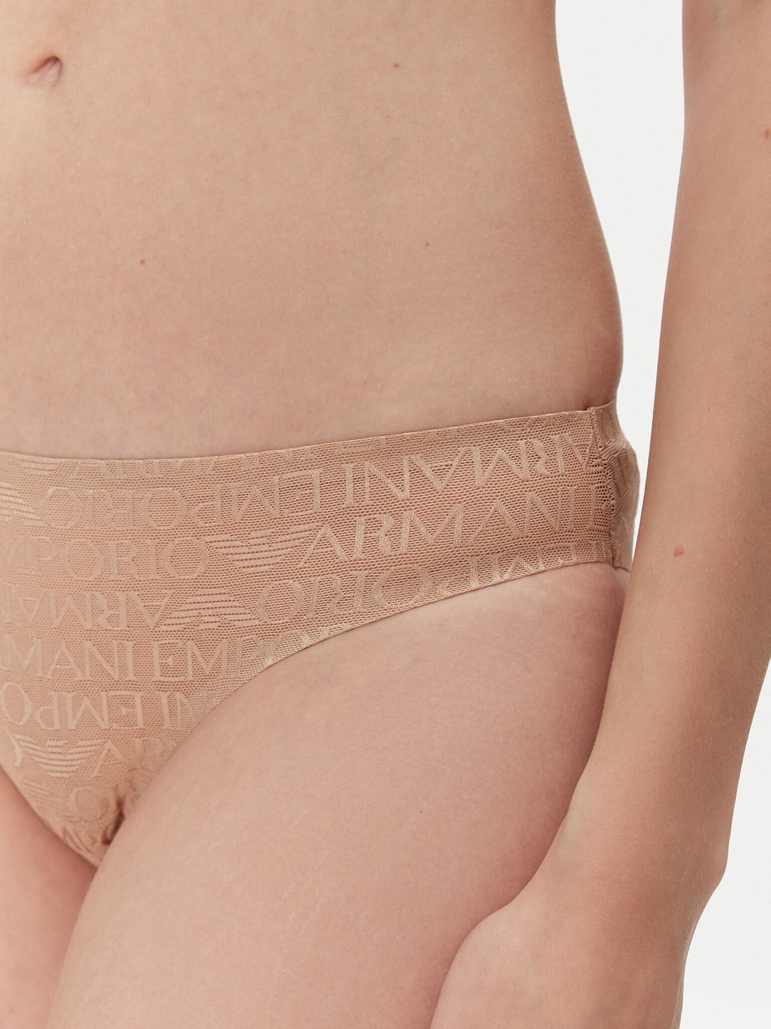 Труси Emporio Armani бежевого кольору, виконані з мякого та еластичного матеріалу, що дарує комфорт і відчуття легкості. Модель з низькою посадкою та акуратними швами, що робить їх ідеальними для носіння під одягом, не створюючи зайвих ліній. Логотип бренду, розташований на поясі, додає витонченості. Бежевий відтінок — універсальний і непомітний, що дозволяє поєднувати ці труси з різними стилями та кольорами одягу. Відмінно підходять для щоденного використання, поєднуючи елегантність і практичність. Ця модель стане незамінною в гардеробі, забезпечуючи ідеальний баланс між комфортом і стилем.