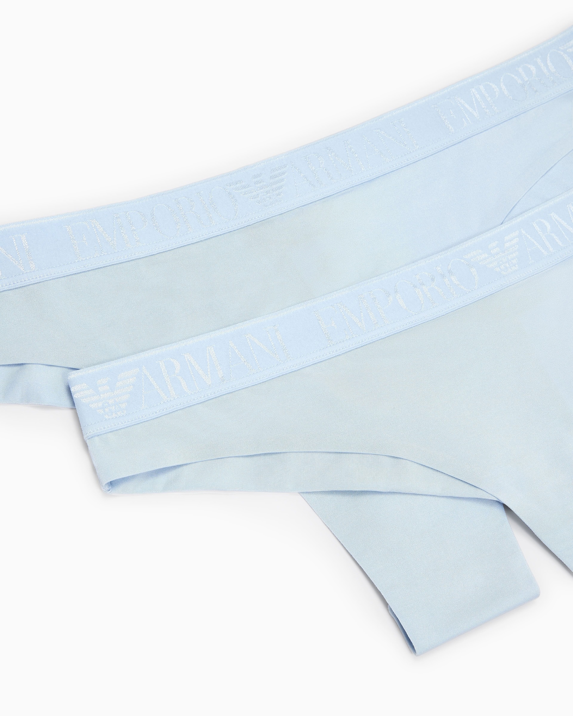 Комплект з двох бразильських трусів. Модель виготовлена з високоякісної мікрофібри. Білизна прикрашена еластичною резинкою на поясі із логотипом, що додає зручності. Комфортна і стильна модель на кожен день.