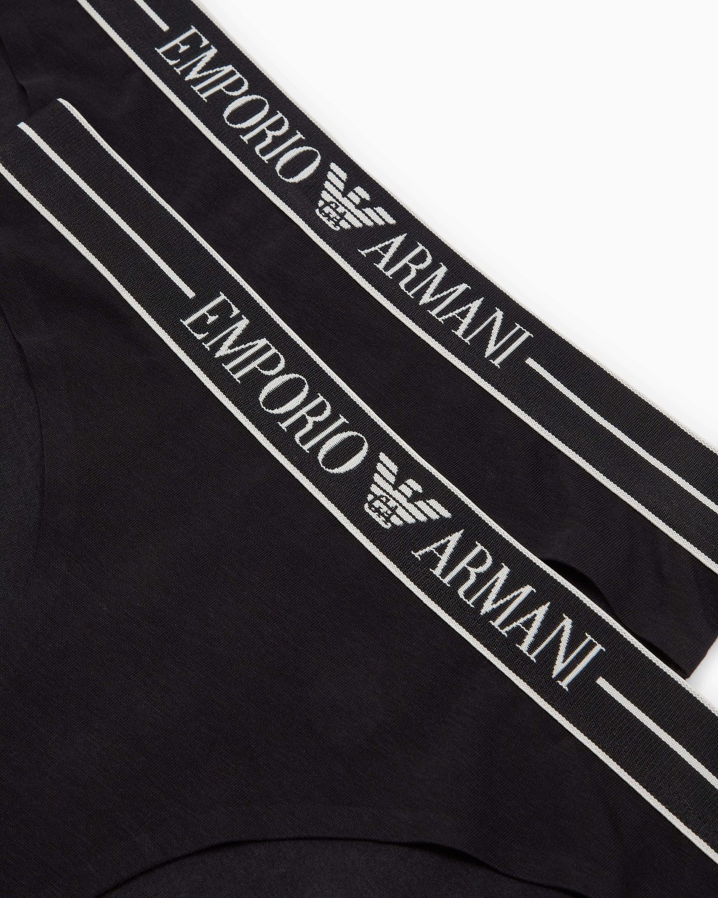 Упаковка із двох трусиків-брифів Emporio Armani з еластичним поясом та логотипом. Матеріал - органічна бавовна, виготовлена з волокон, вирощених органічним способом.
