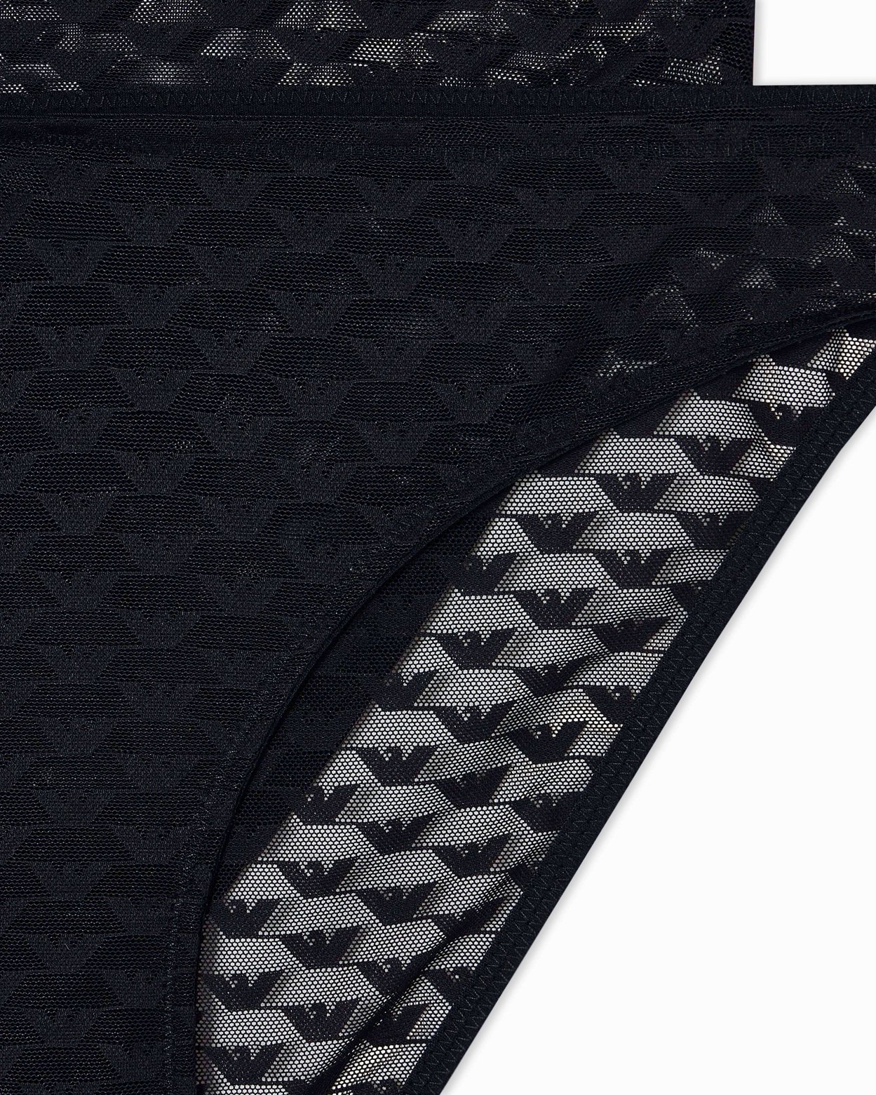 Упаковка із двох сітчастих трусиків Emporio Armani із жаккардовим логотипом у вигляді орла по всій поверхні.