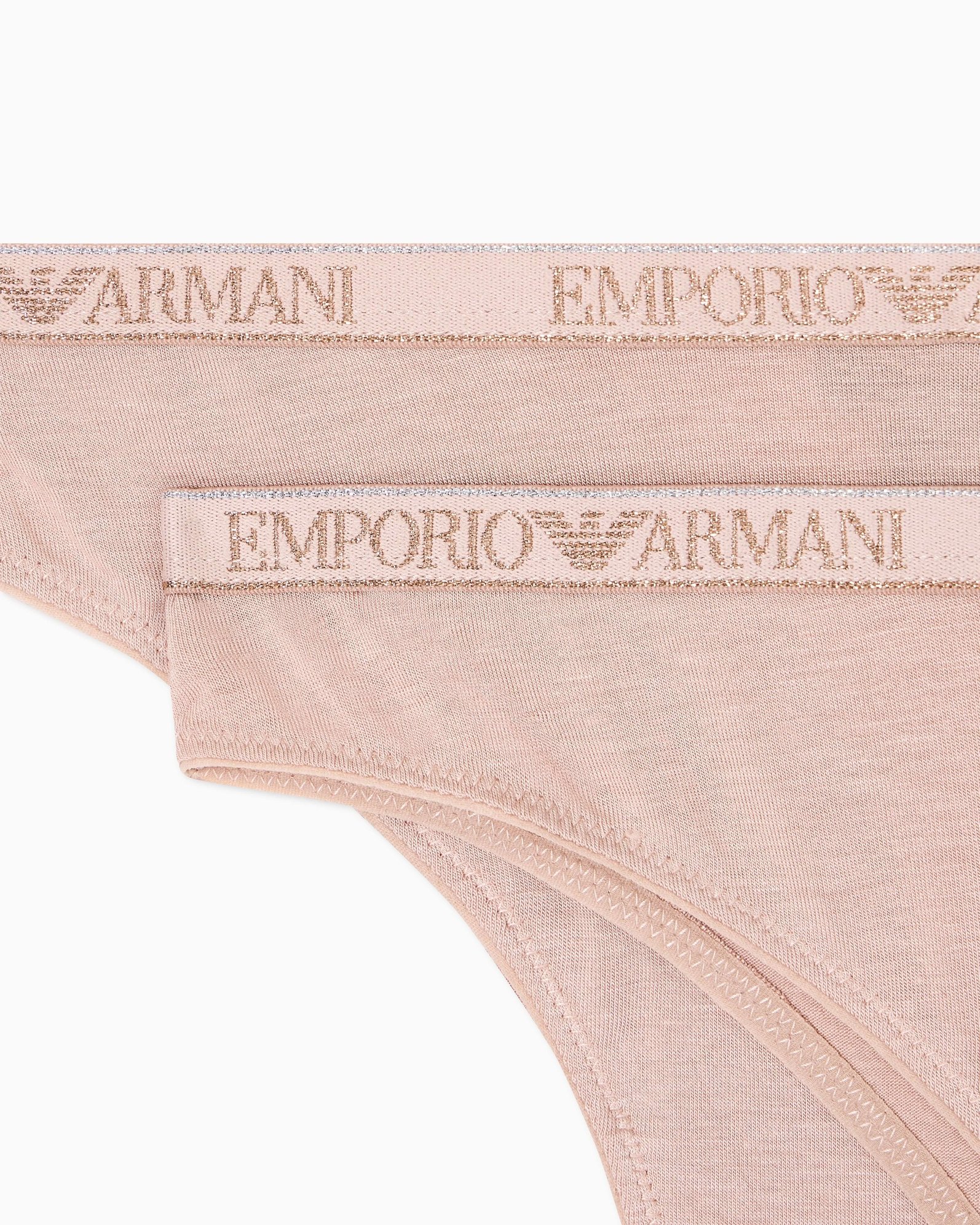 Комплект із двох трусиків-бразиліана Emporio Armani з еластичної віскози. Модель доповнена еластичним поясом з логотипом та люрексом.