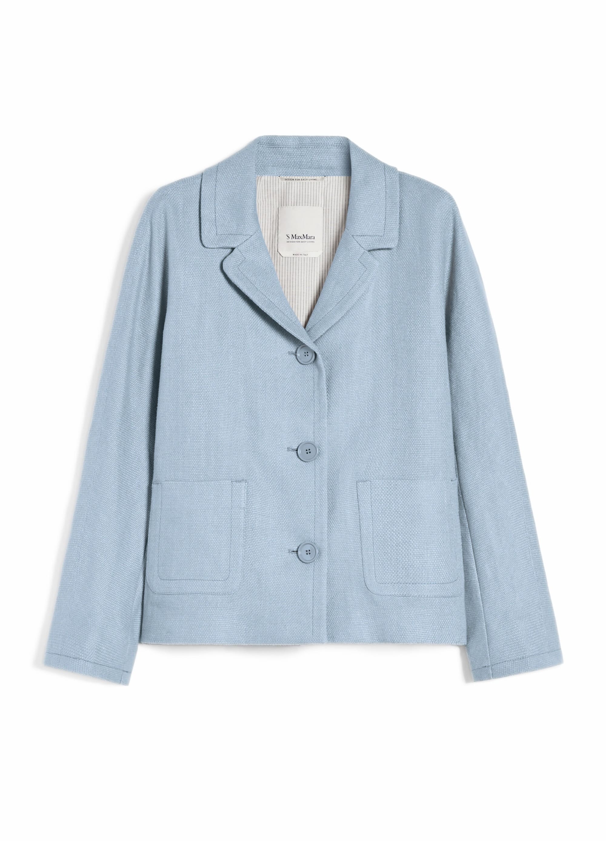 Жакет з колекції Max Mara S виготовлений з високоякісного лляного полотна, що забезпечує легкість і комфорт у носінні. Васильковий колір представляє собою універсальний бежевий відтінок, який підходить для різних образів. Модель вирізняється прямим кроєм і класичним дизайном, що робить її ідеальною для створення як повсякденних, так і більш формальних образів. Деталі включають лацкани, застібку на ґудзики та бокові кишені, що підкреслюють функціональність виробу. Цей жакет легко поєднується з брюками, спідницями або сукнями, дозволяючи створювати різноманітні стильні комбінації. Жакет Max Mara S — ідеальний вибір для тих, хто цінує поєднання комфорту, якості та витонченого стилю.