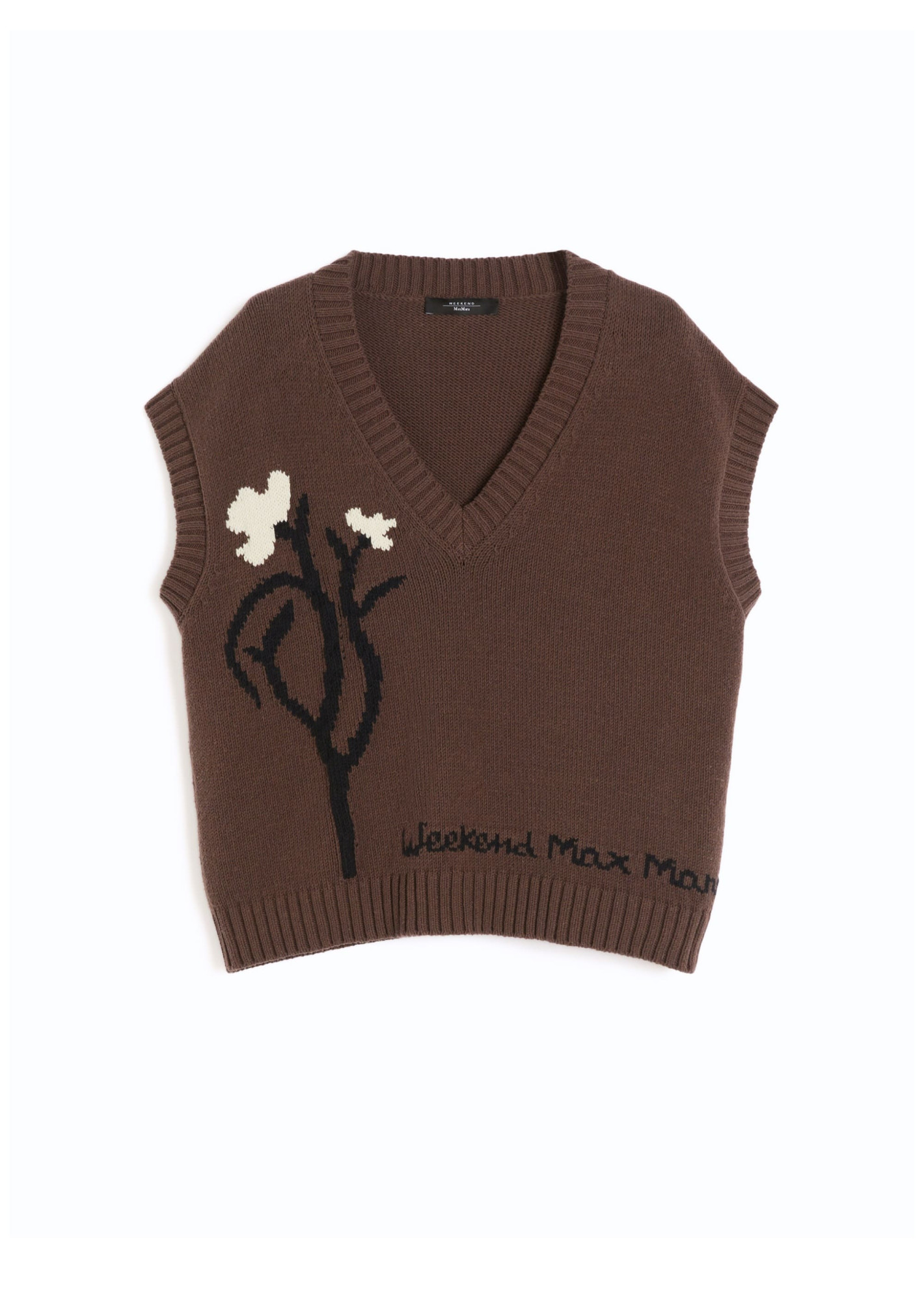 Жилет Weekend Max Mara з бавовняної суміші з декоративною інтарсією на передній частині. Модель прямого силуету з V-подібним вирізом і еластичною резинкою по краю, що підкреслює графічність крою. Виріб виготовлений з м’якого на дотик трикотажу з вмістом бавовни та акрилу, що забезпечує комфорт і легкість у носінні. Кавовий відтінок надає образу м’якості та універсальності. Чудово поєднується з сорочками, водолазками та топами, доповнюючи як повсякденні, так і офісні образи. Ідеальний для багатошарових комплектів. Цей жилет стане лаконічним елементом гардероба, поєднуючи витончене оздоблення й повсякденну елегантність Weekend Max Mara.